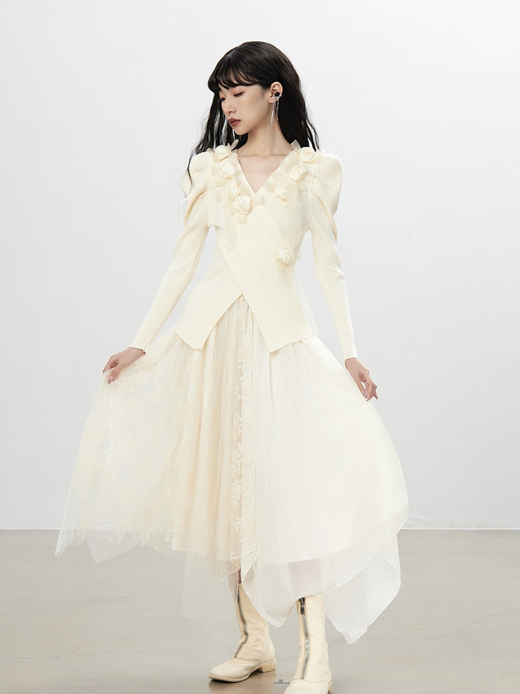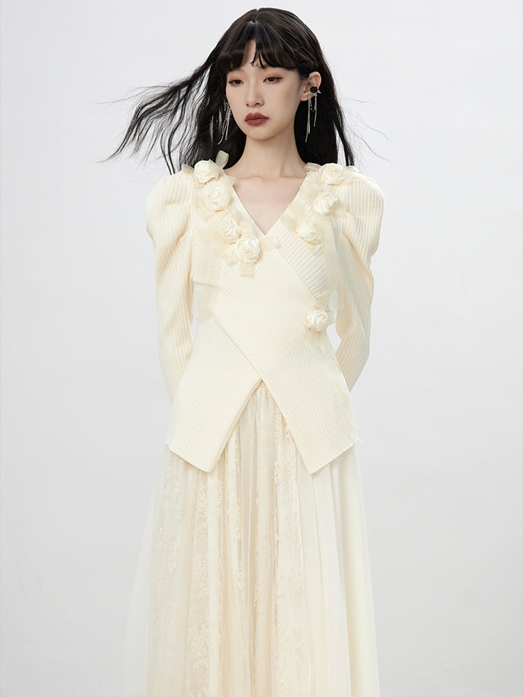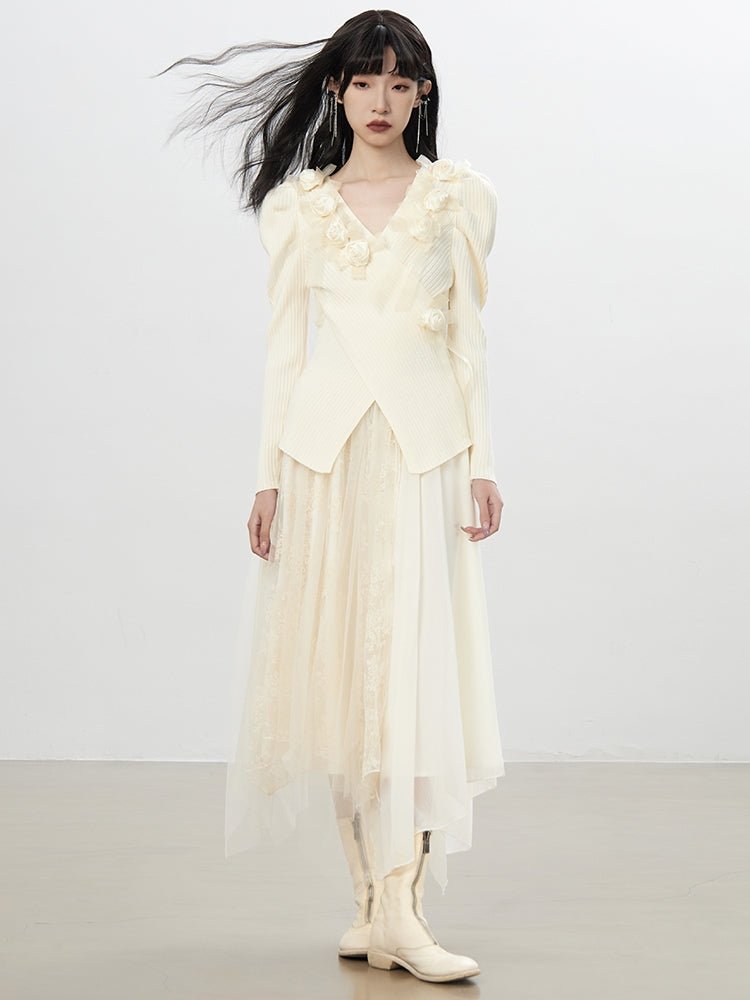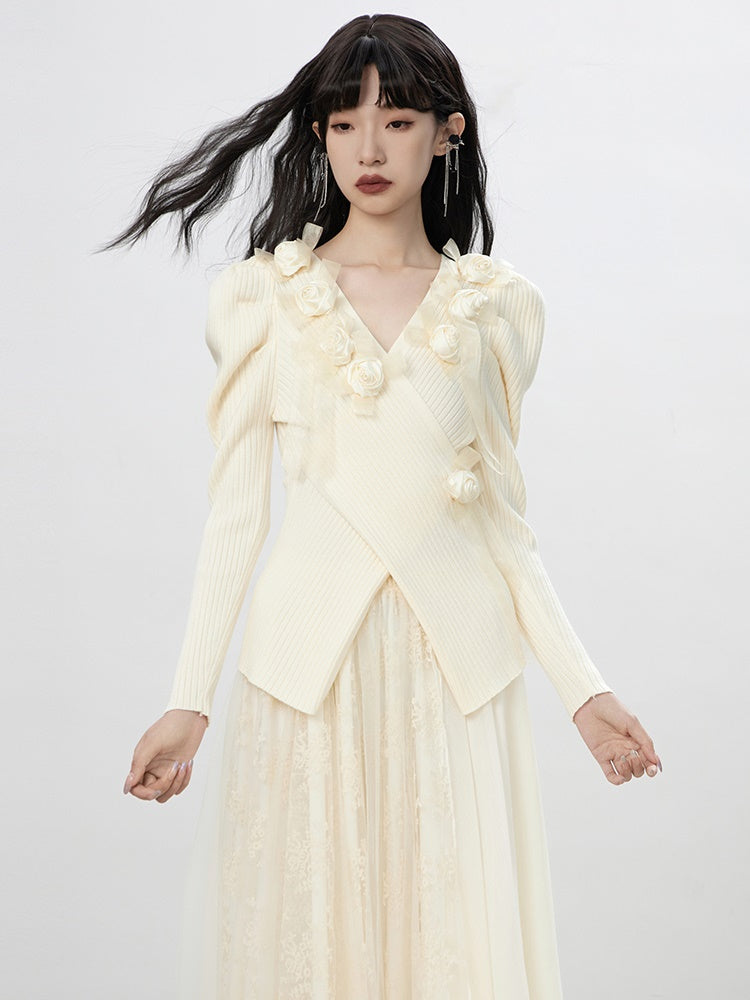 Power-Shoulder Rose Nichi Unique Wrap Rib-Knit