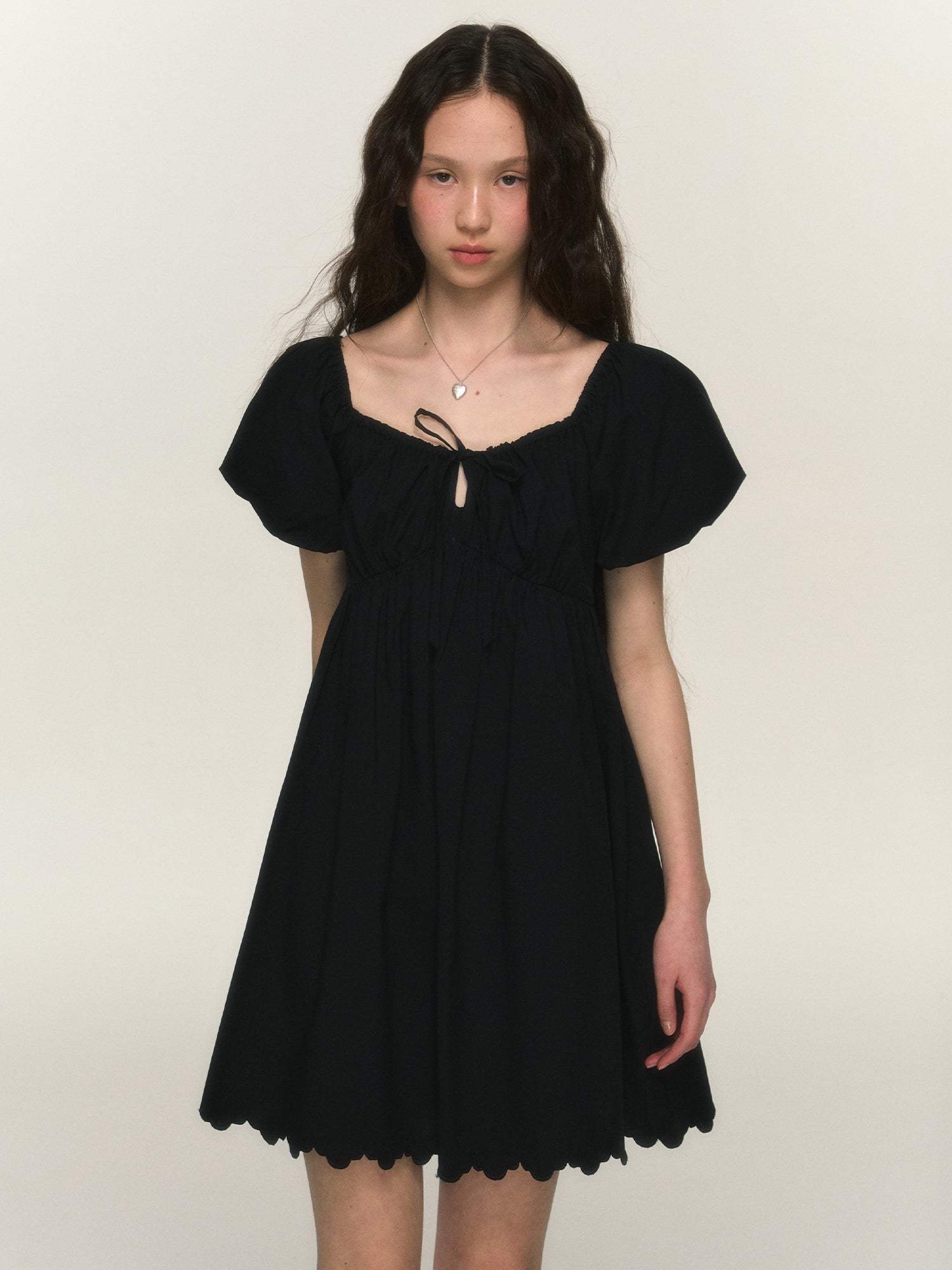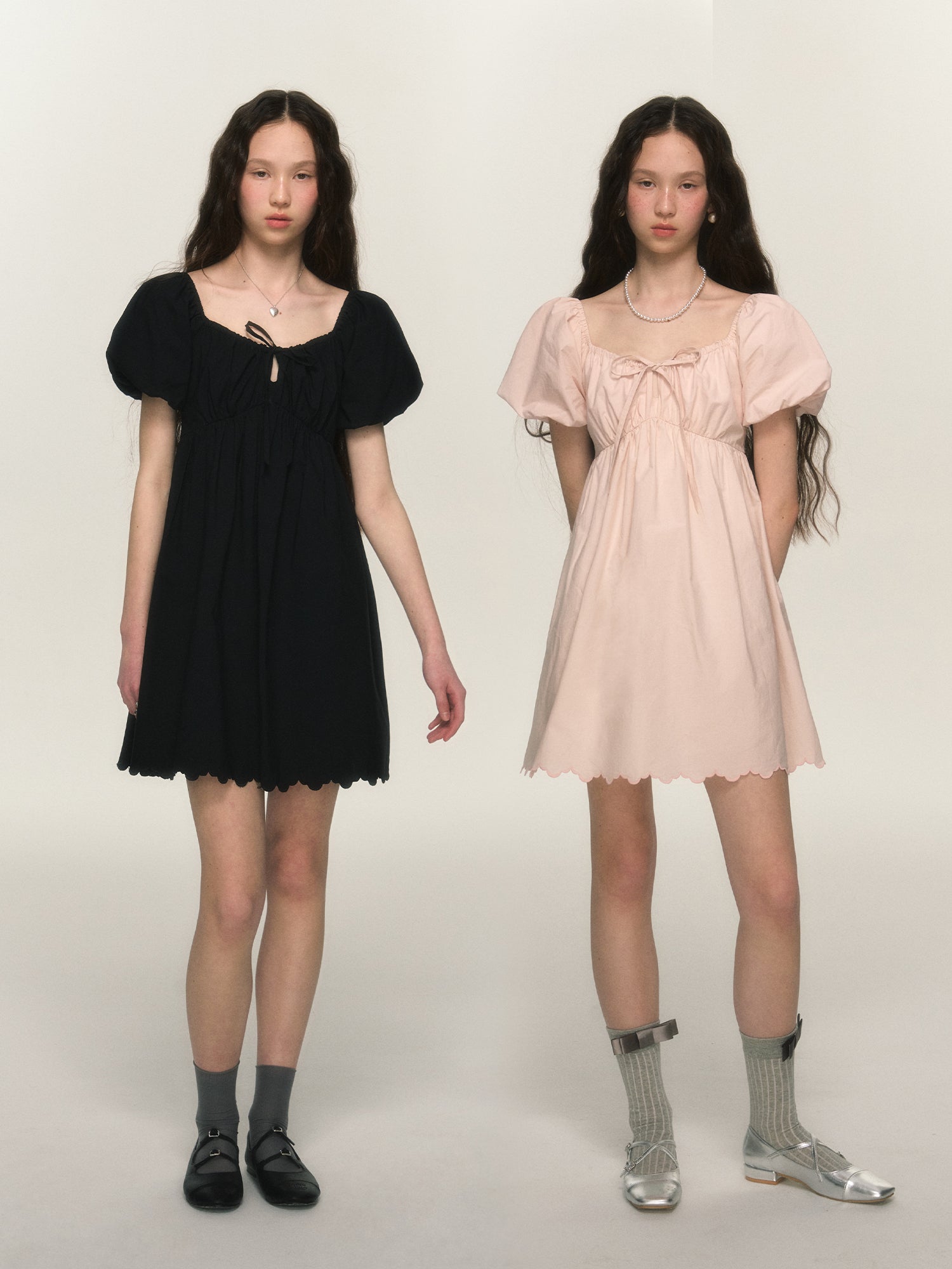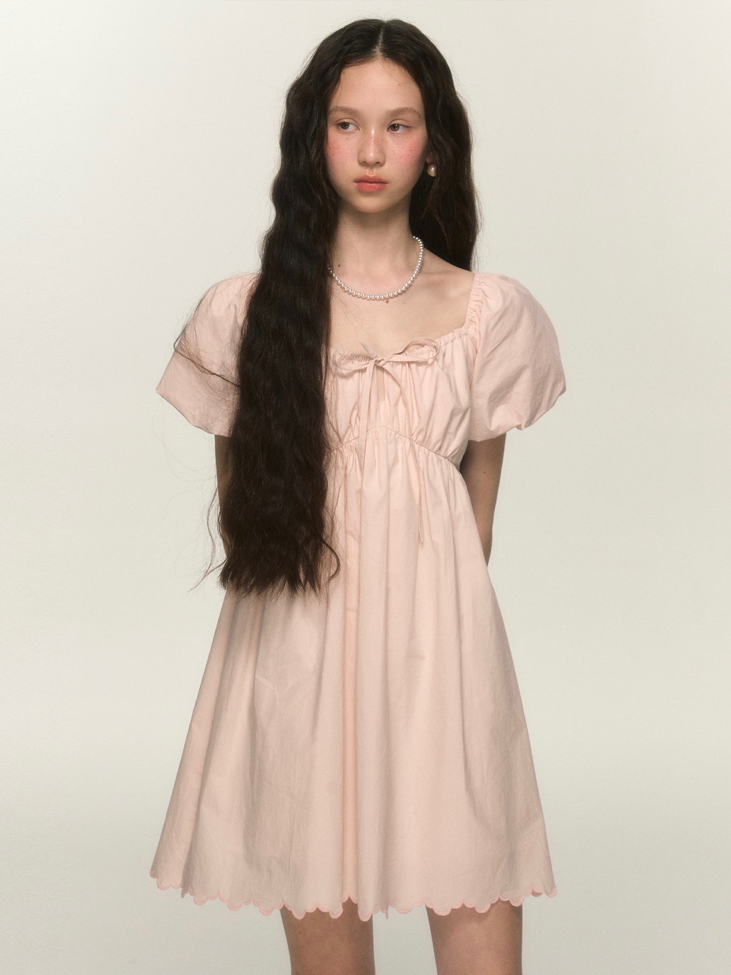 Puff-sleeve Ribbon Fluffily Natural One-piece