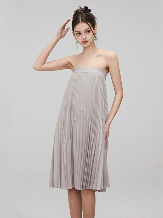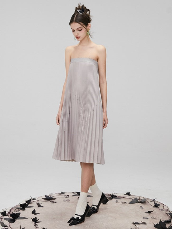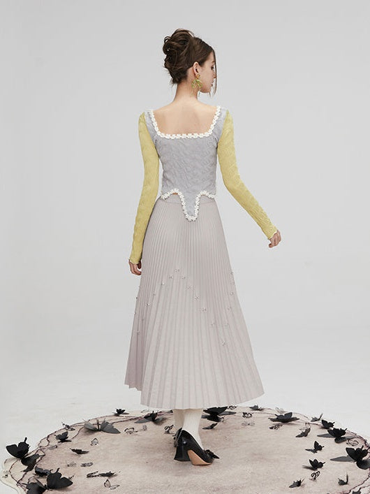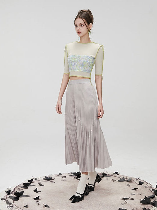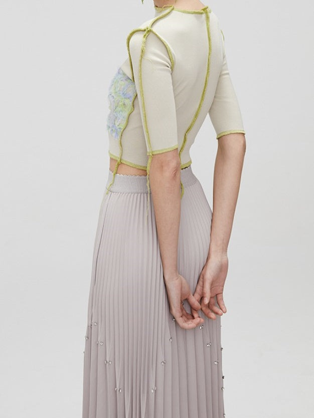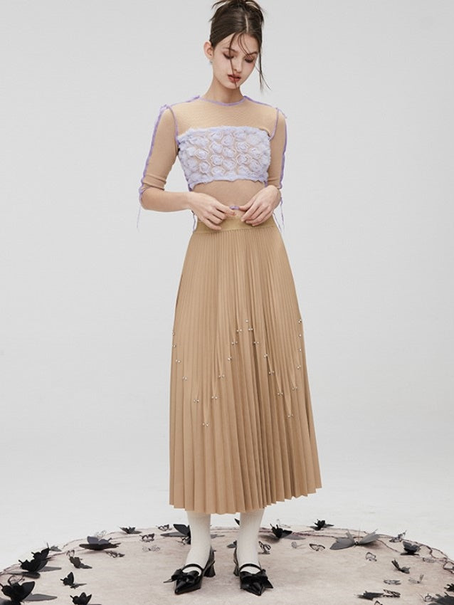 Rhinestone Long Pleated Skirt