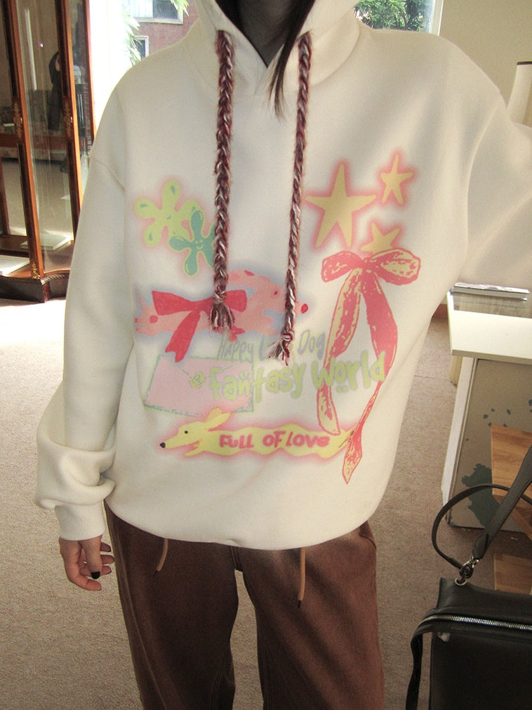 Ribbon Star Animal Pop Fancy Cute Sweat Pullover
