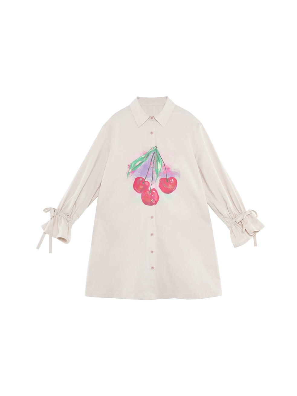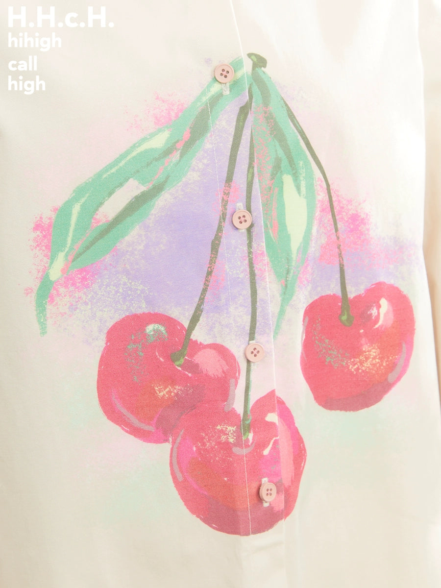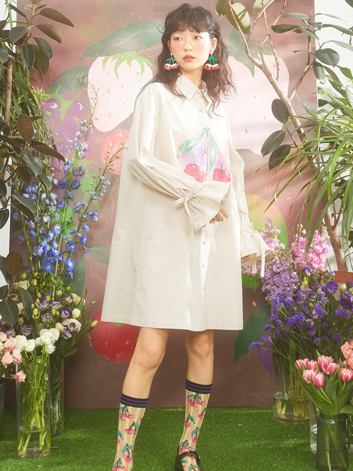 Romantic Gradient Oil Painting Cherry Print Shirt Dress