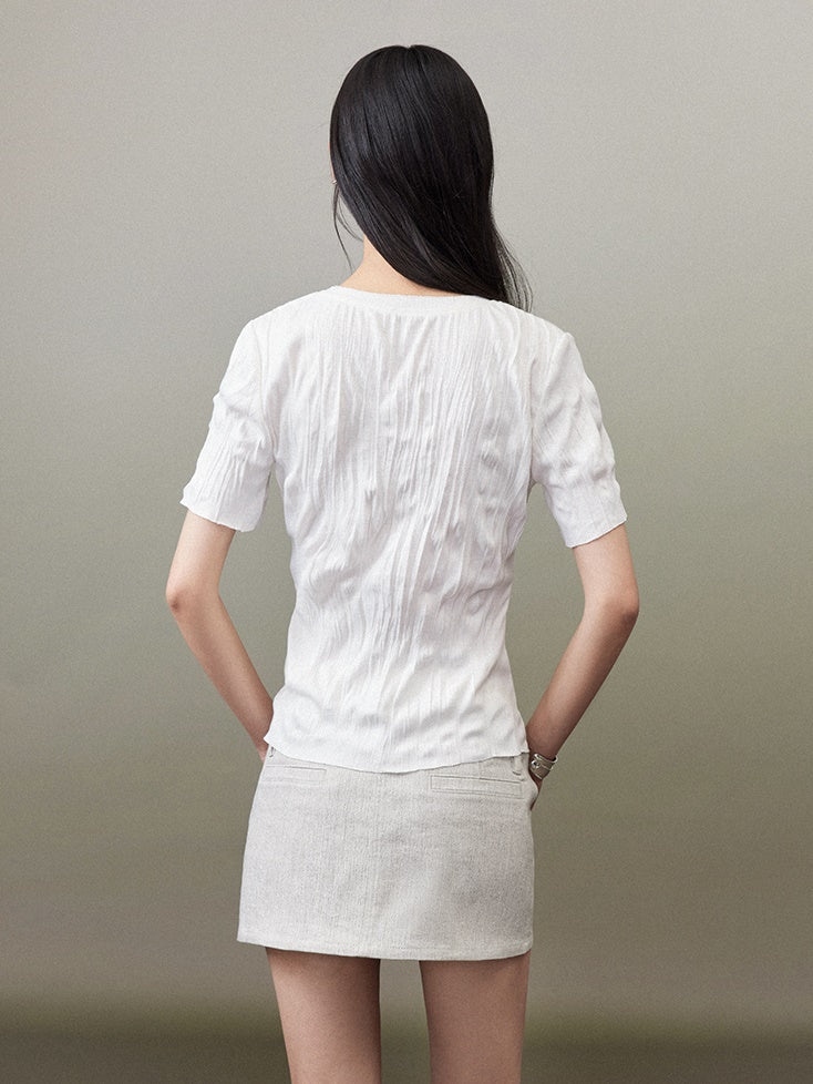 Round Neck Pleated T-shirt