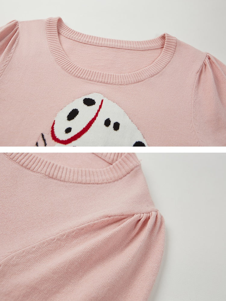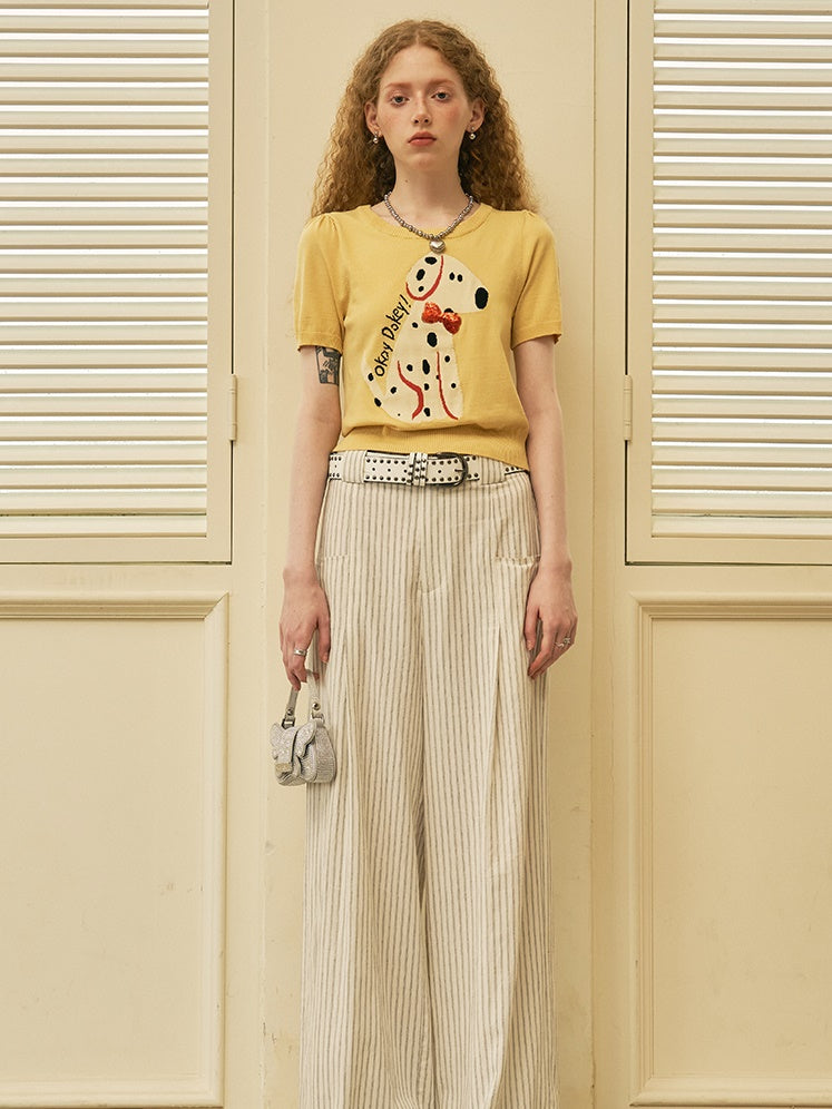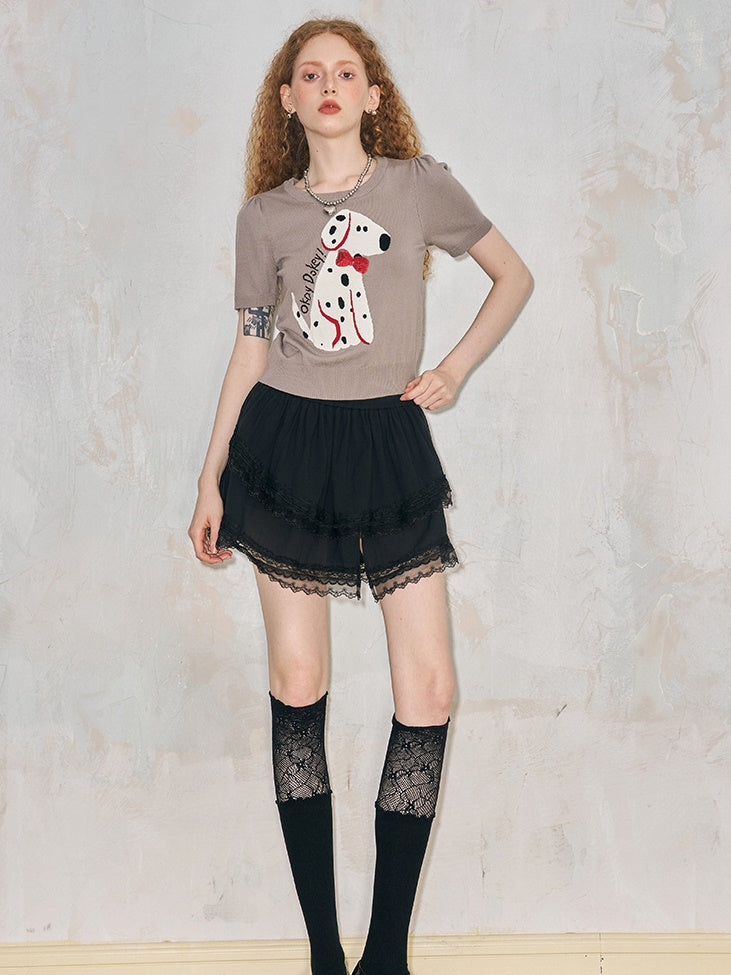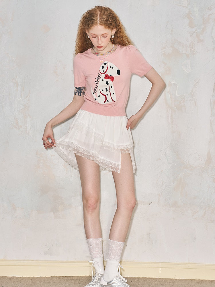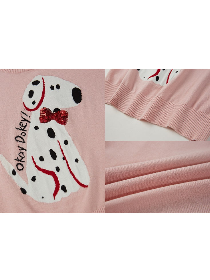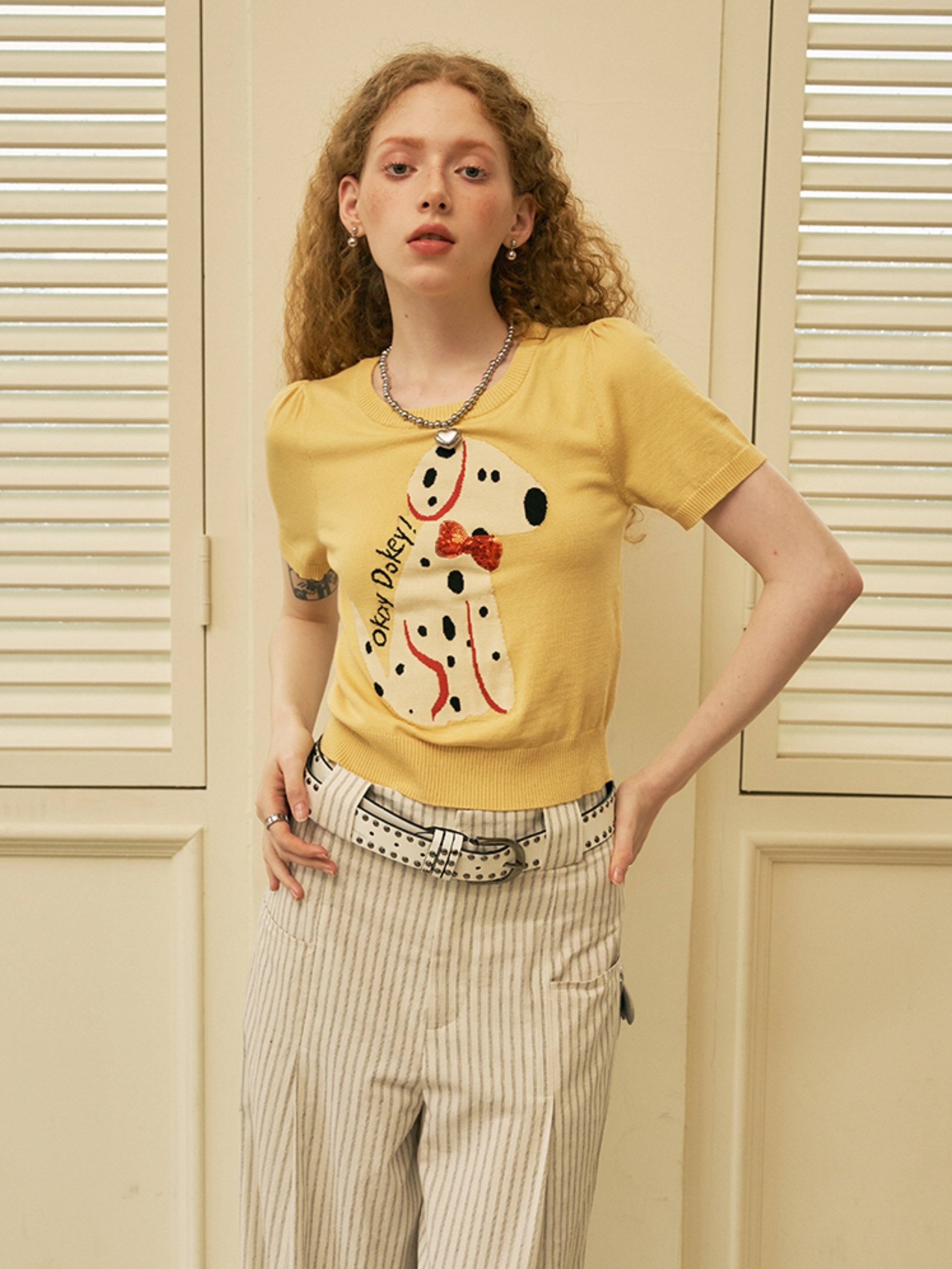 Round Neck Short-sleeved Spotted Dog Knitted Top