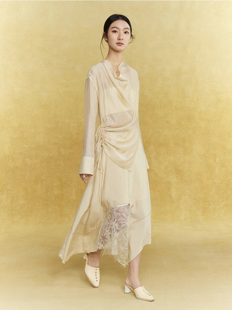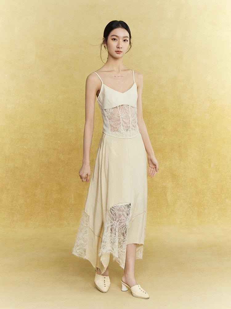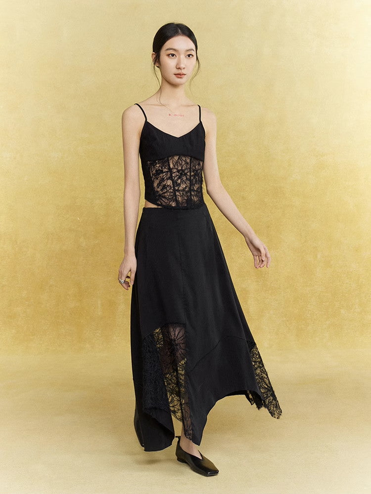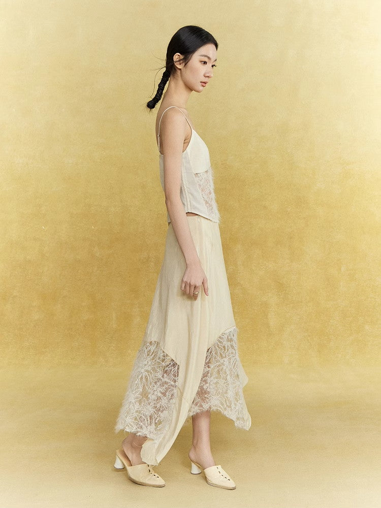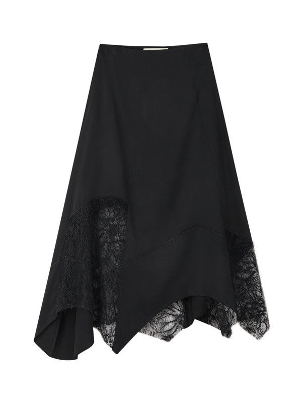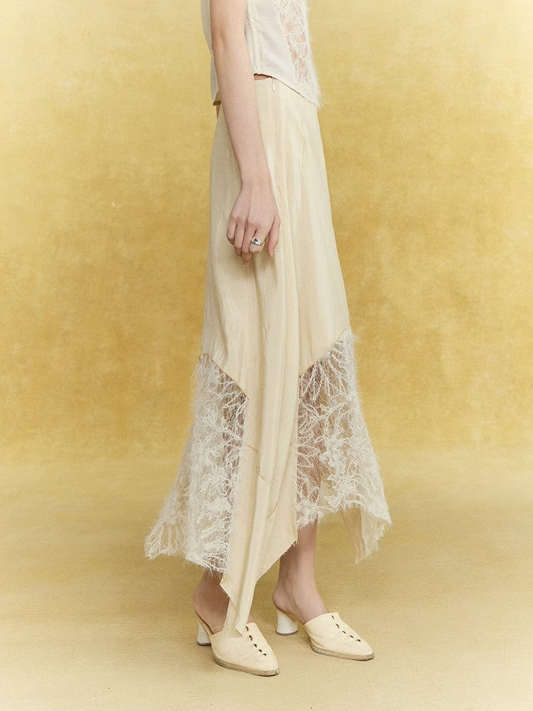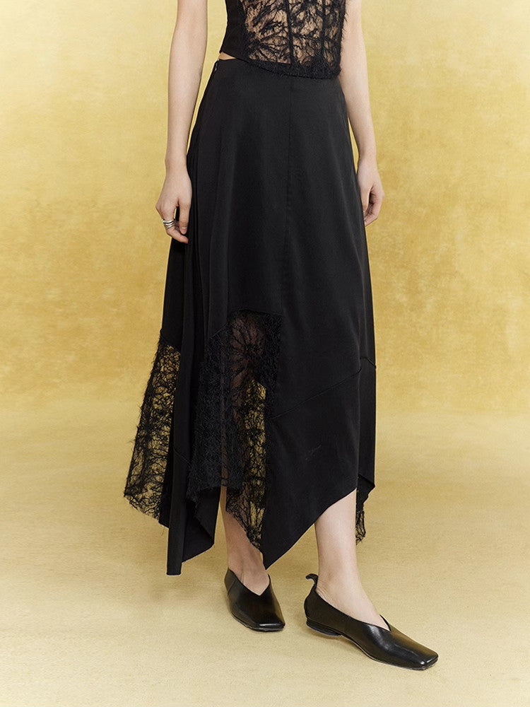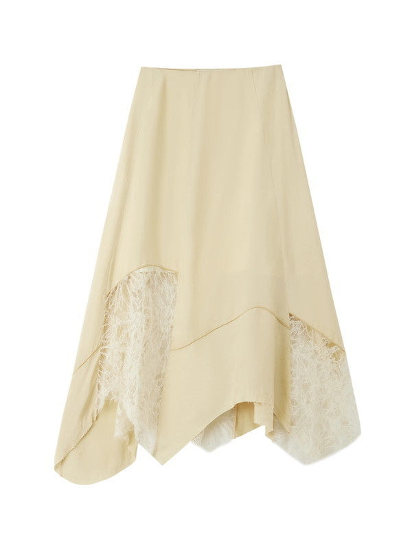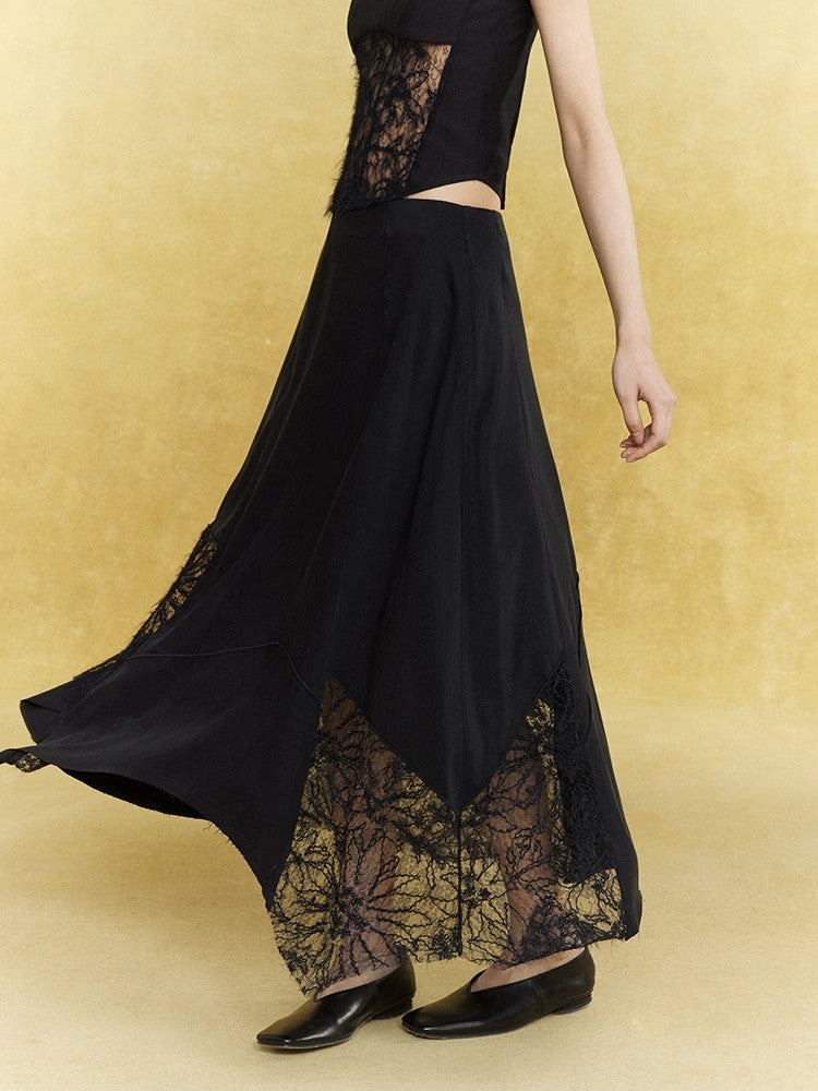 Satin Lace Asymmetry Elegant Chic Long-Skirt