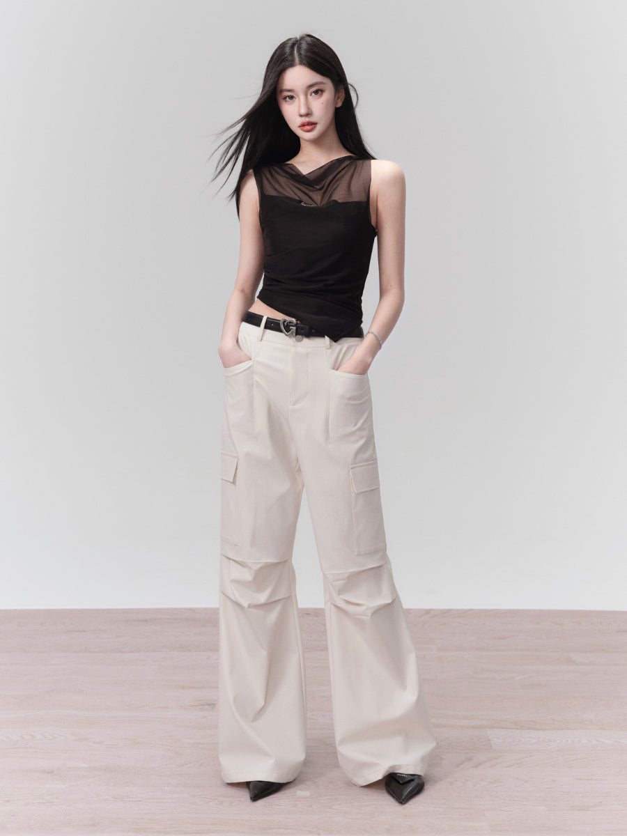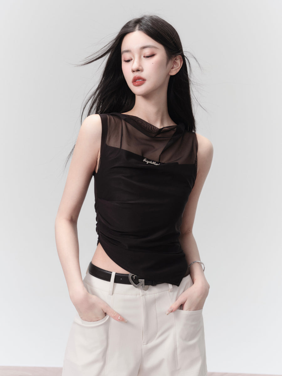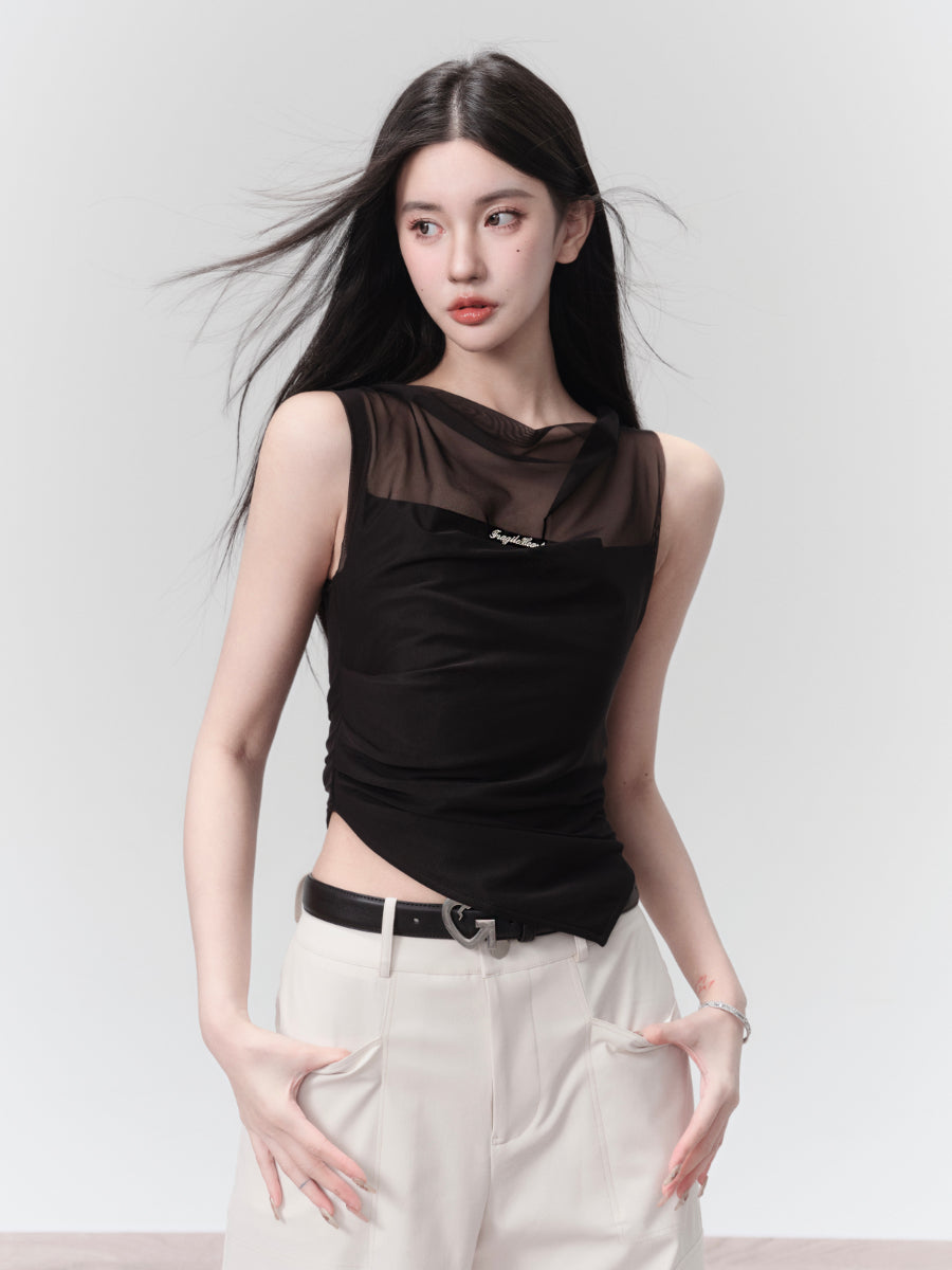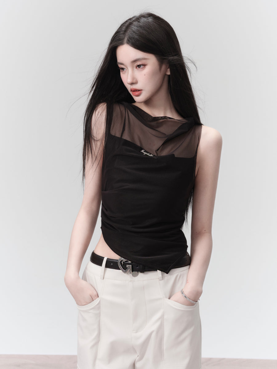 See-Through Sheer Asymmetry No-Sleeve Tops