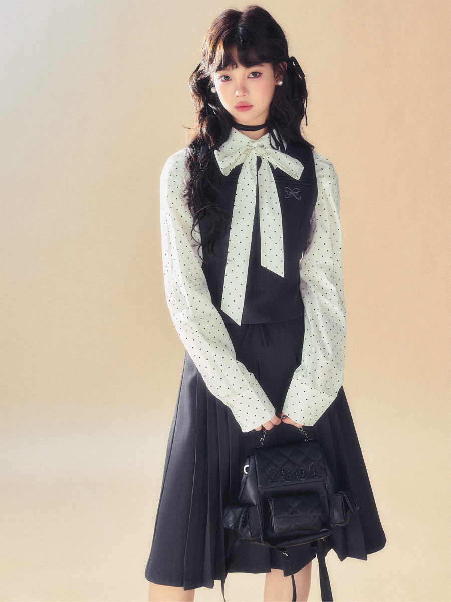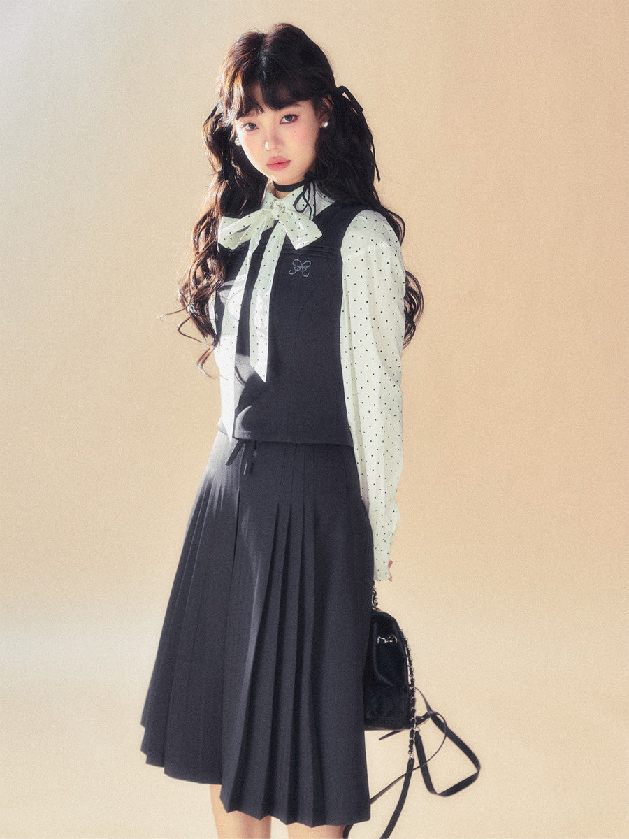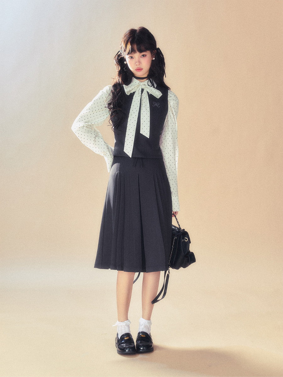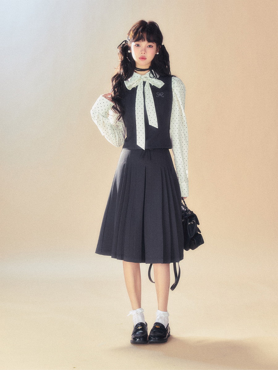 Set-Up College Casual Box-Pleats Classy Vest&Long-Skirt&Short-Pants