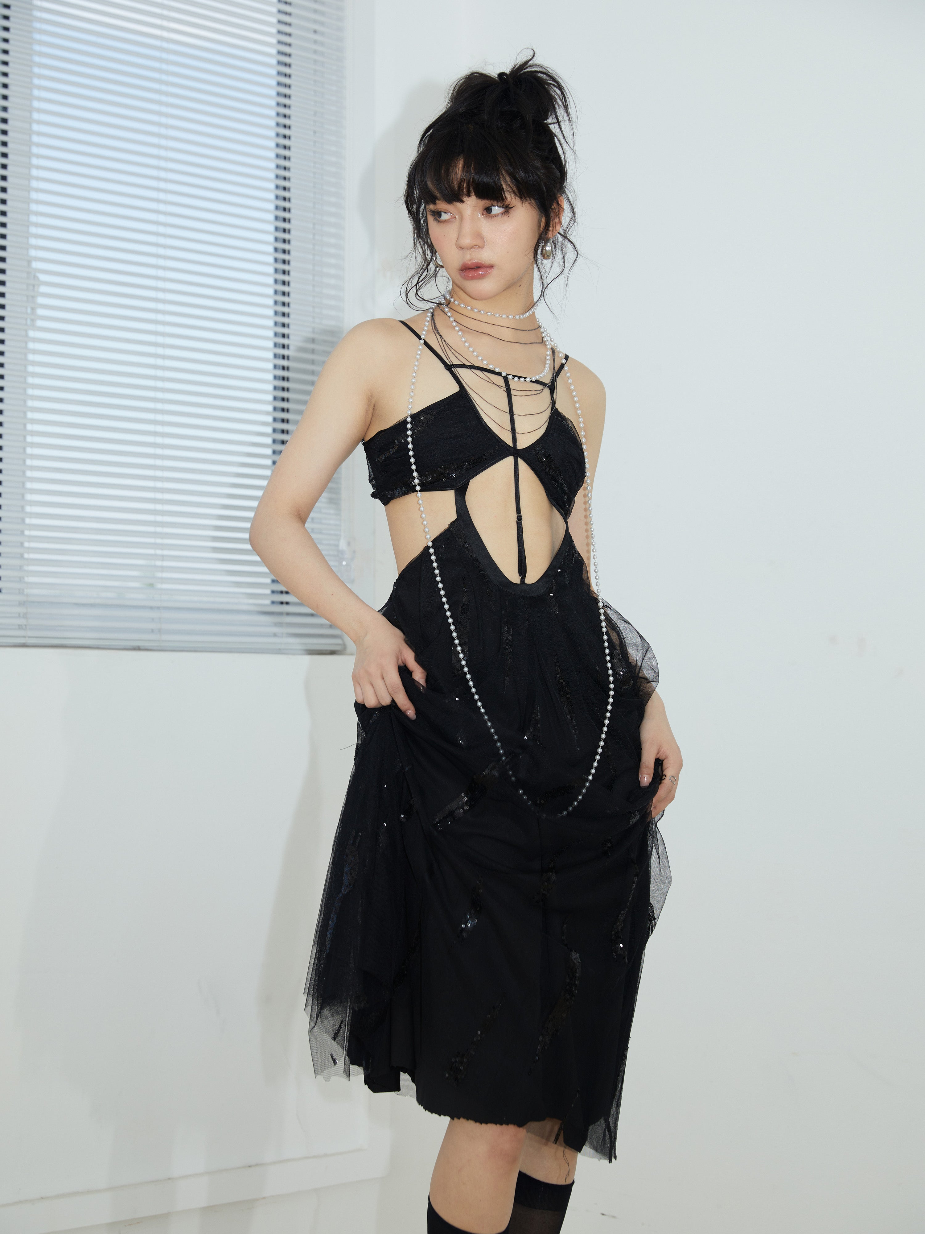 Sexy Sling Mesh Sequins Dress