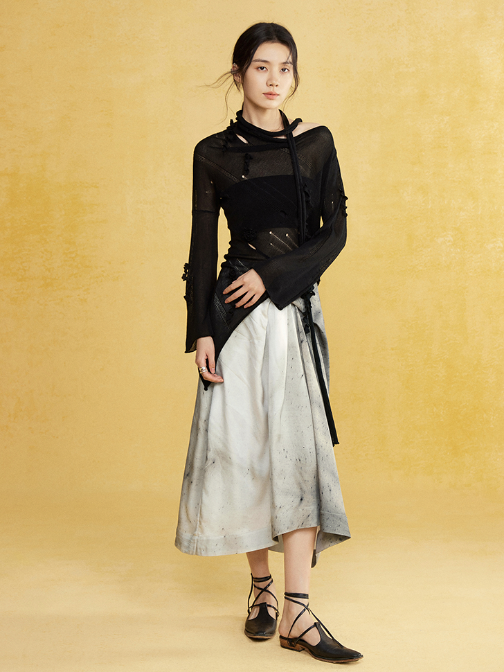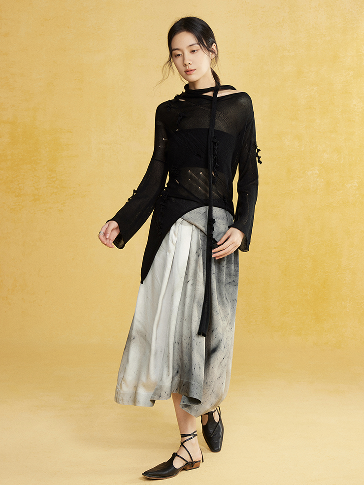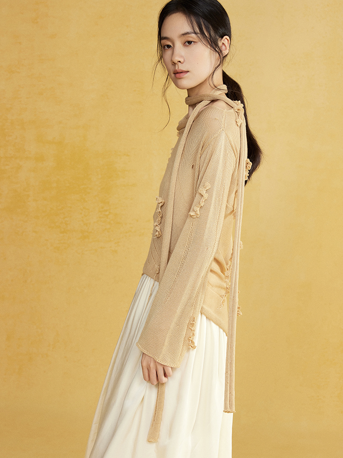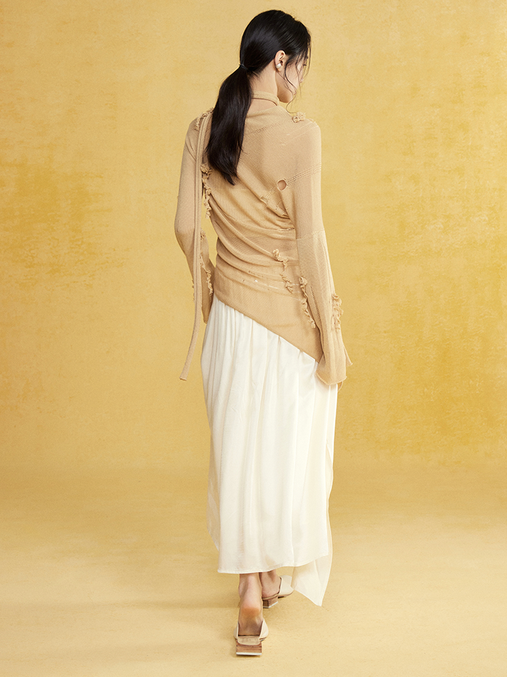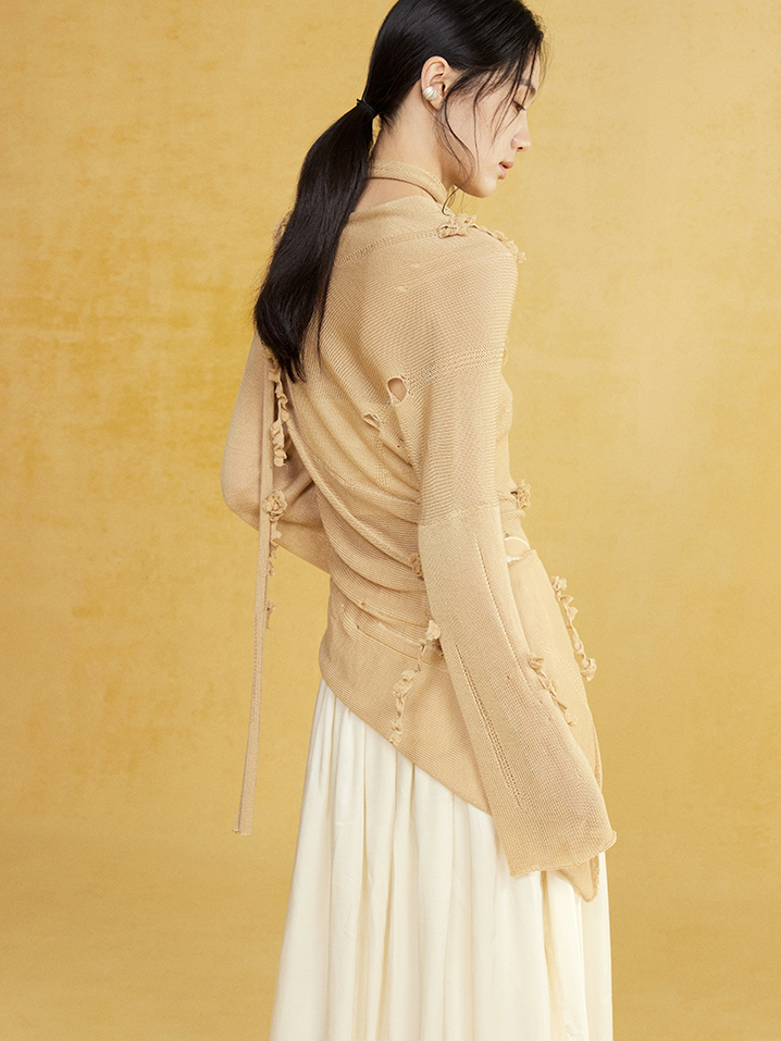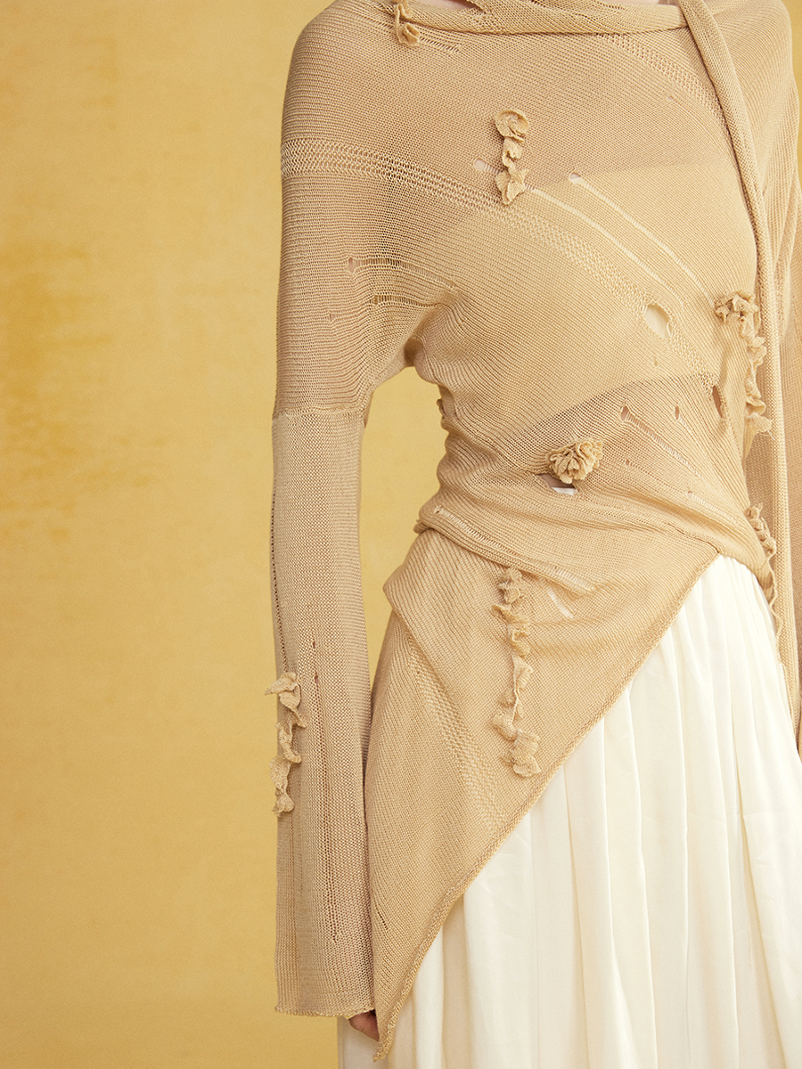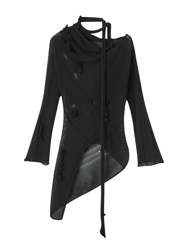 Slant-neck Irregular Hem Hole Sweater