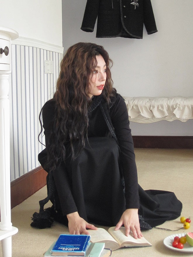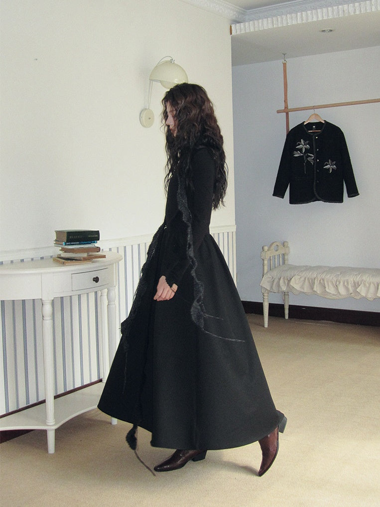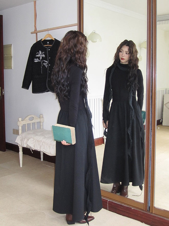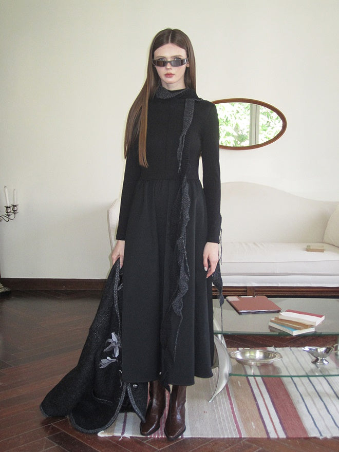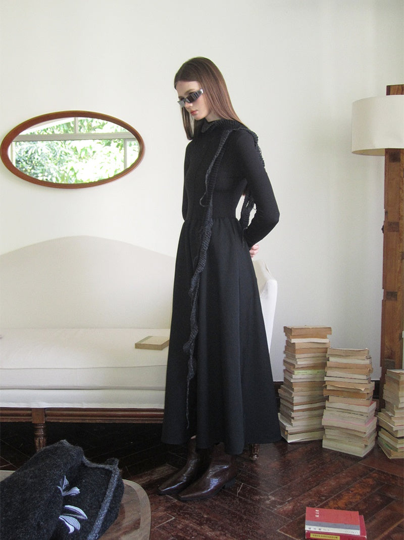 Slim Monotone Long Ruffle Simple Chic One-Piece