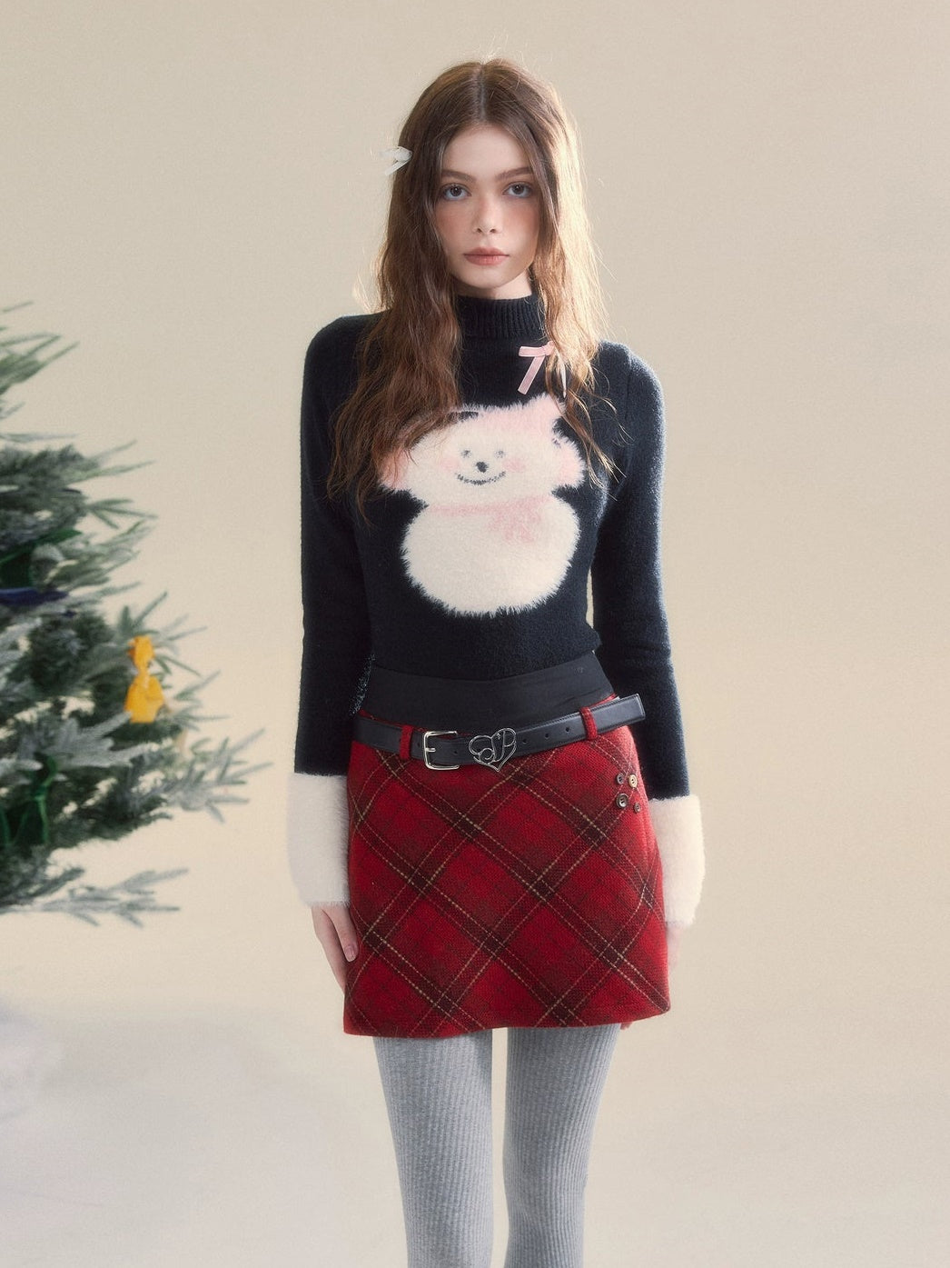 Snowman Splicing Fur Bottle-neck Slim Sweater