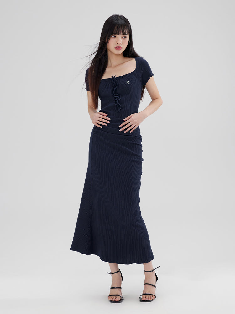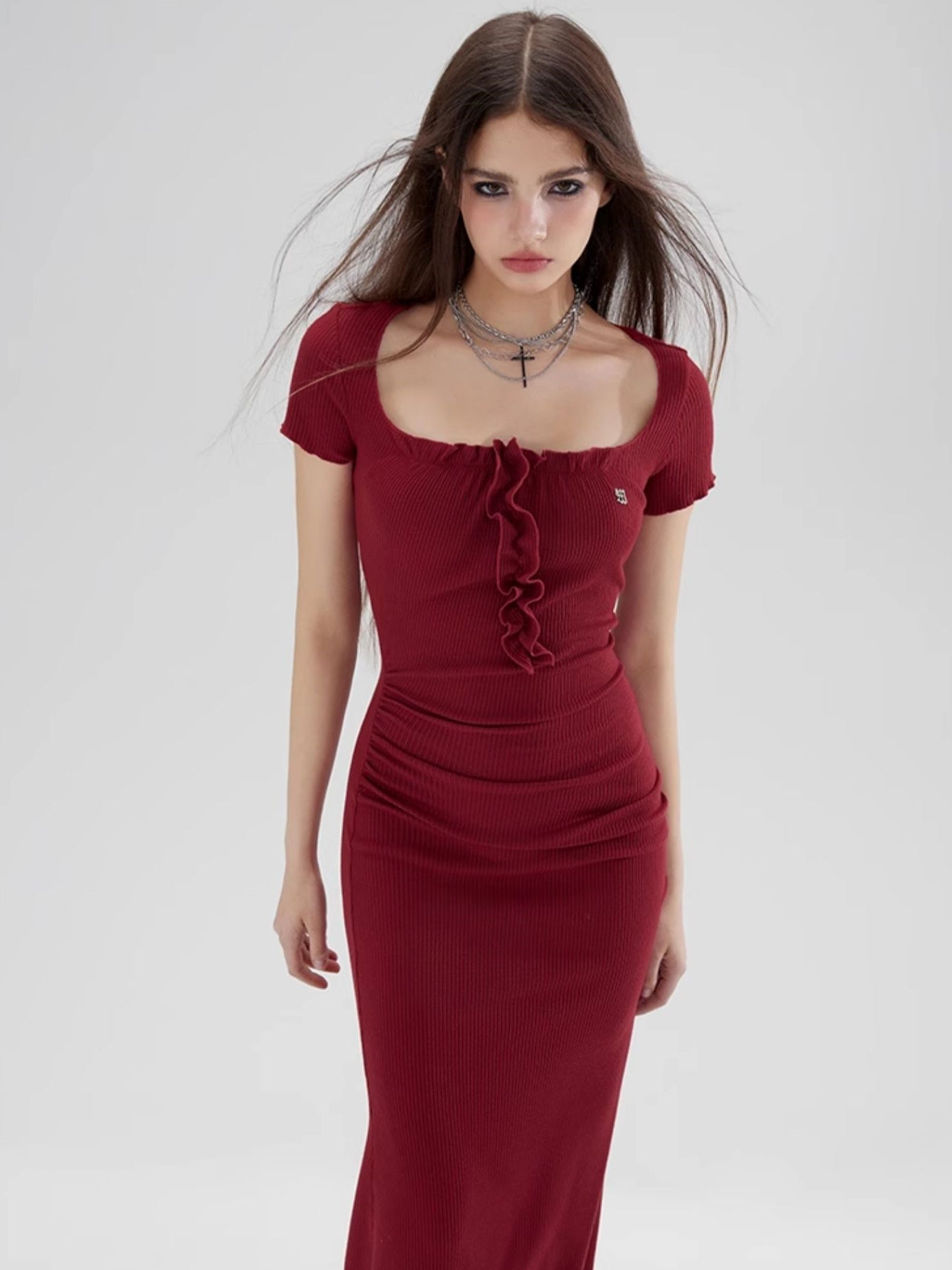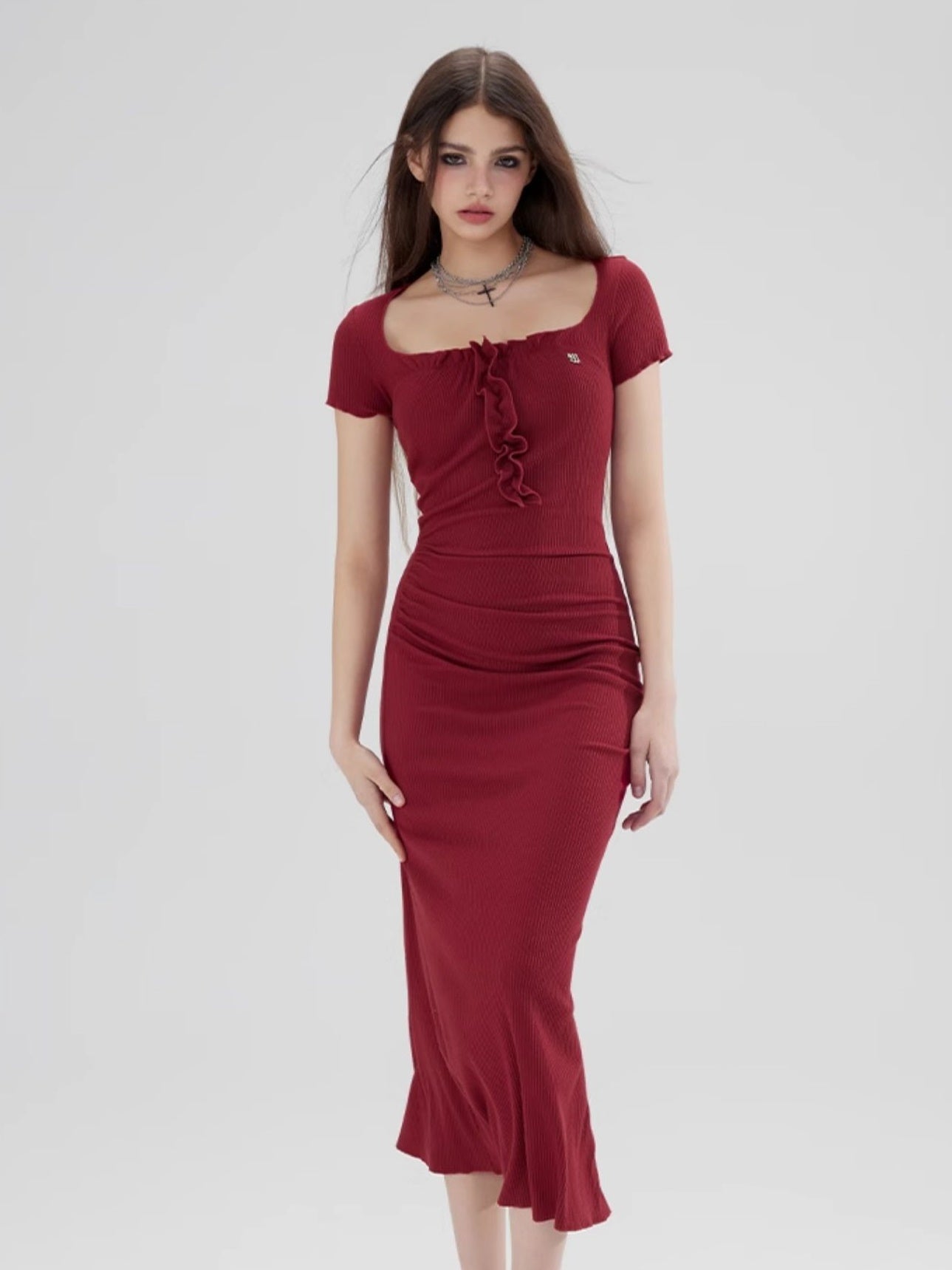 Stretch Frill Tight Slim-Fit Classy Chic One-Piece