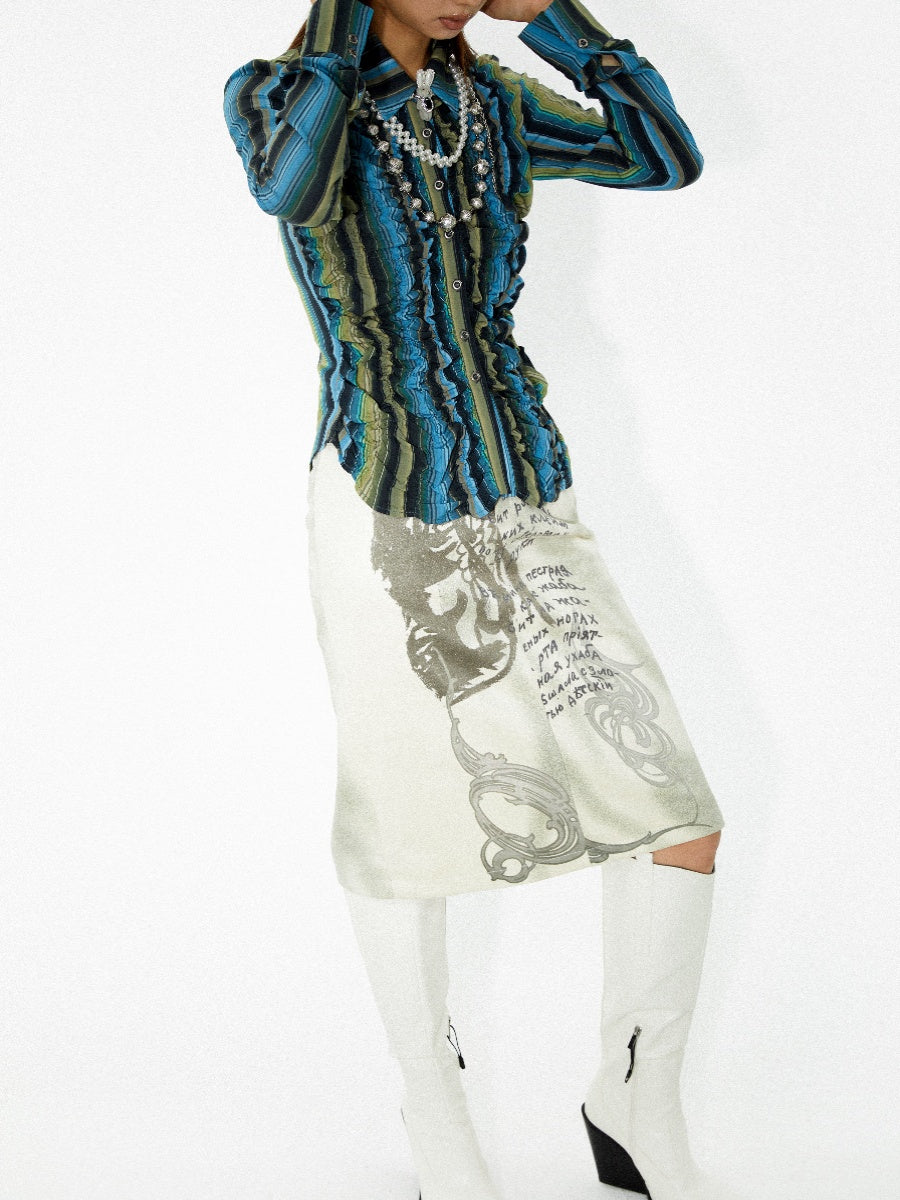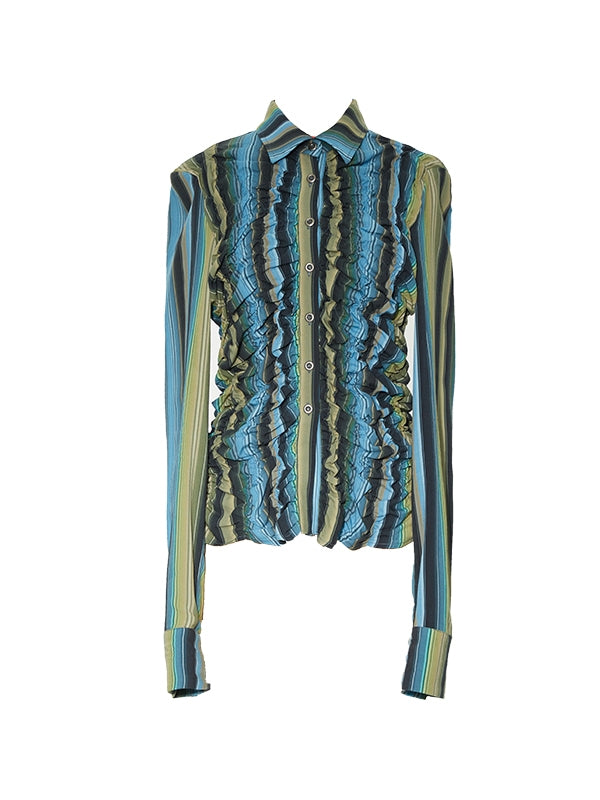 Stripe Colorful Frill Ruffle Nichi Gorgeous Blouse