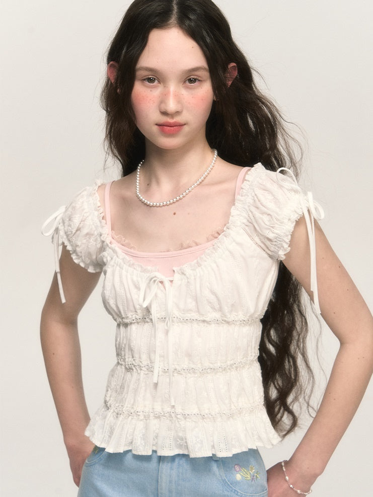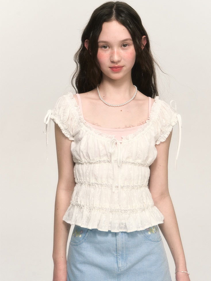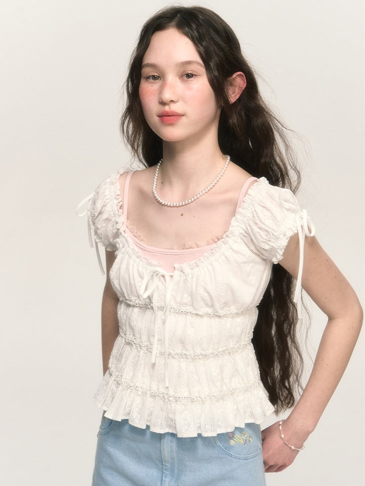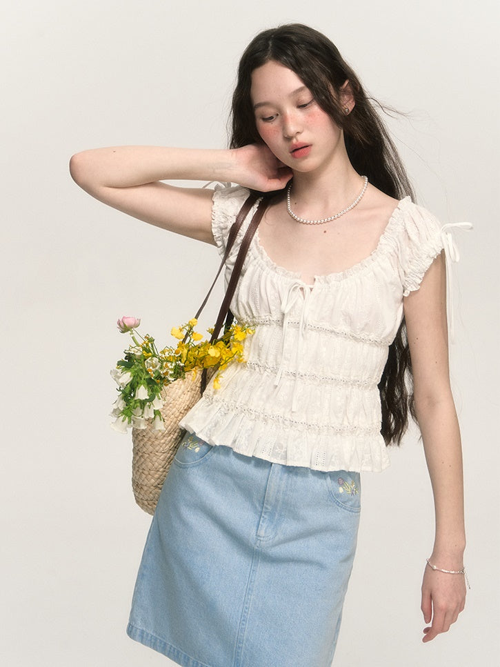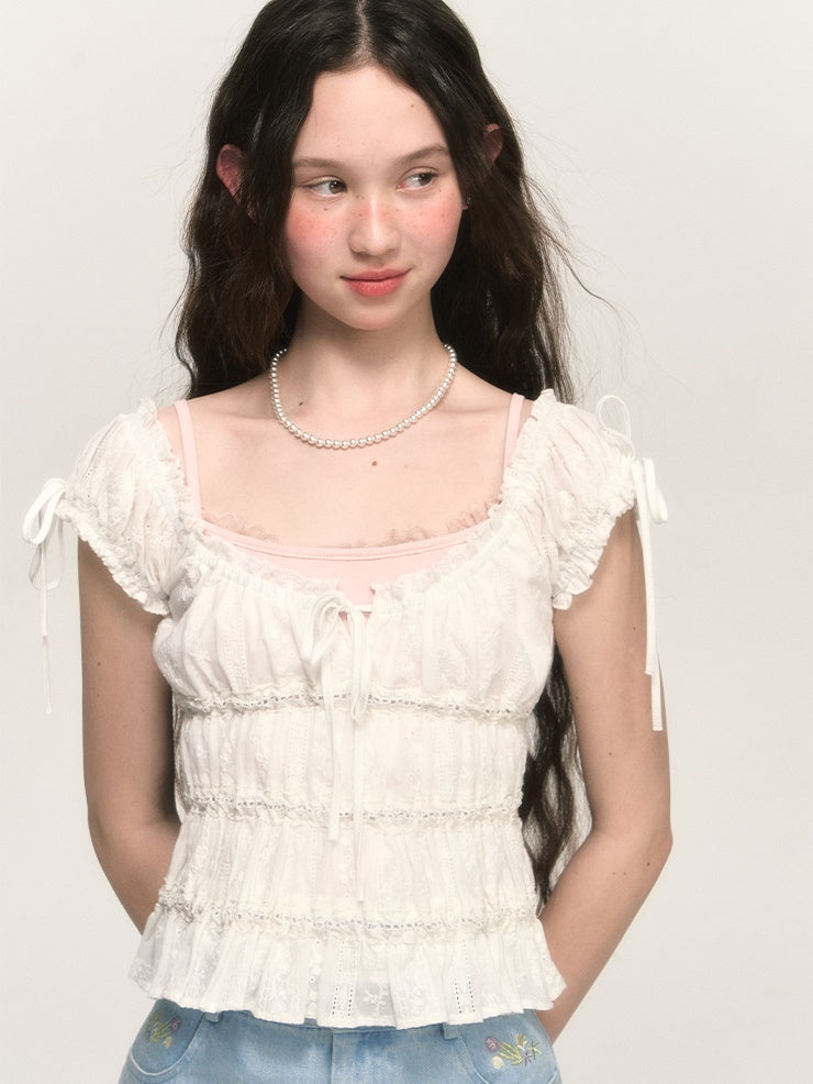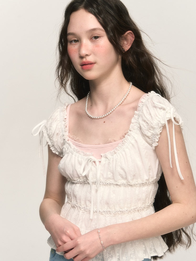 Sweet Hollow Fungus Lace Short-sleeved Shirt