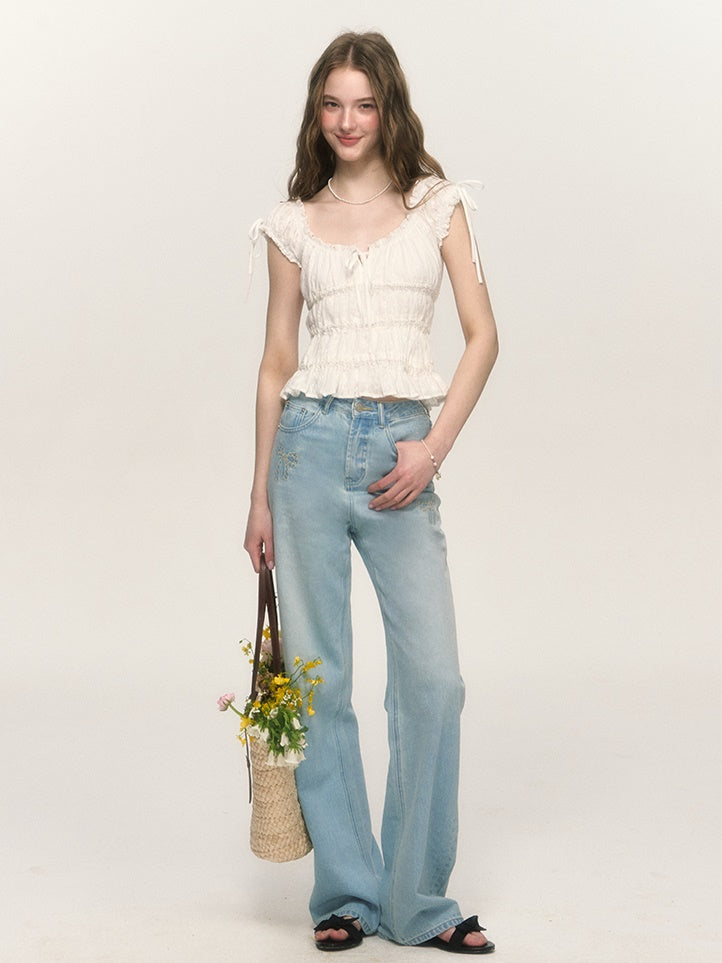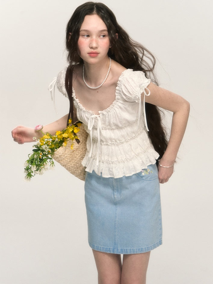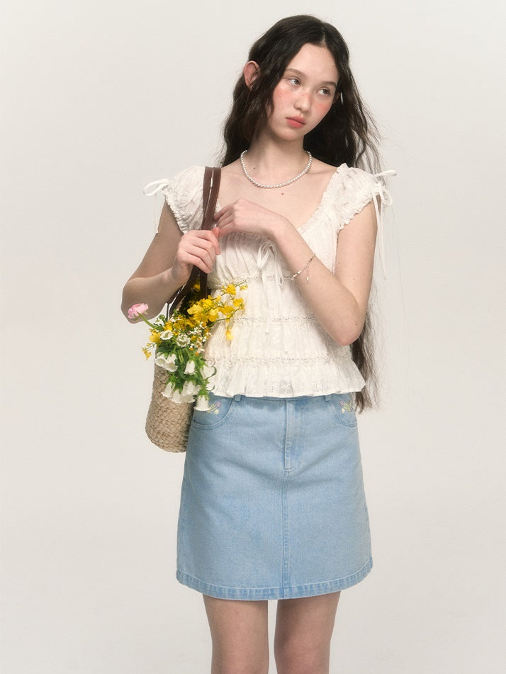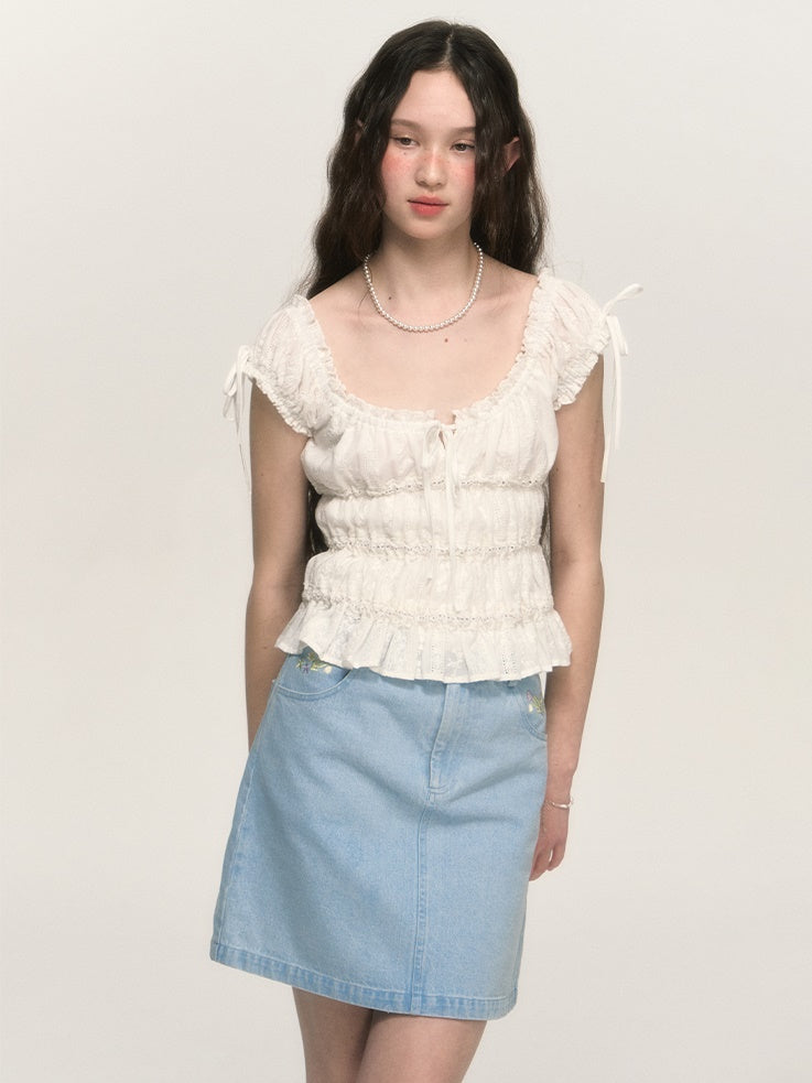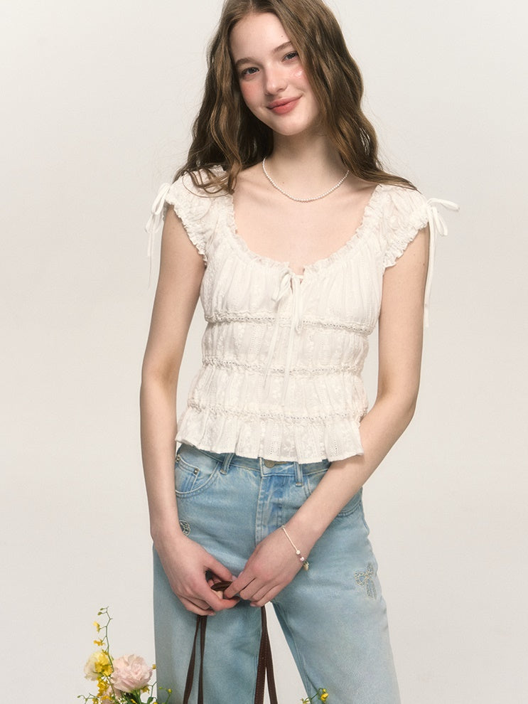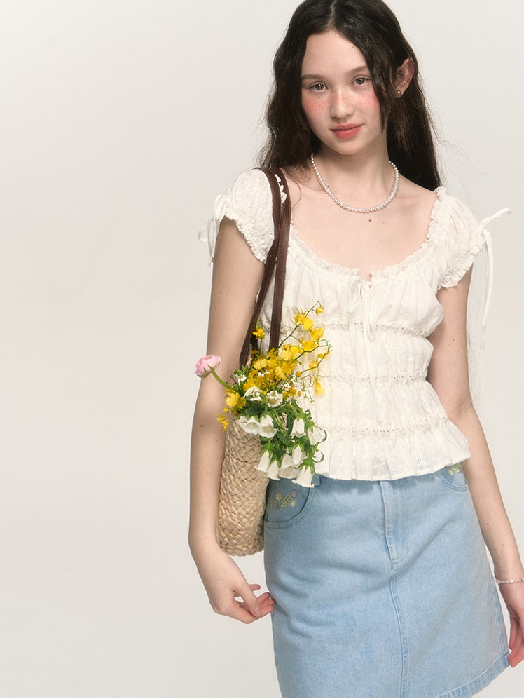 Sweet Hollow Fungus Lace Short-sleeved Shirt