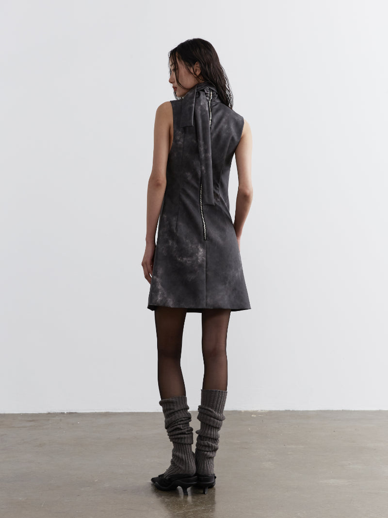 Tie-Dye Leather No-Sleeve Cross Nichi One-Piece
