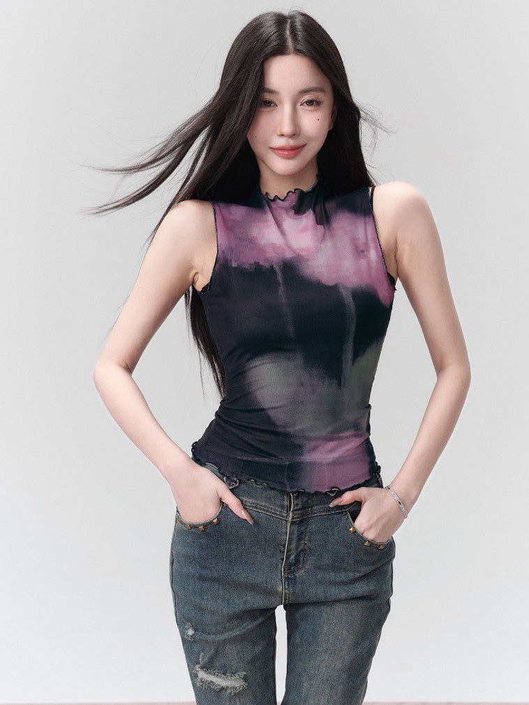 Tie-Dye Mellowno-Sleeve Marble Ciffon Tops