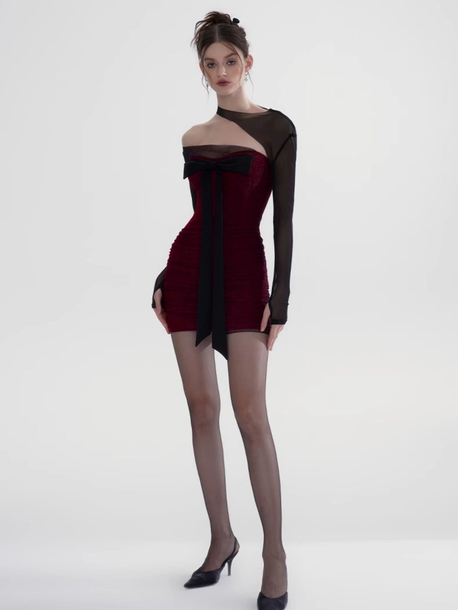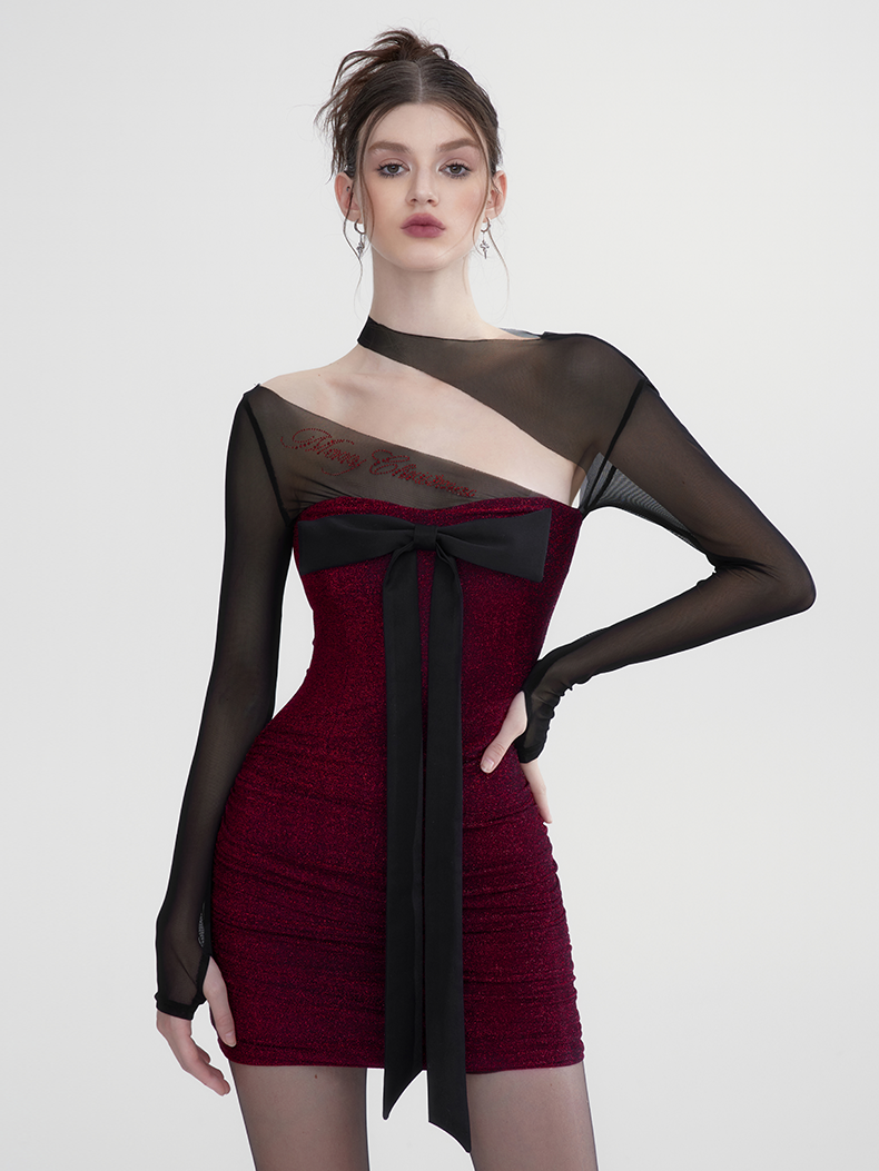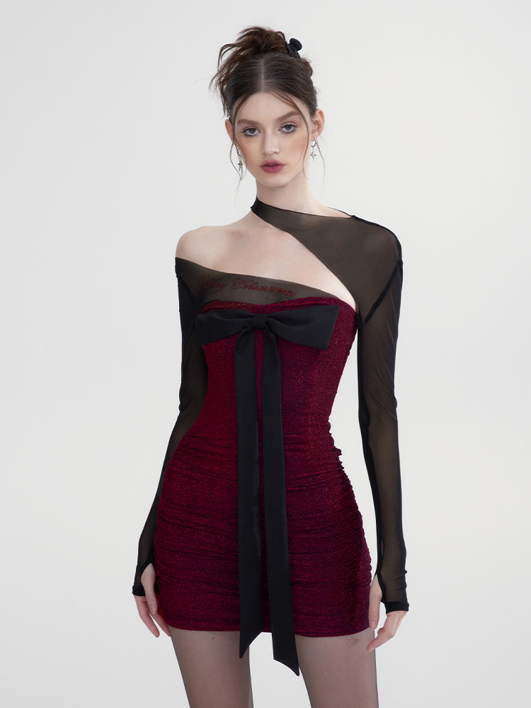 Tight Ribbon Body-Conscious Sheer Sexy One-Piece