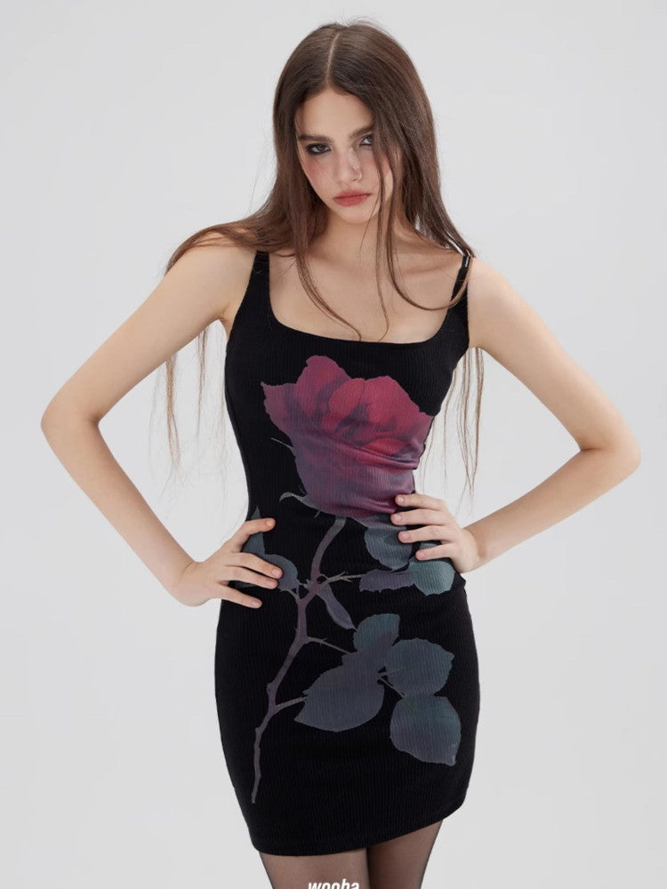 Tight Slim-Fit Body-Conscious Camisole Flower Short One-Pieec