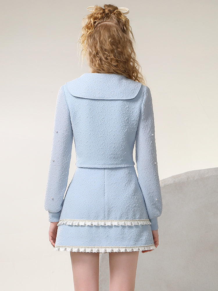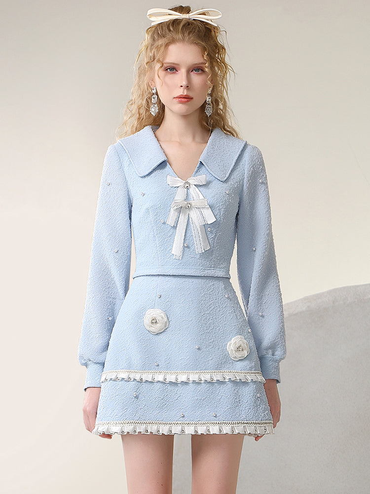 Tops&Mini-Skirt Rose 3D Sweet Classy Ribbon Frill Set-Up