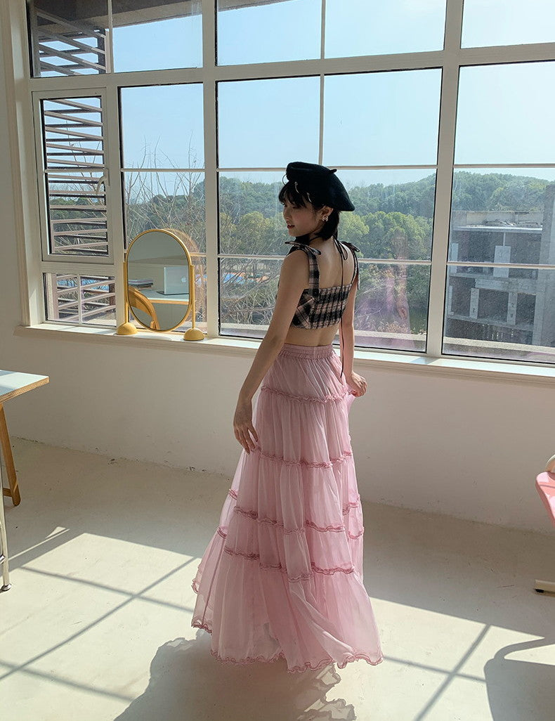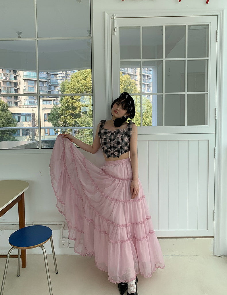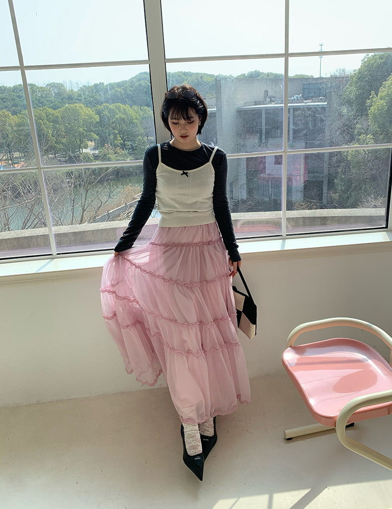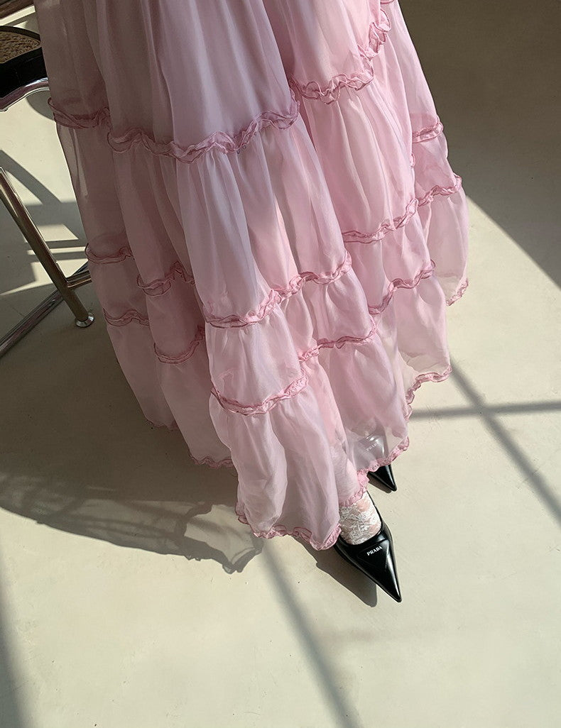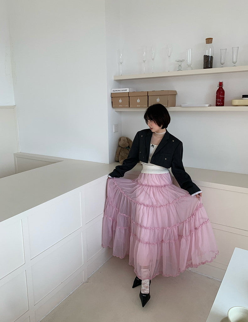 Tulle Ciffon Tiered Sheer Volume Long-Skirt
