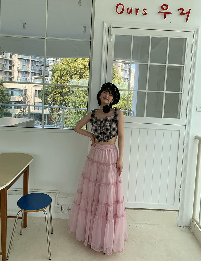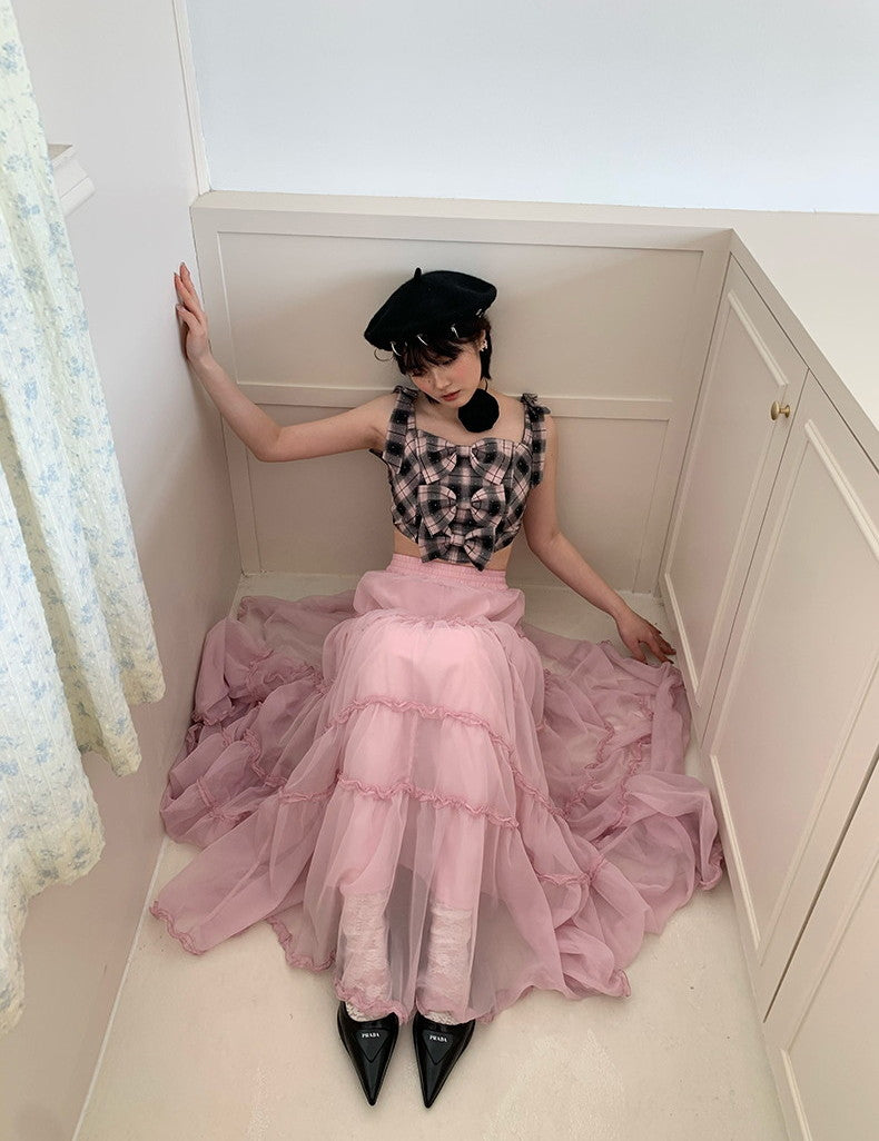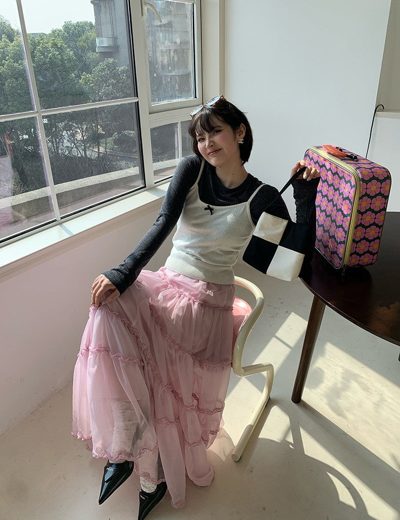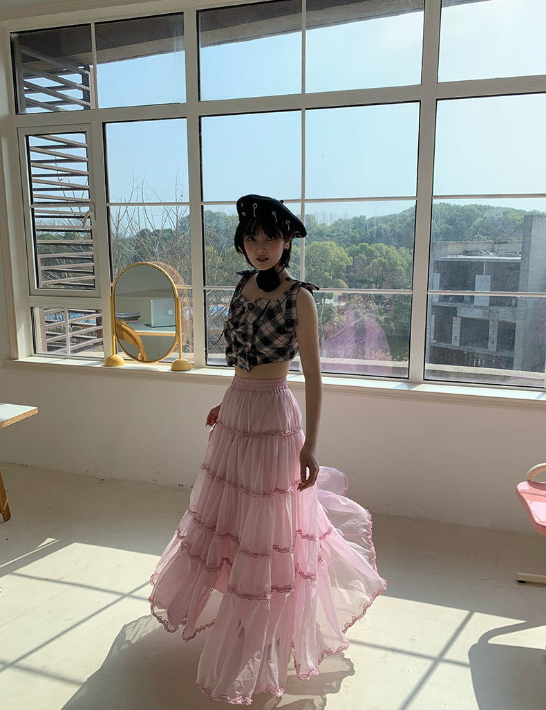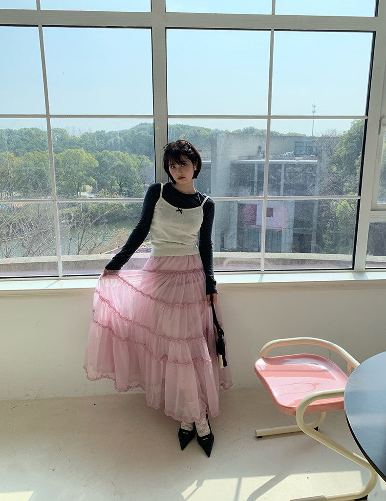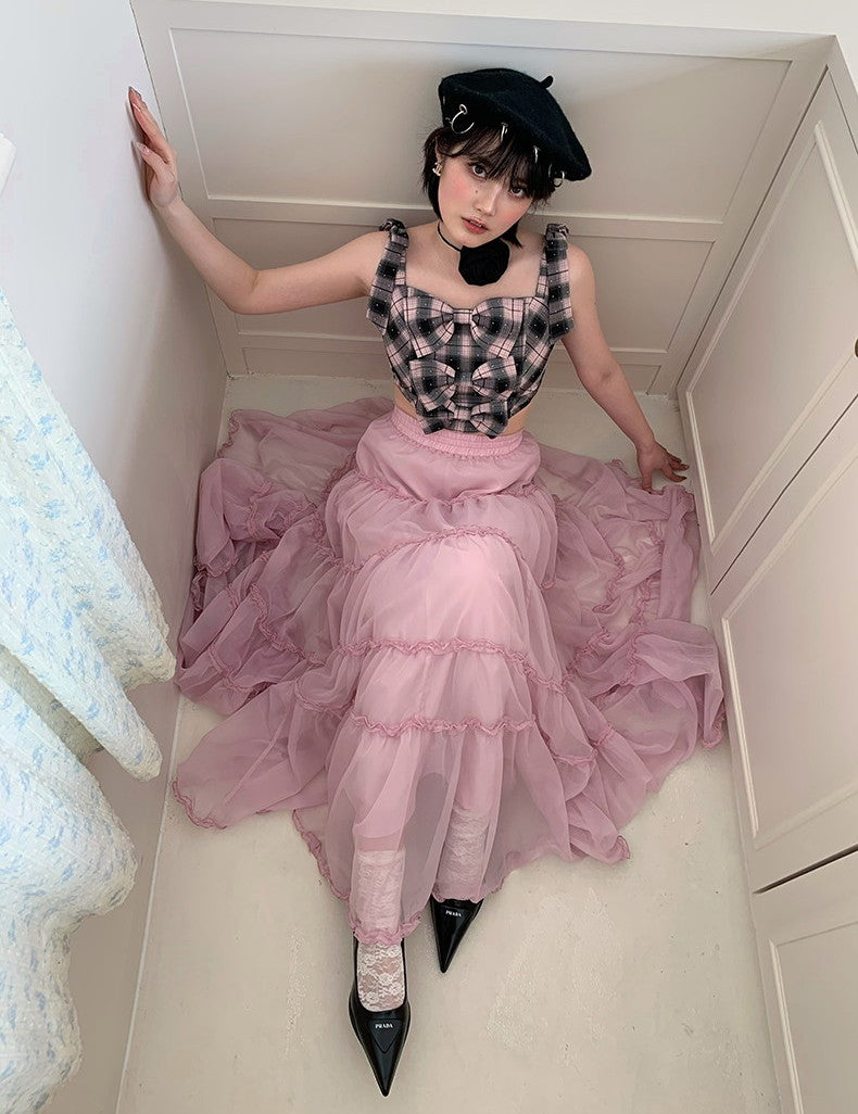 Tulle Ciffon Tiered Sheer Volume Long-Skirt