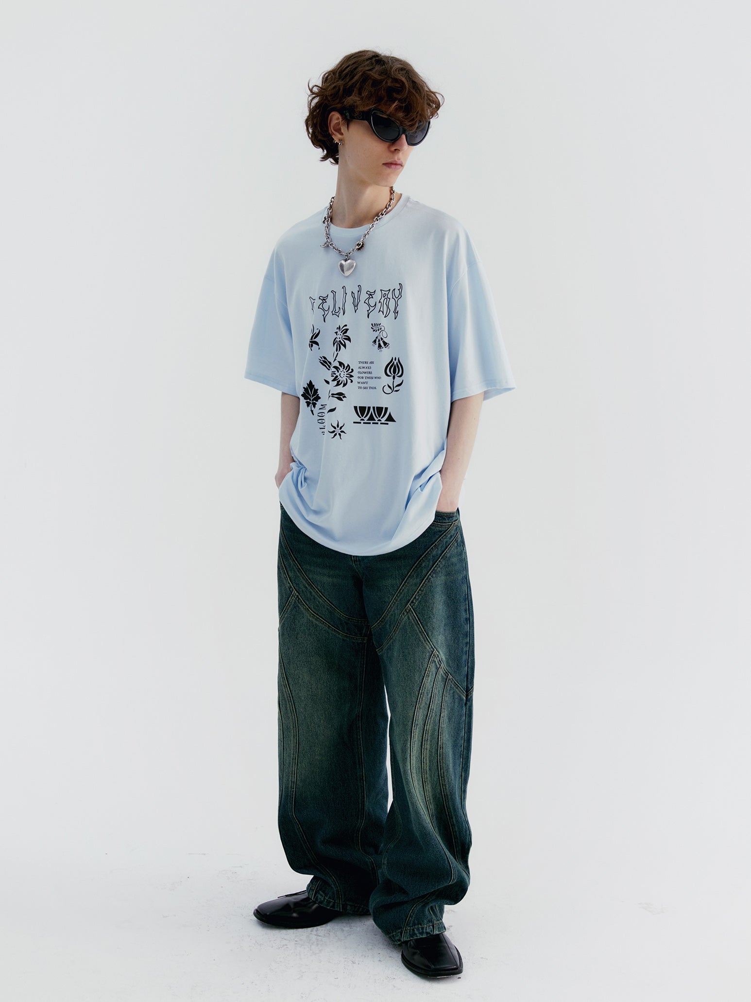 Unisex Oversize Retro Silhouette Print-T-shirt
