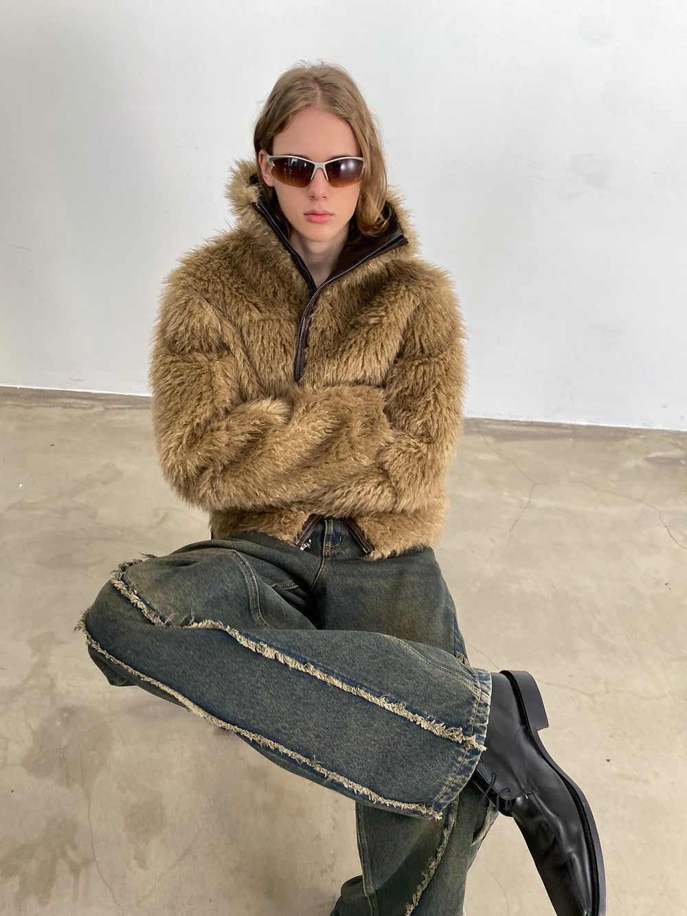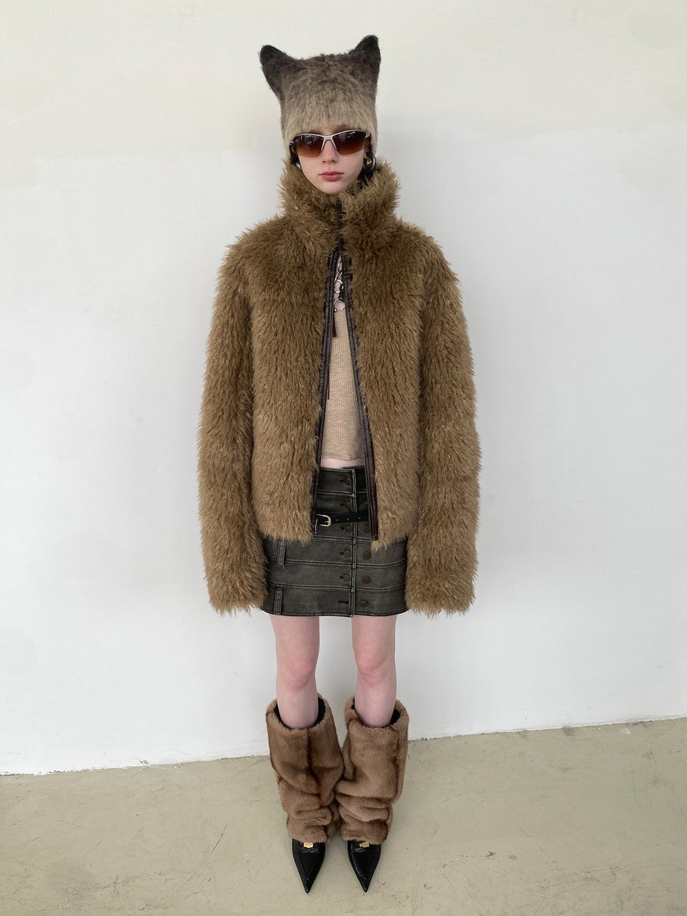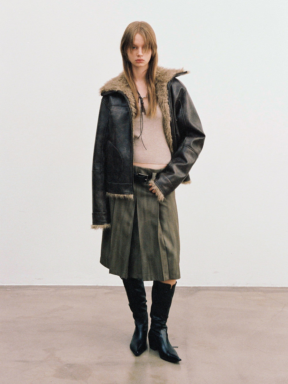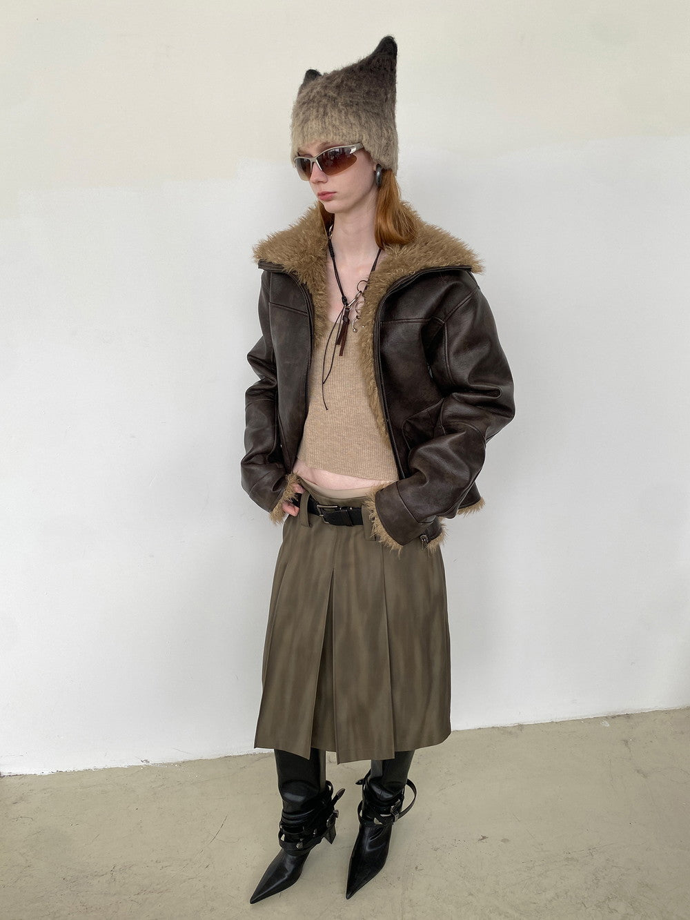 Unisex Reversible Fur Leather Vintage Retro Crocodile Jacket