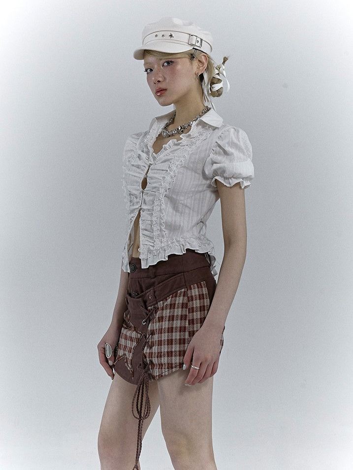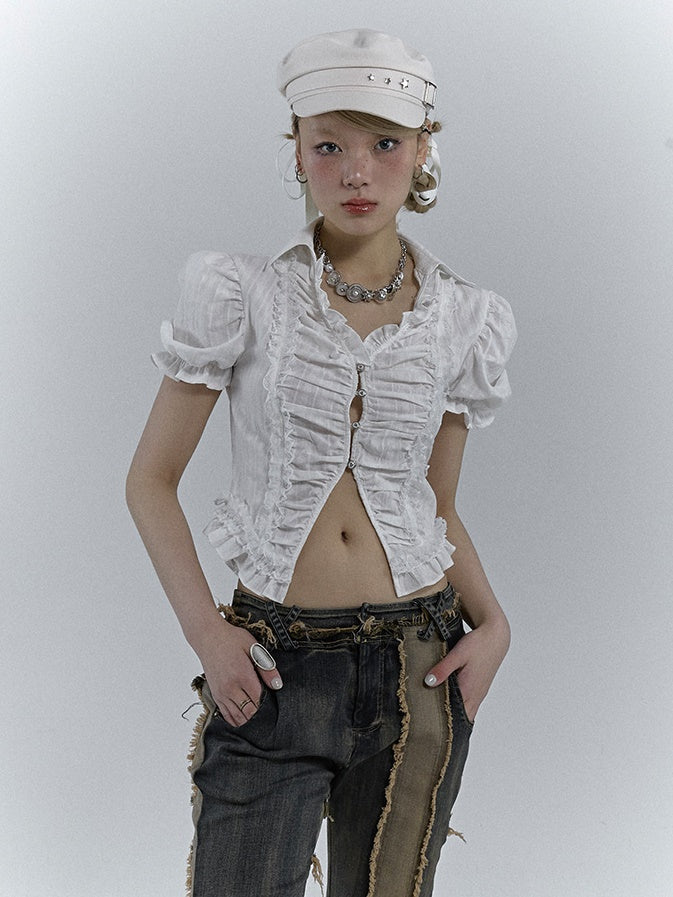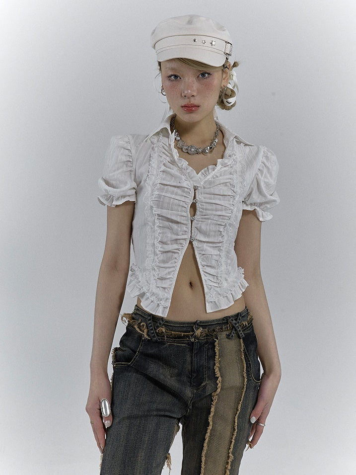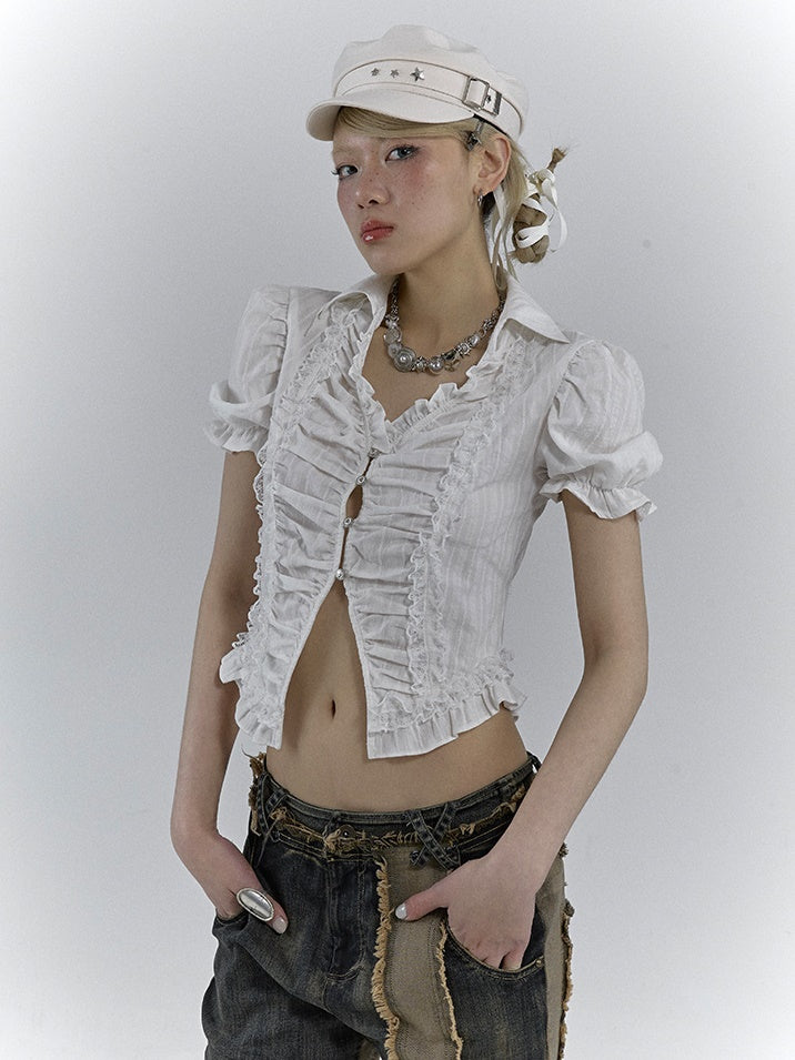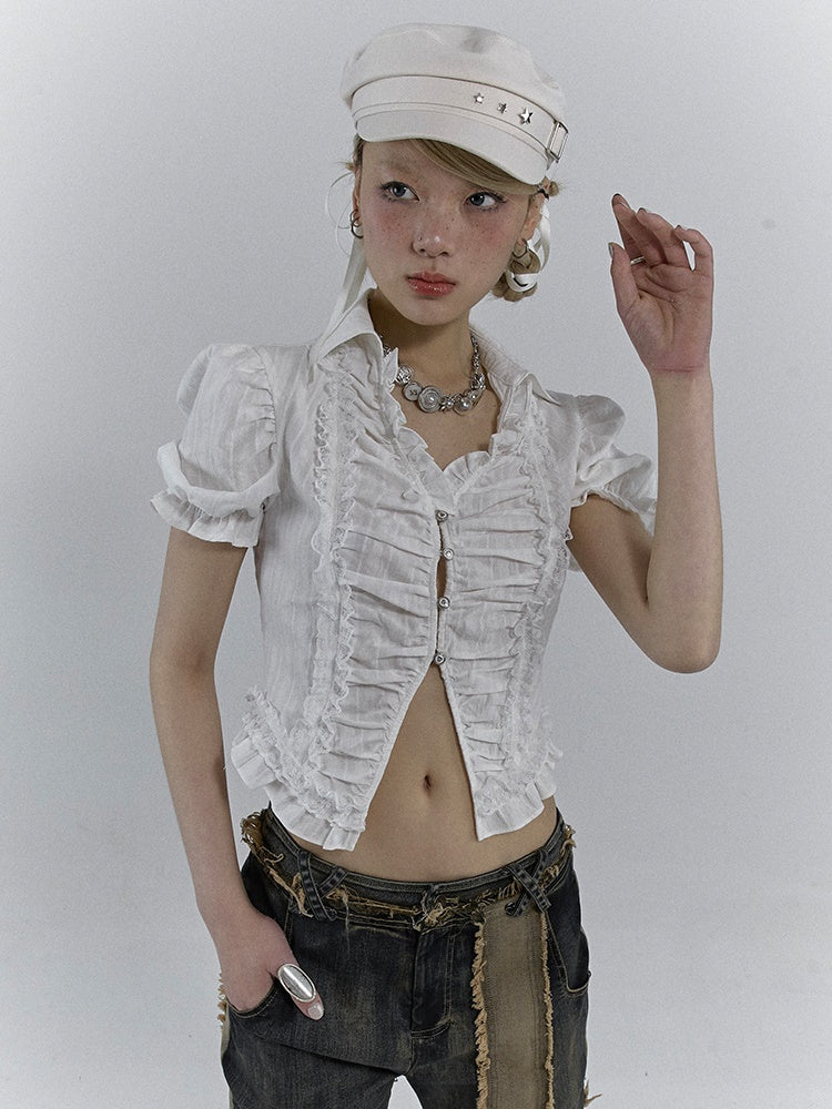 V-NECK PUFF SLEEVE SLEEVED GATHER SHIRT