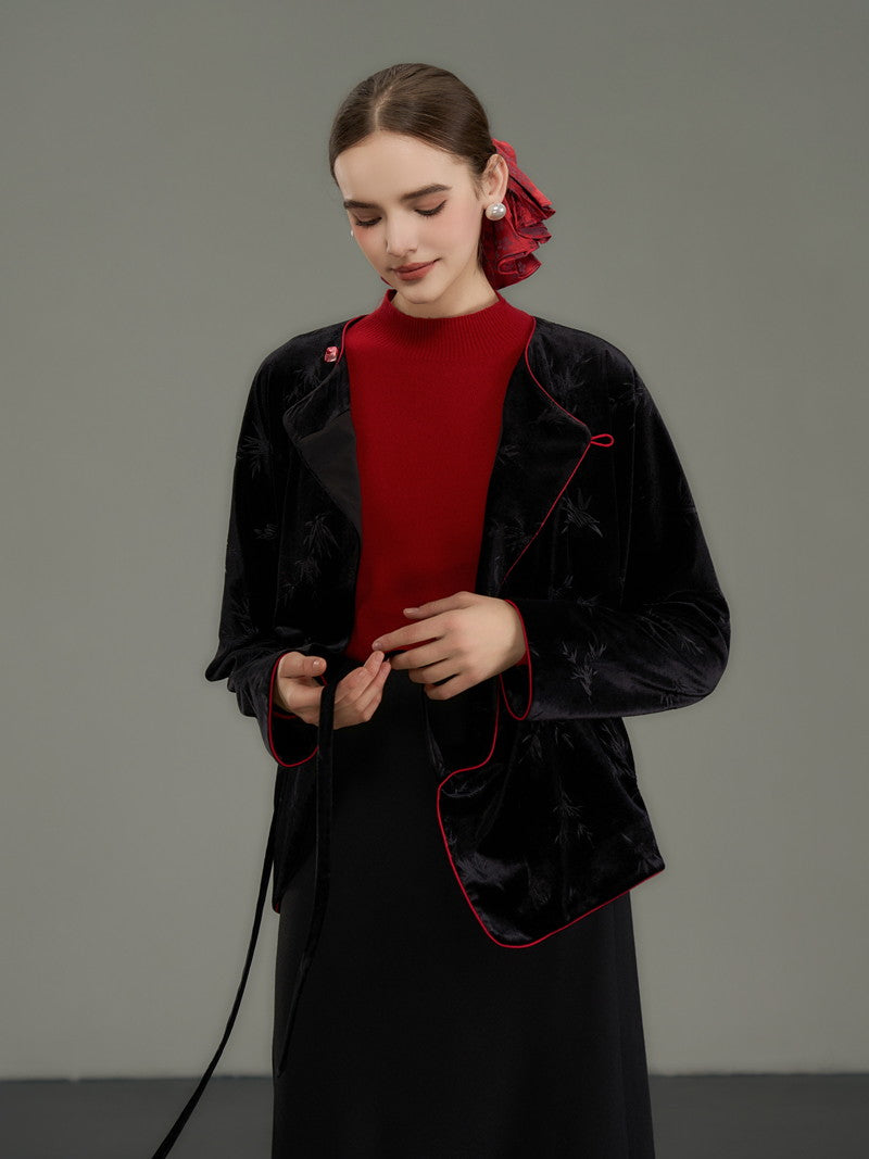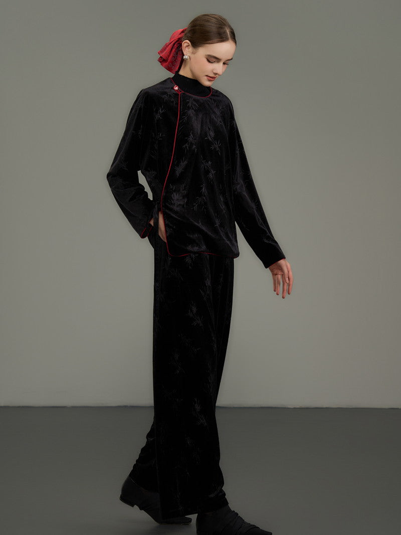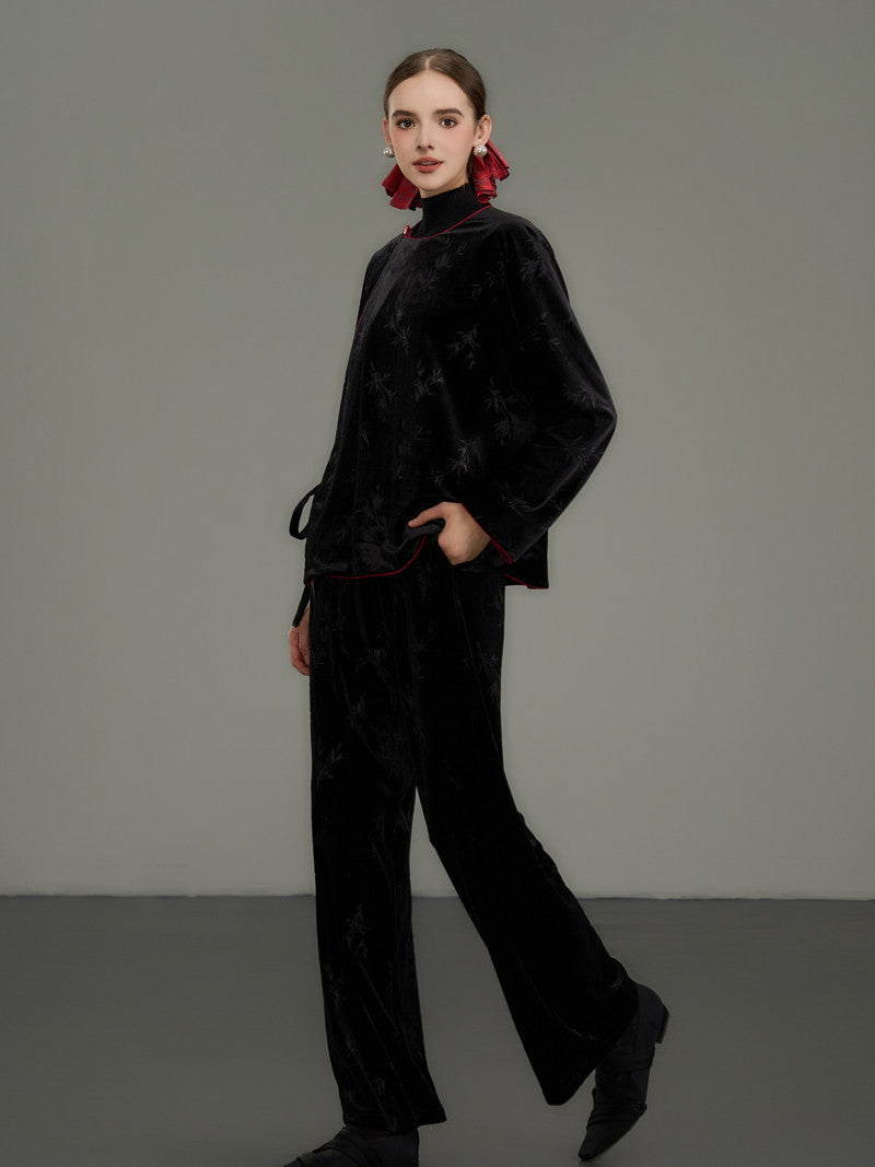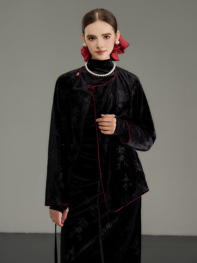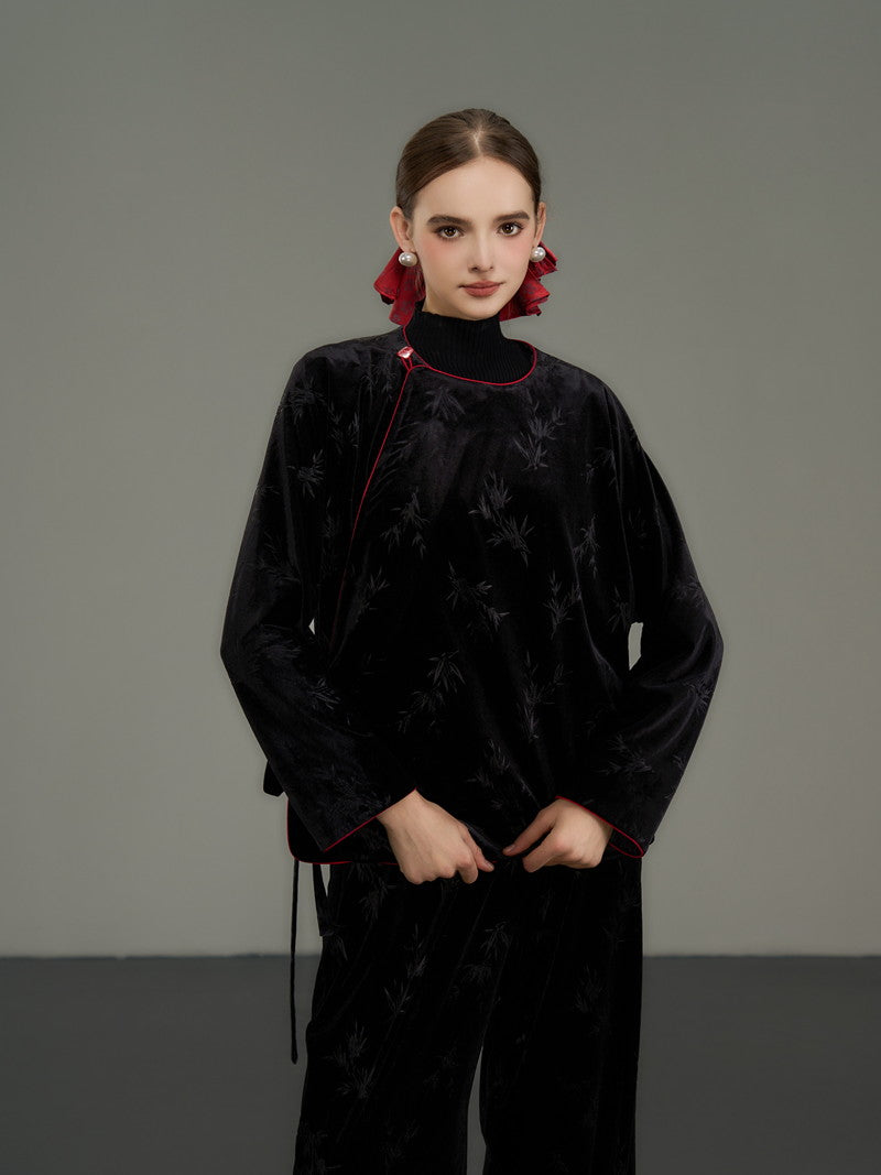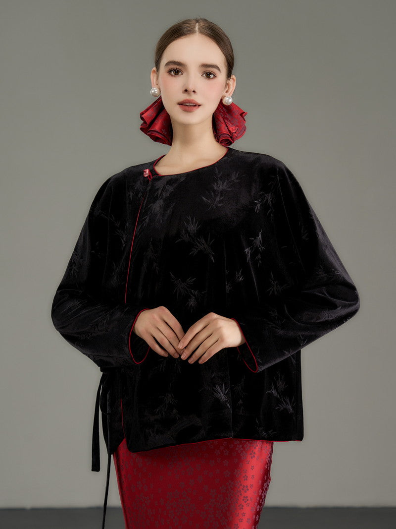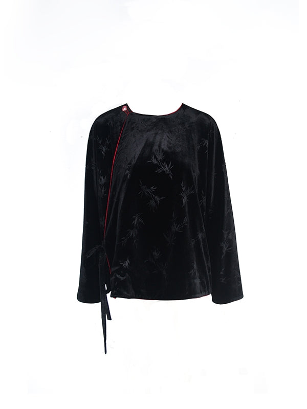 Velvet Embroidery Slim China Retro Bi-Color Tops