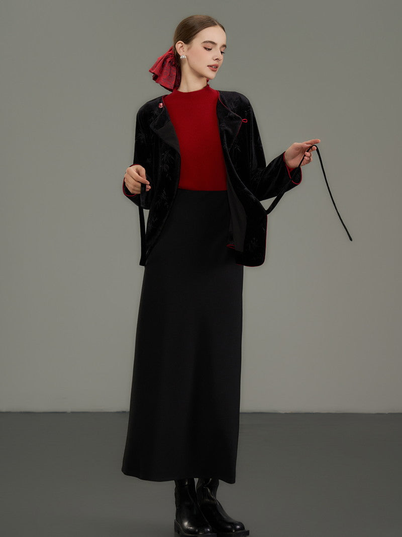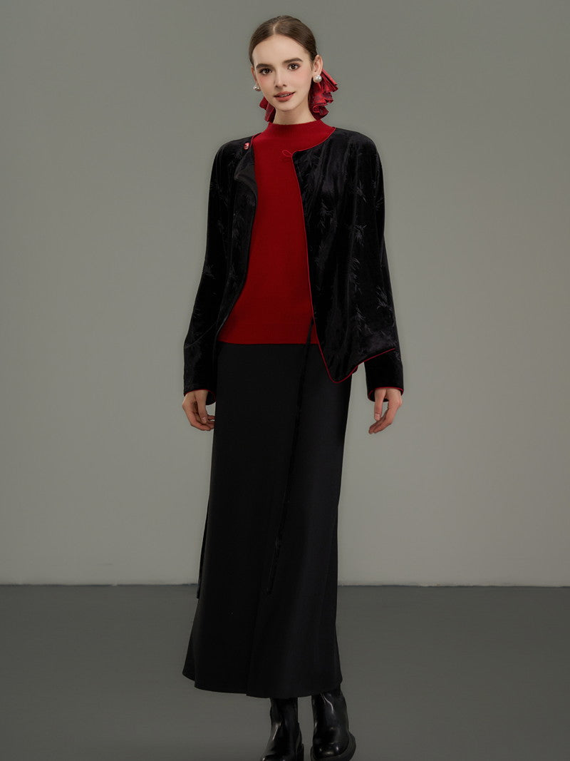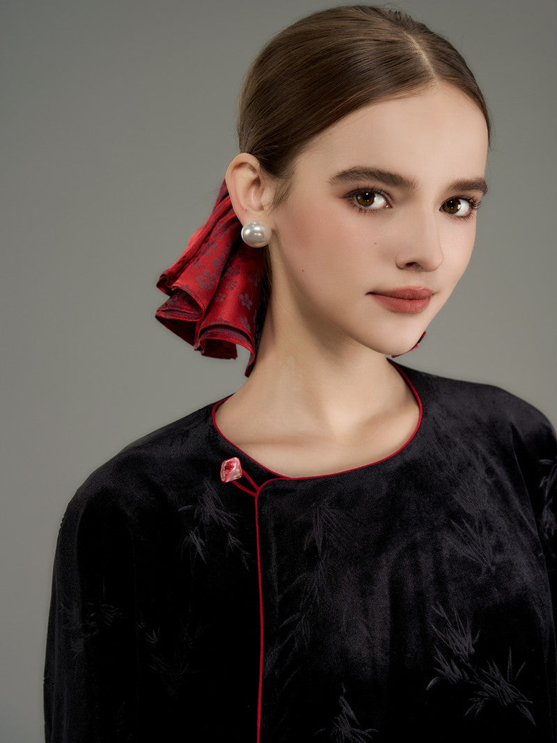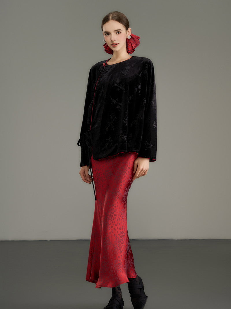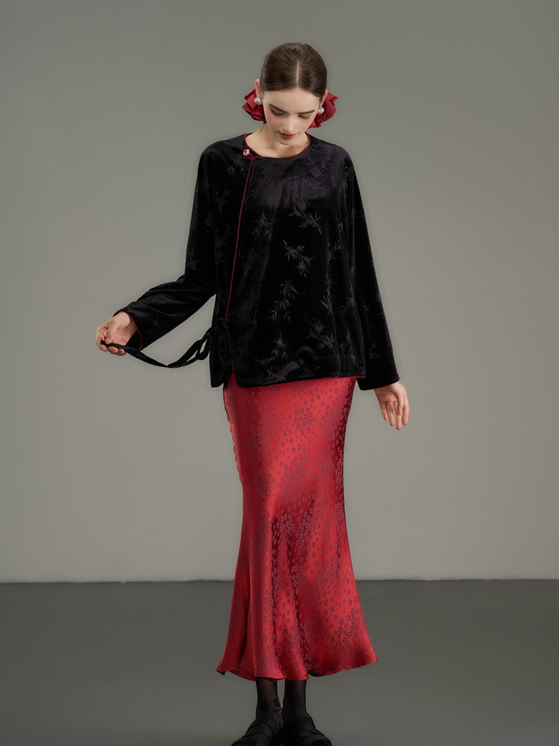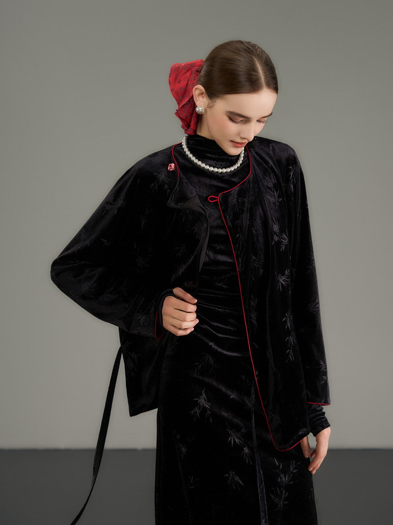 Velvet Embroidery Slim China Retro Bi-Color Tops