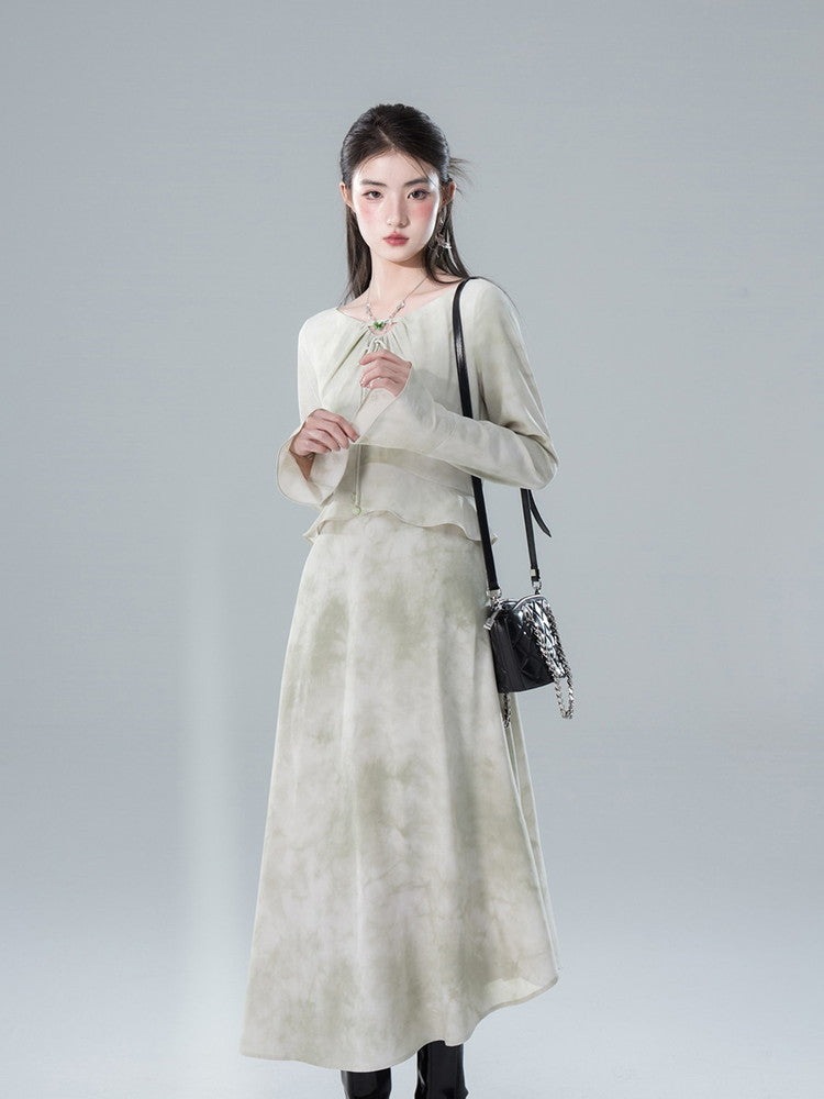 Long Tie-Dye Ciffon Falre Classy Feminin Dress