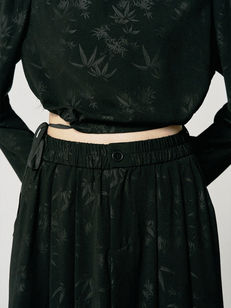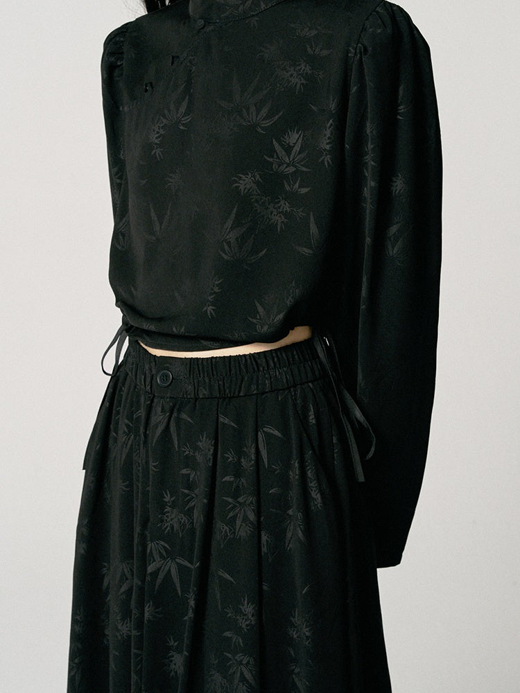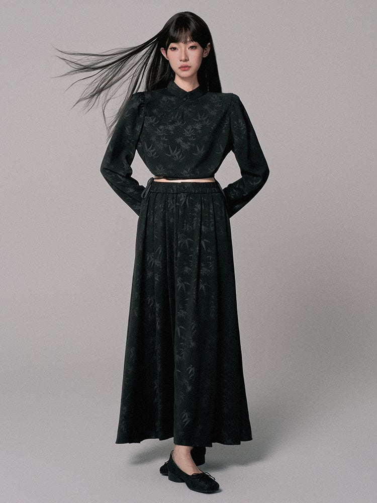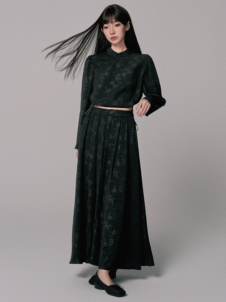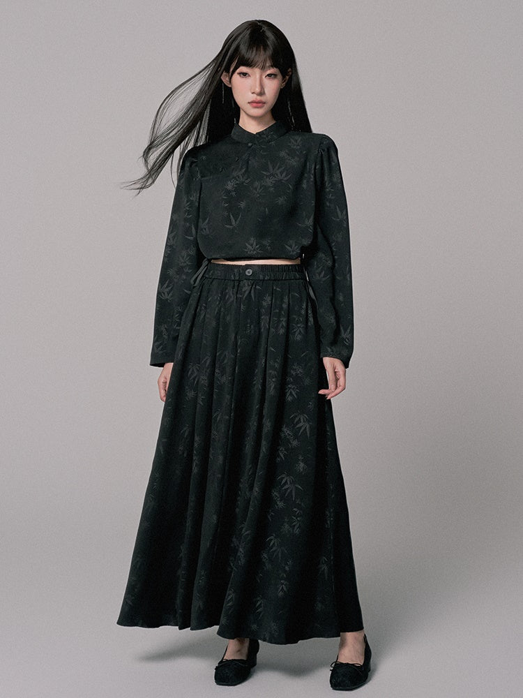 Blouse&Long-Skirt Chic Simple Embroidery Leaf Set-Up