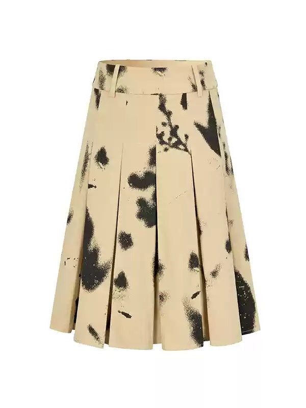 Branches and Leaves Mottled Print Pleated Work Skirt
