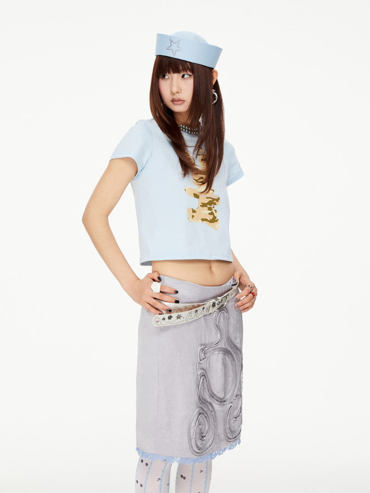 Camouflage Ring Rabbit Short Casual Crew-Neck T-Shirt