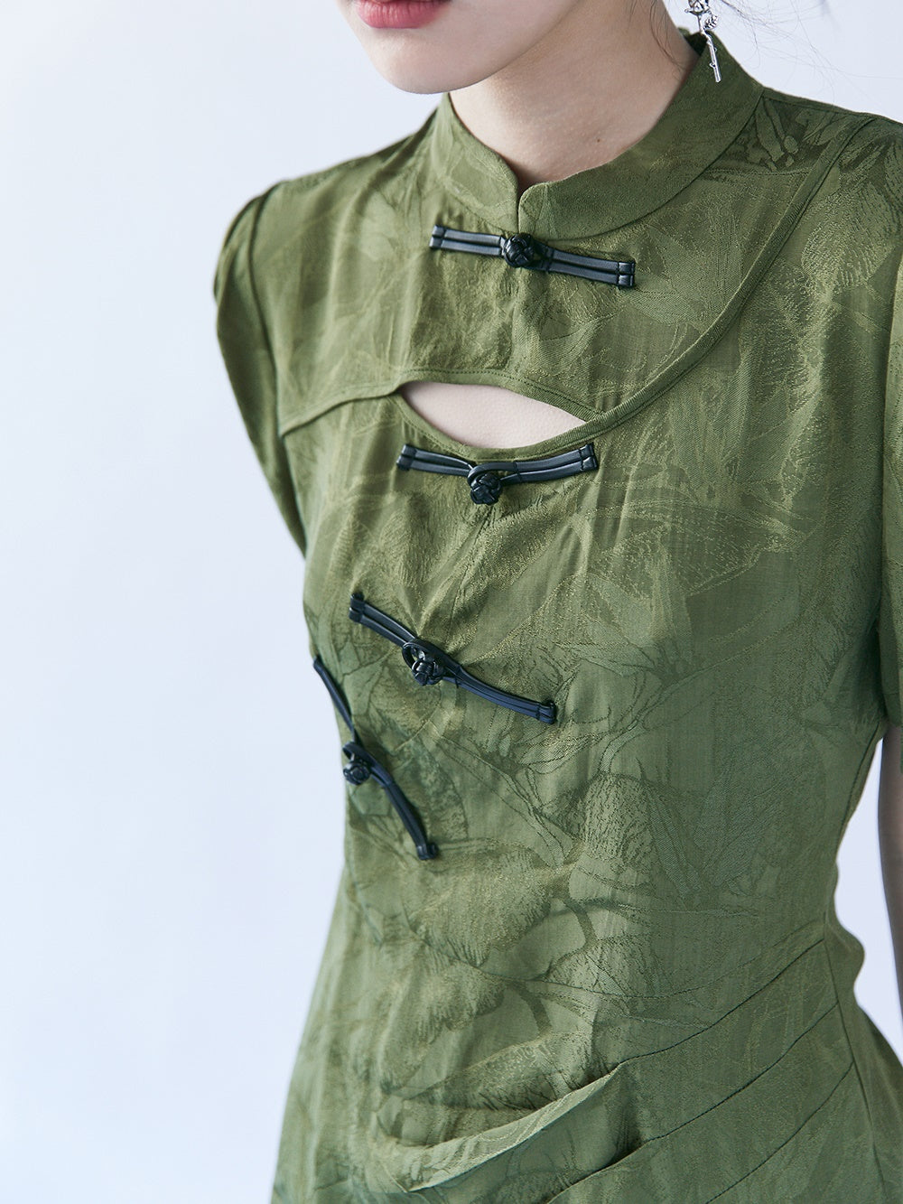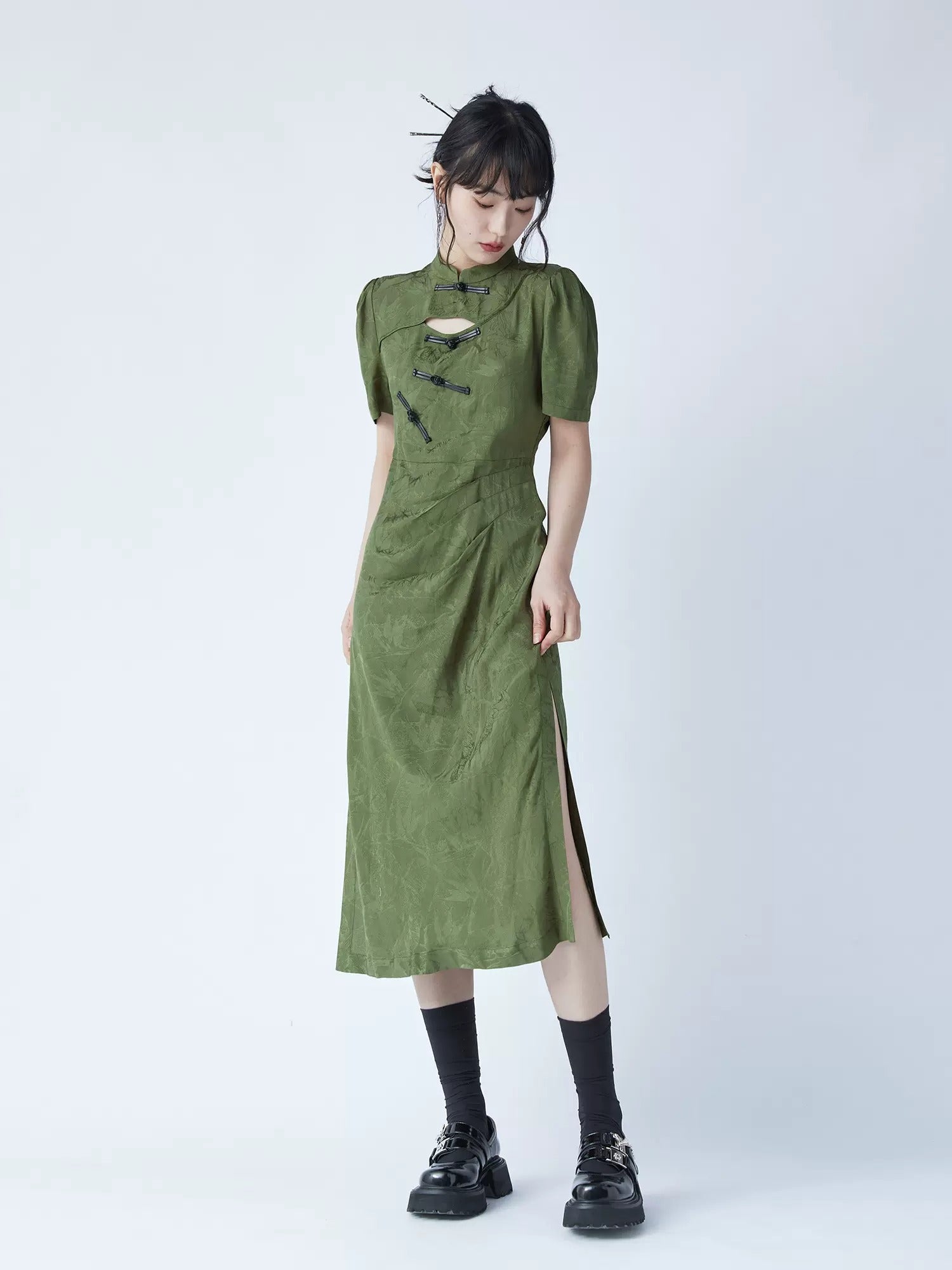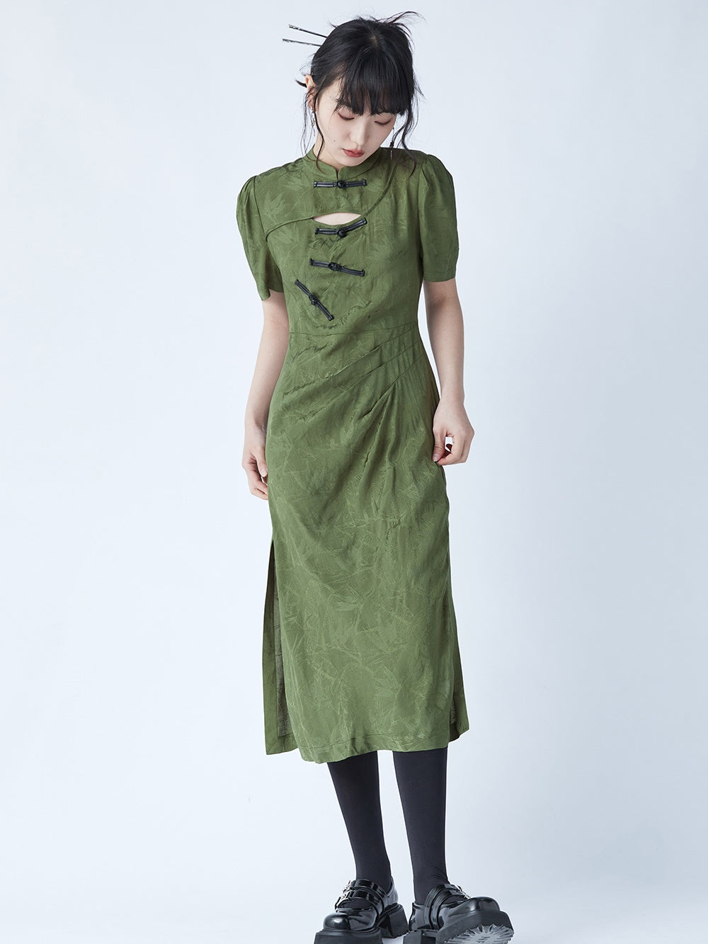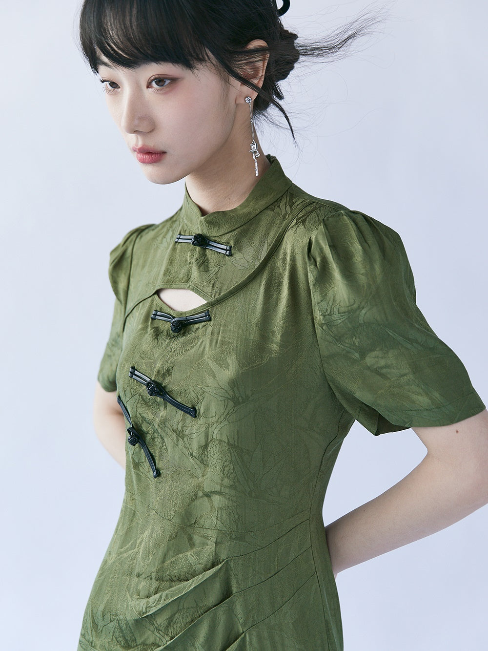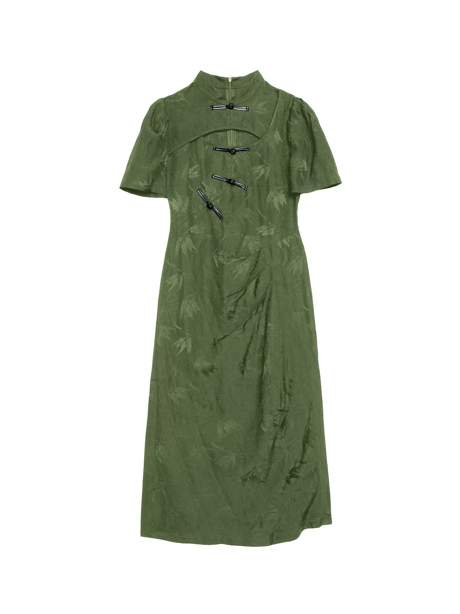 Chinese Style Bamboo Leaf Hollow Buckle A-line Dress