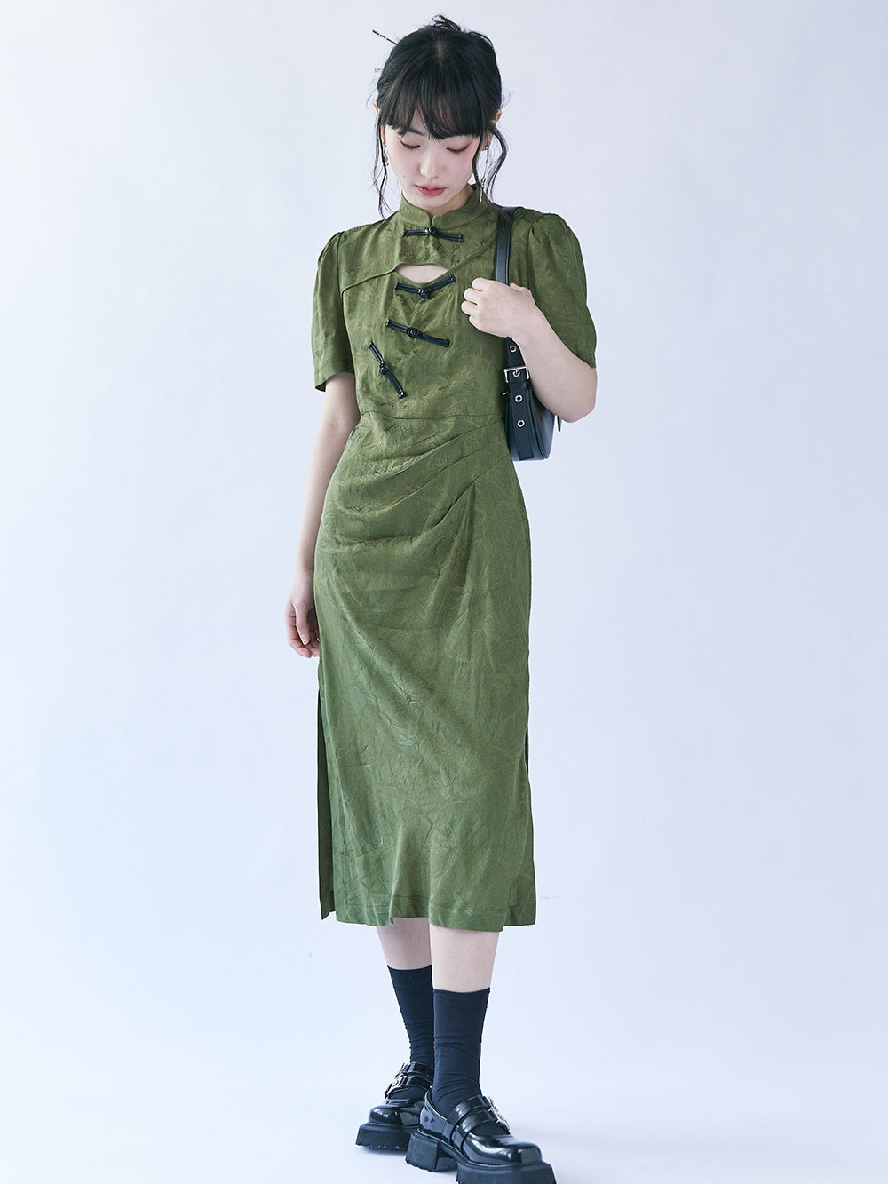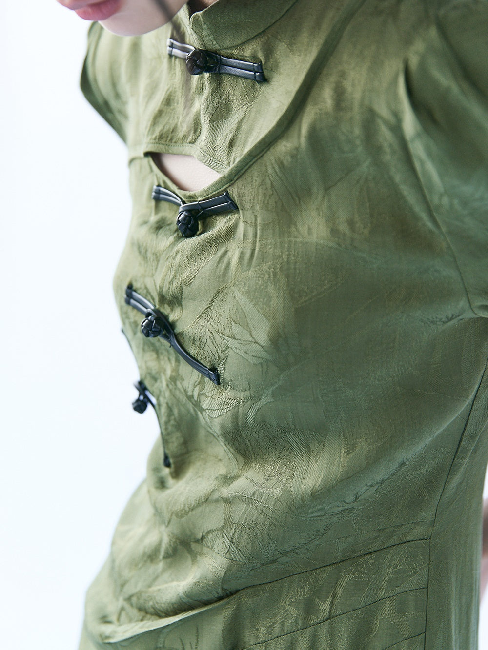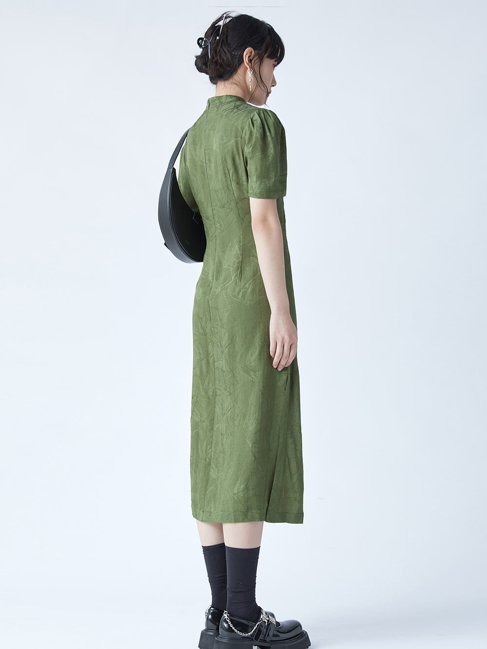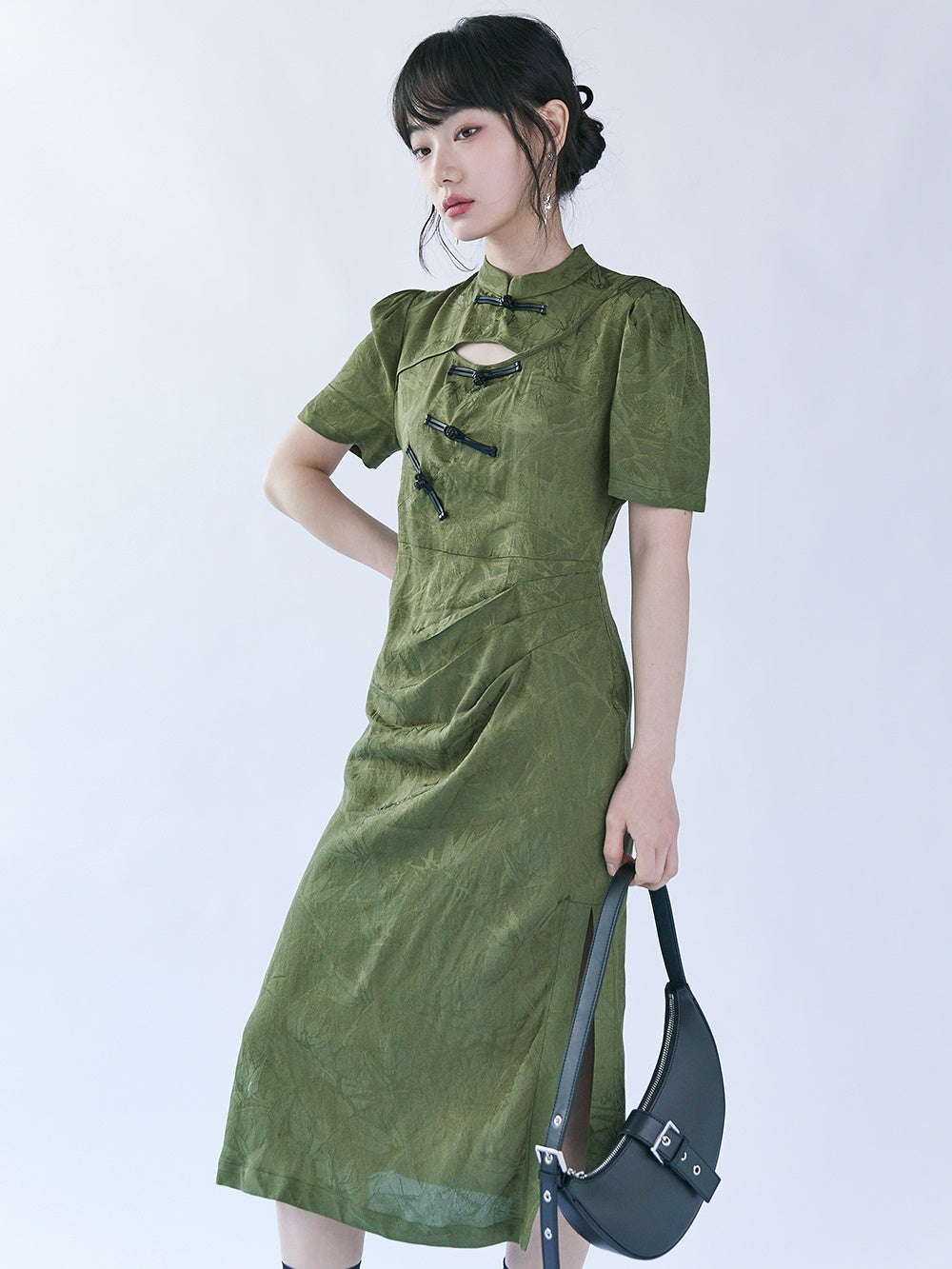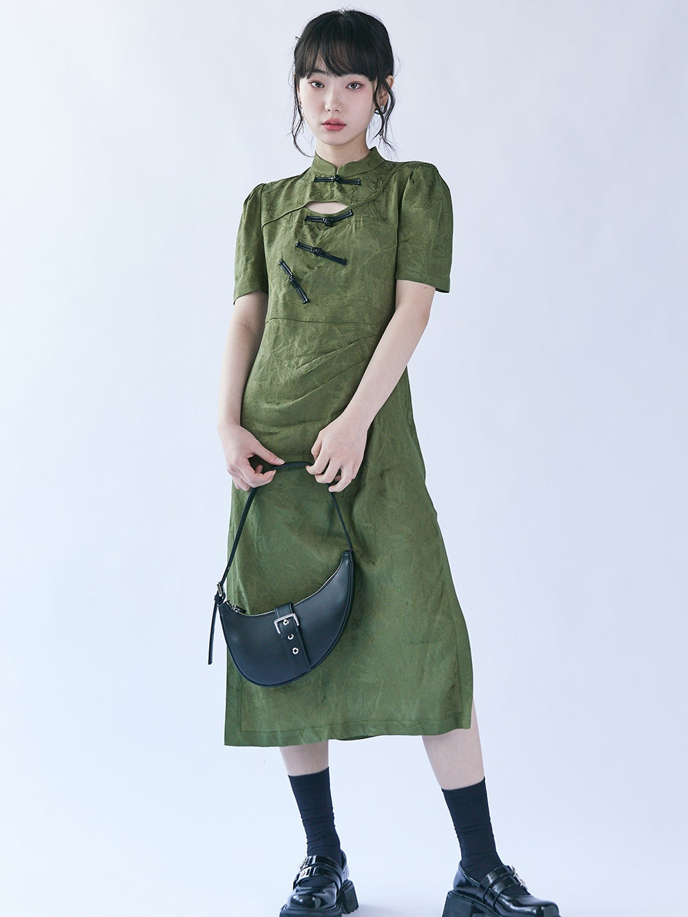 Chinese Style Bamboo Leaf Hollow Buckle A-line Dress