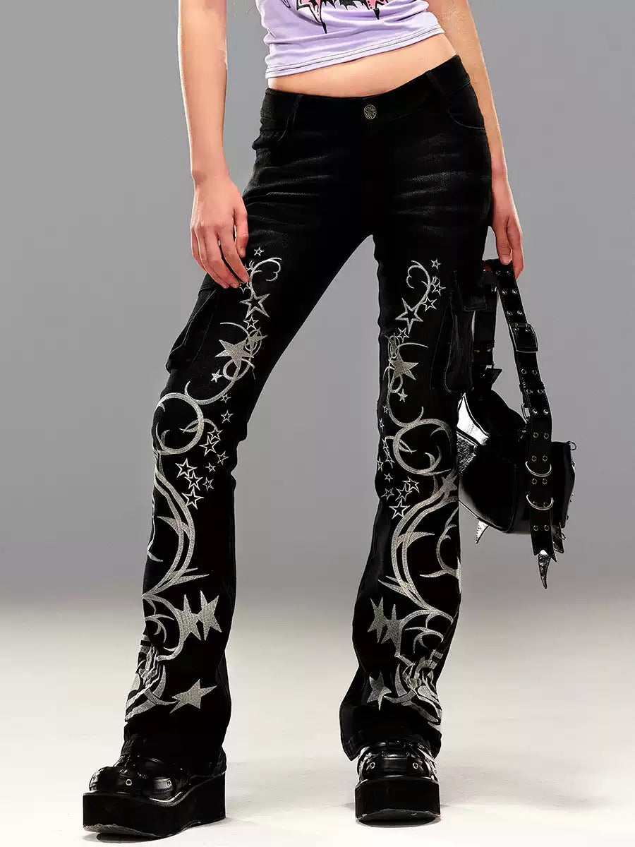Denim Star Embroidery Casual Pants