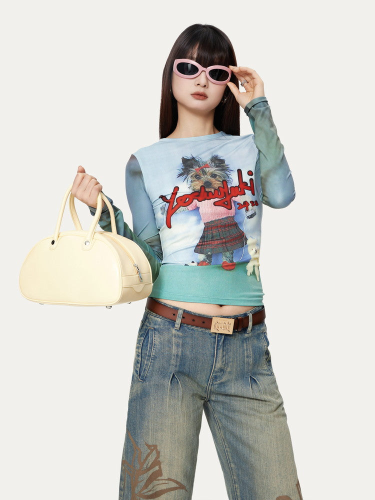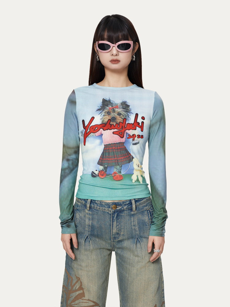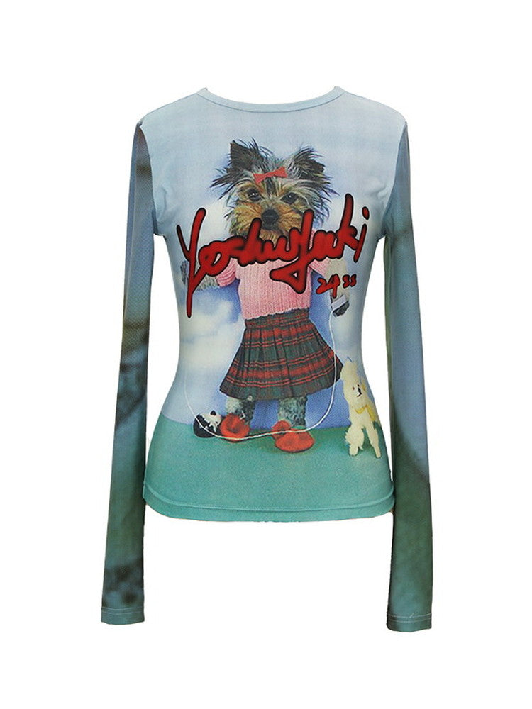 Dog Character Unique Nichi Slim Casual Long-T-Shirt