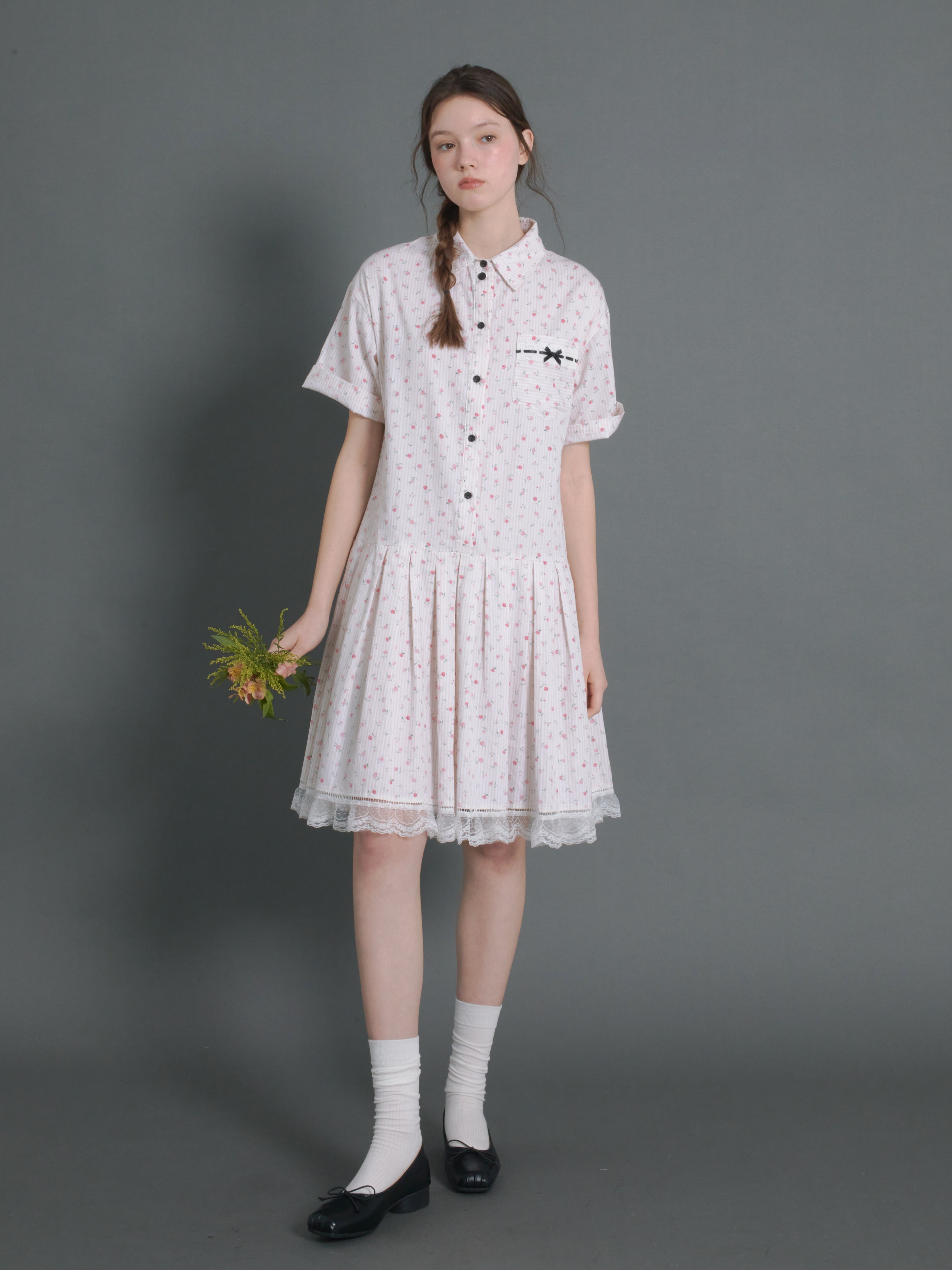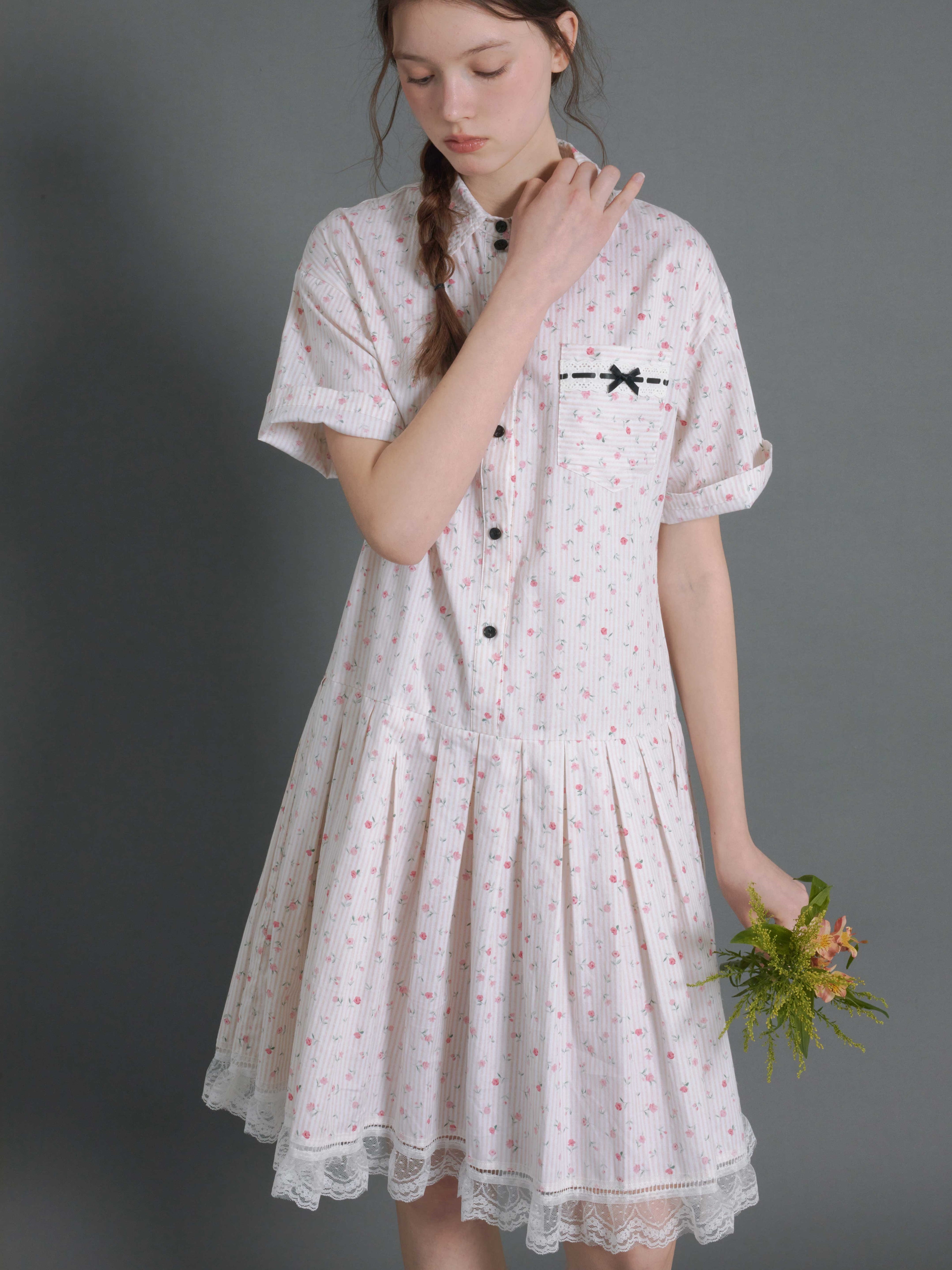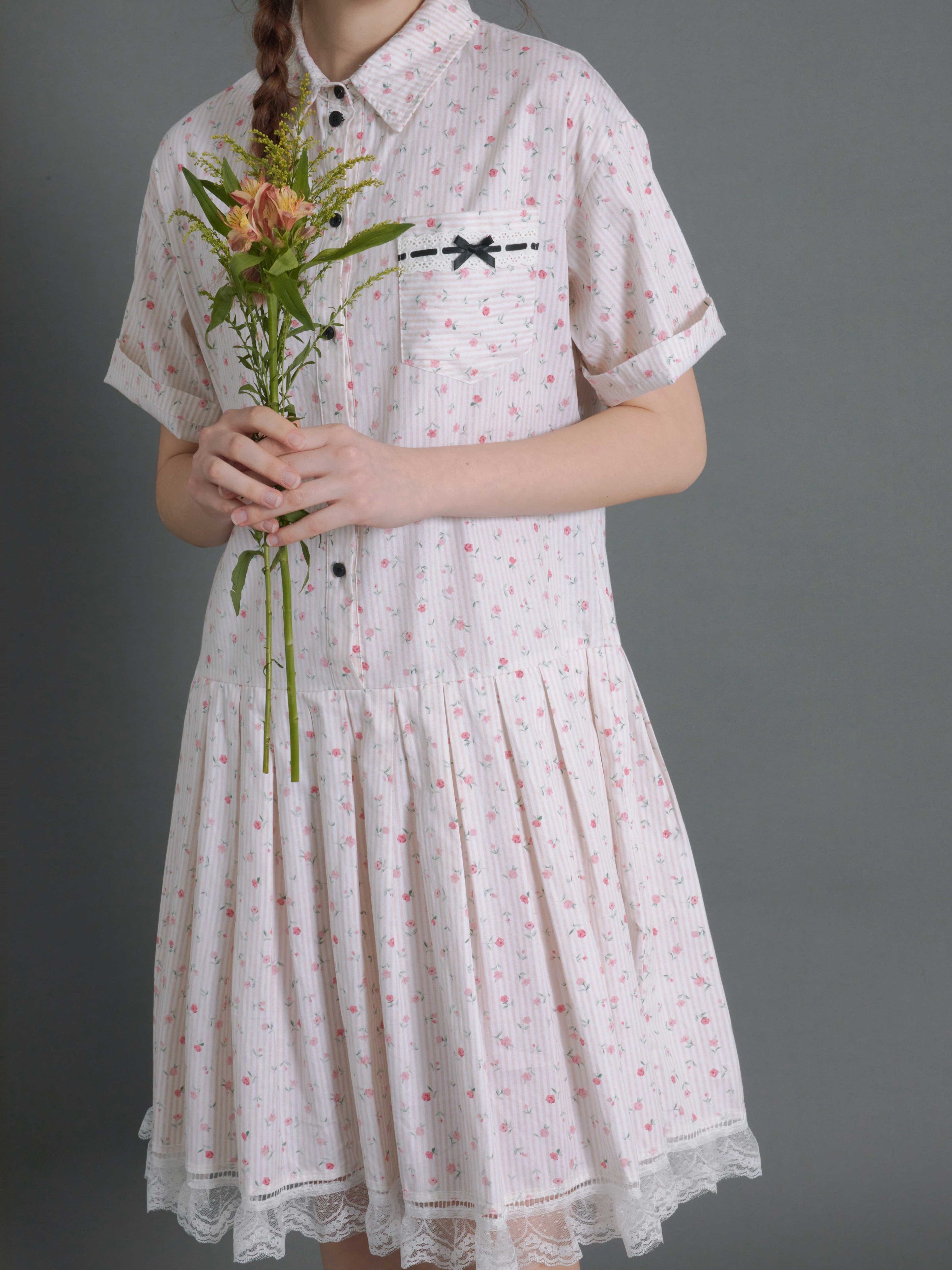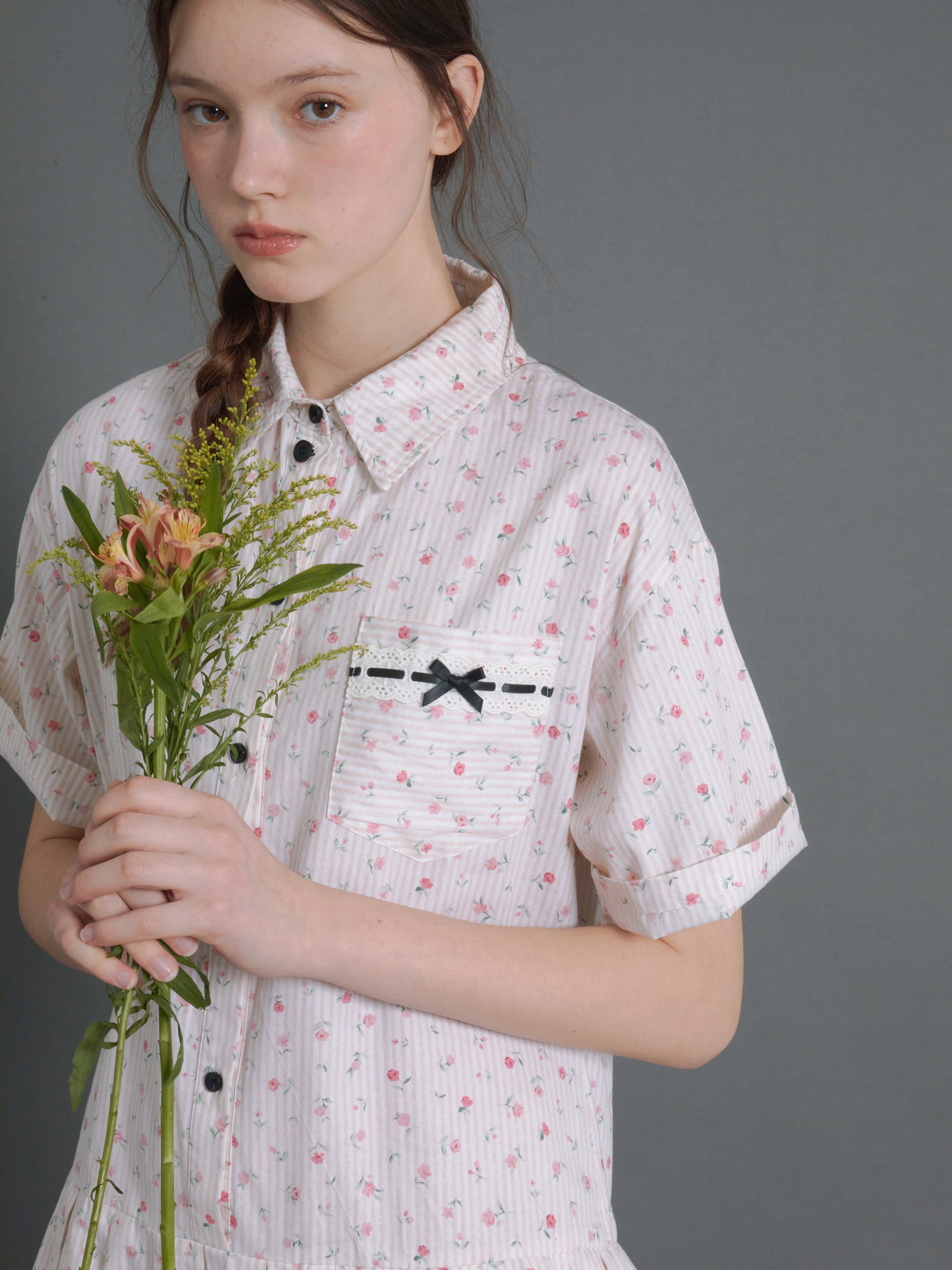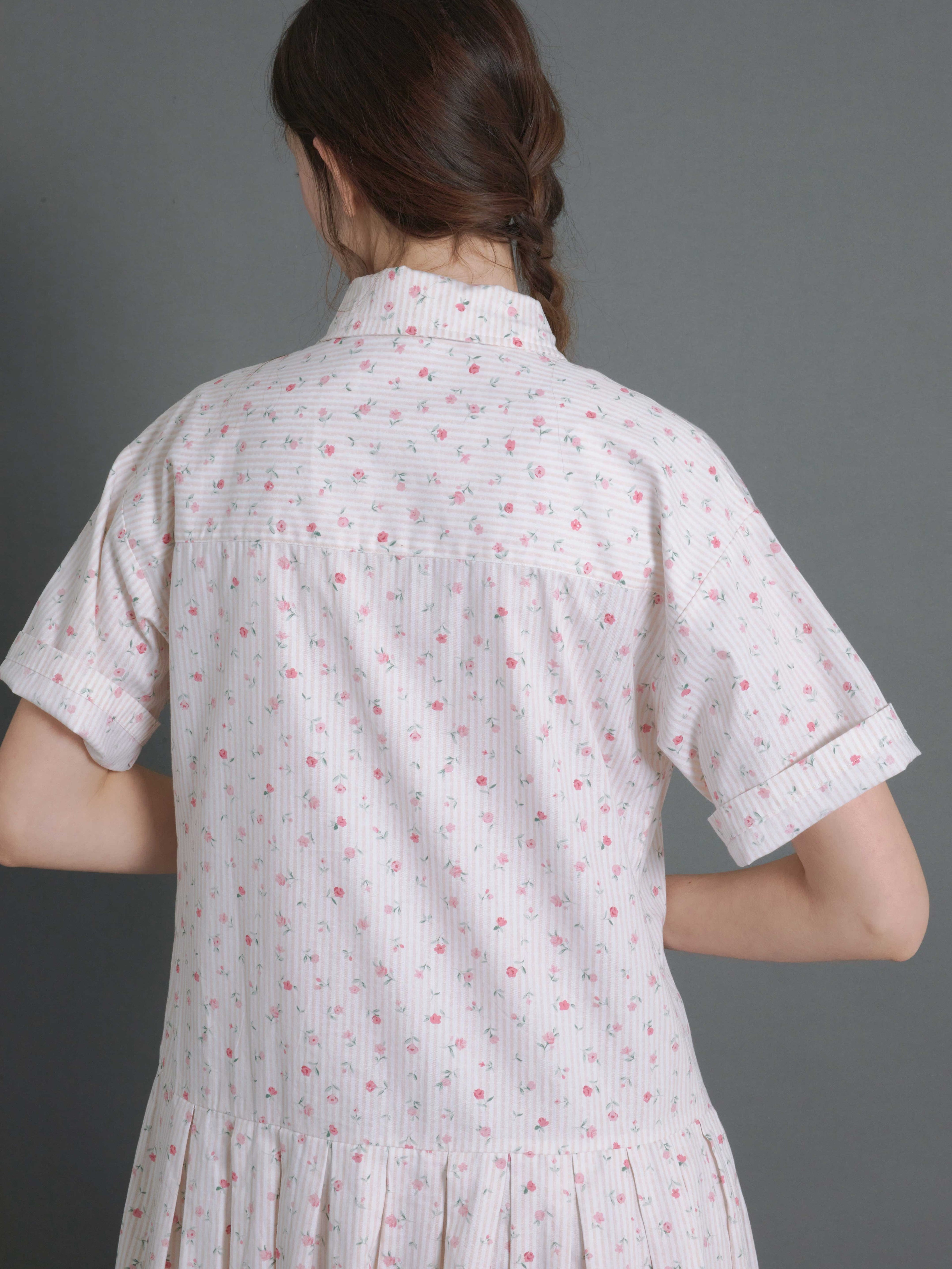 Floral Vertical Stripes Low-Waist Shirt One-piece
