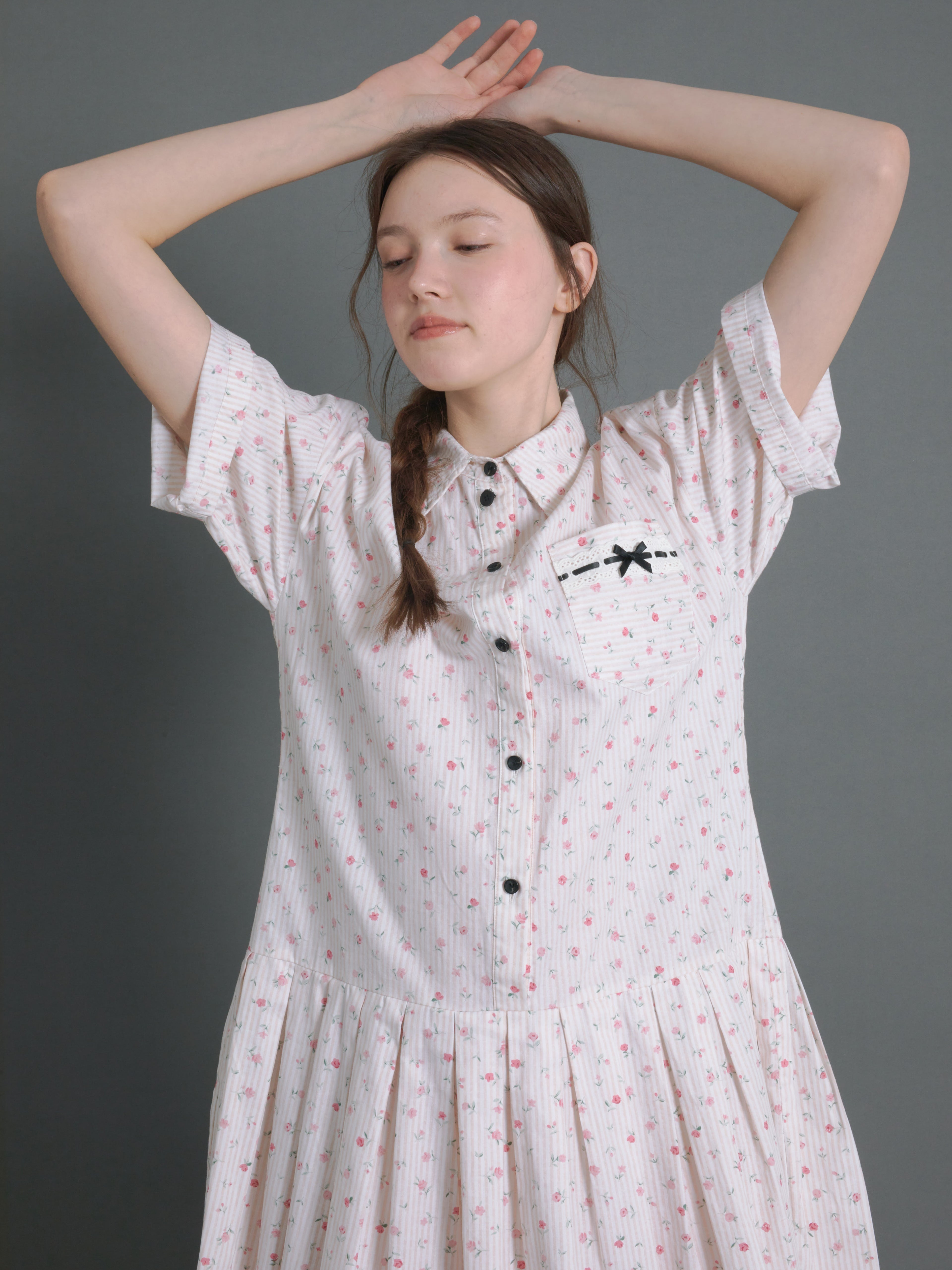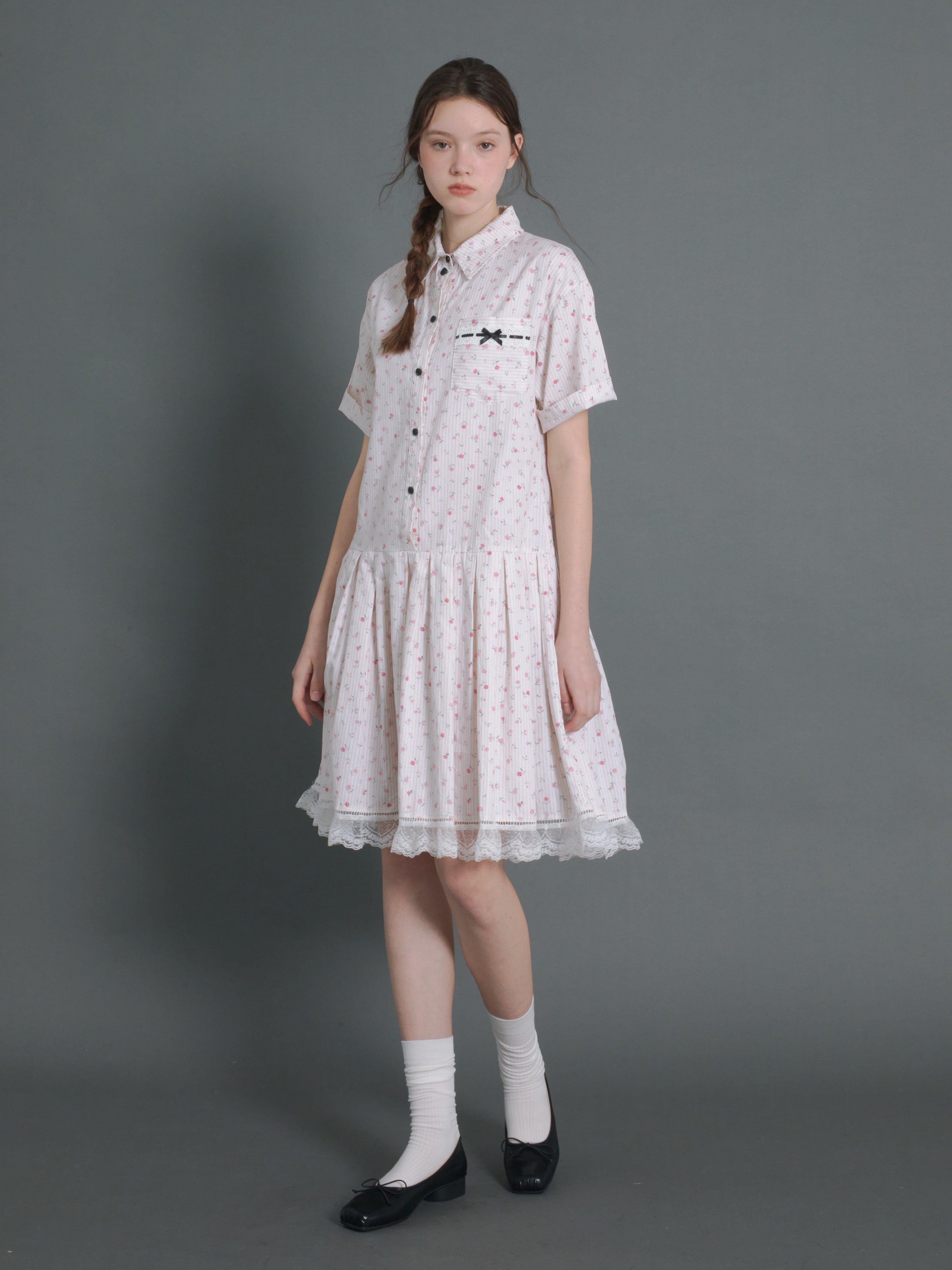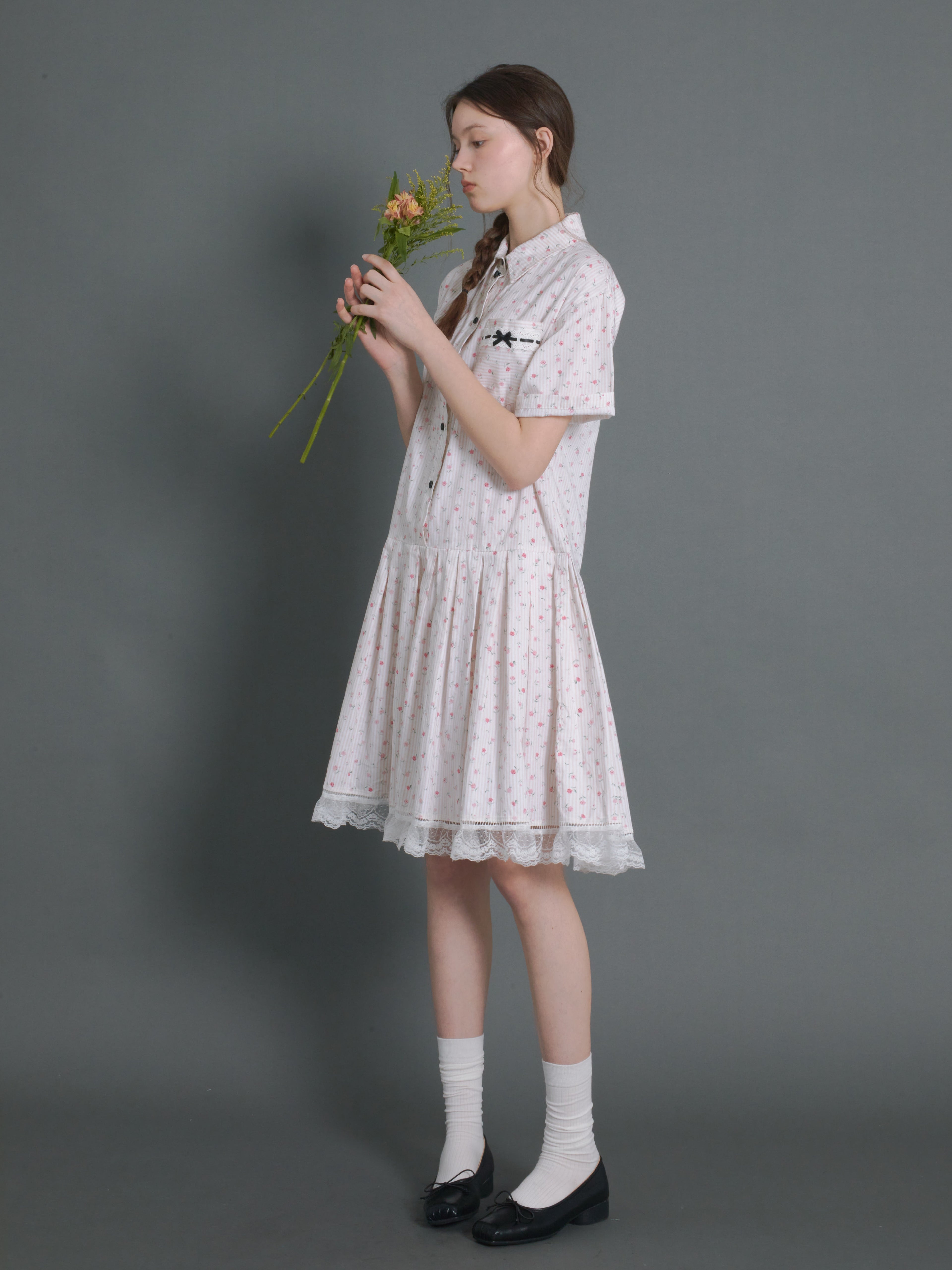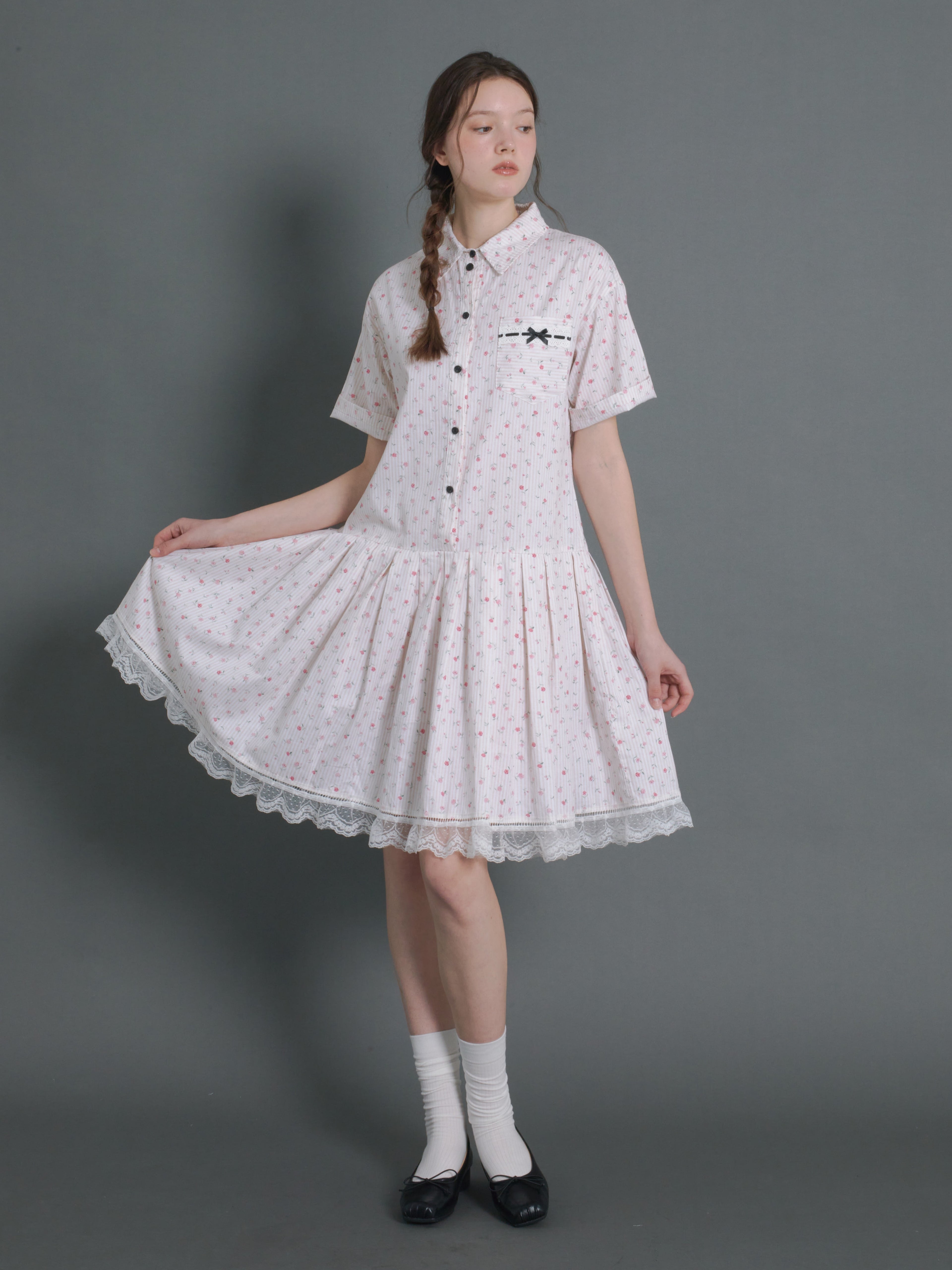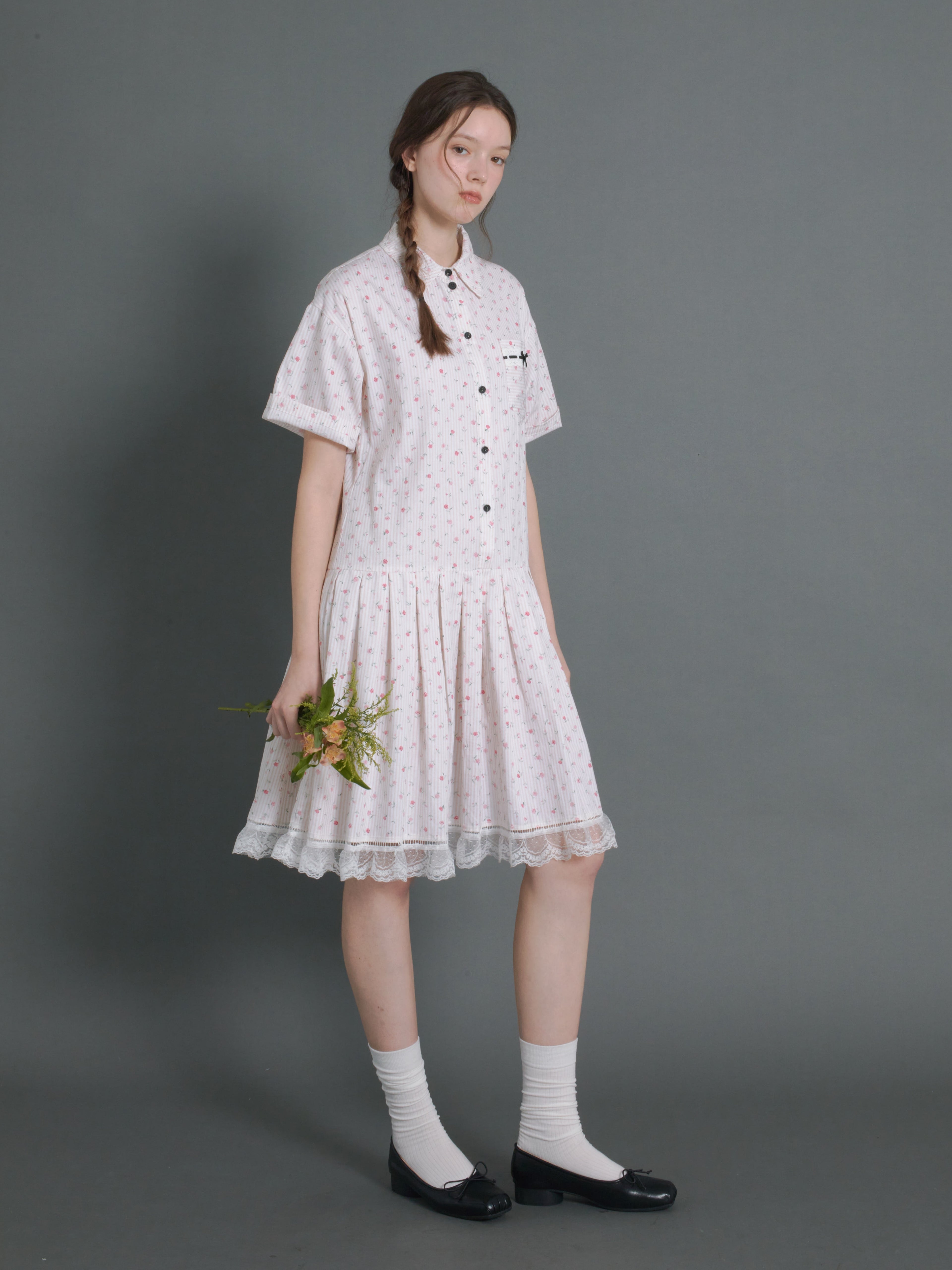 Floral Vertical Stripes Low-Waist Shirt One-piece