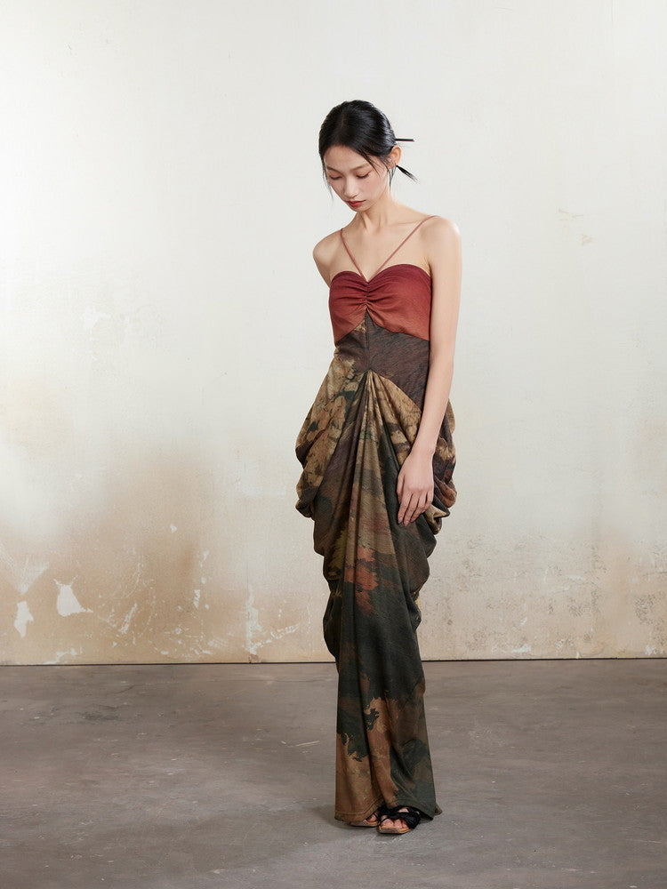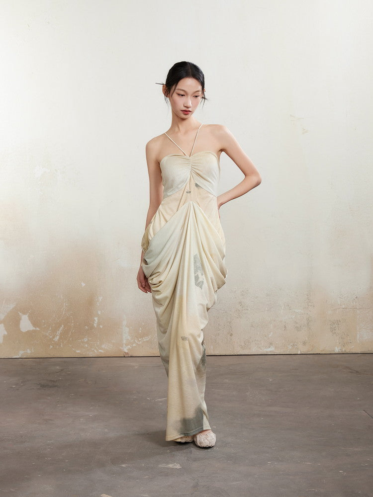 Halter-Neck Drape Elegant Back-Open Dress