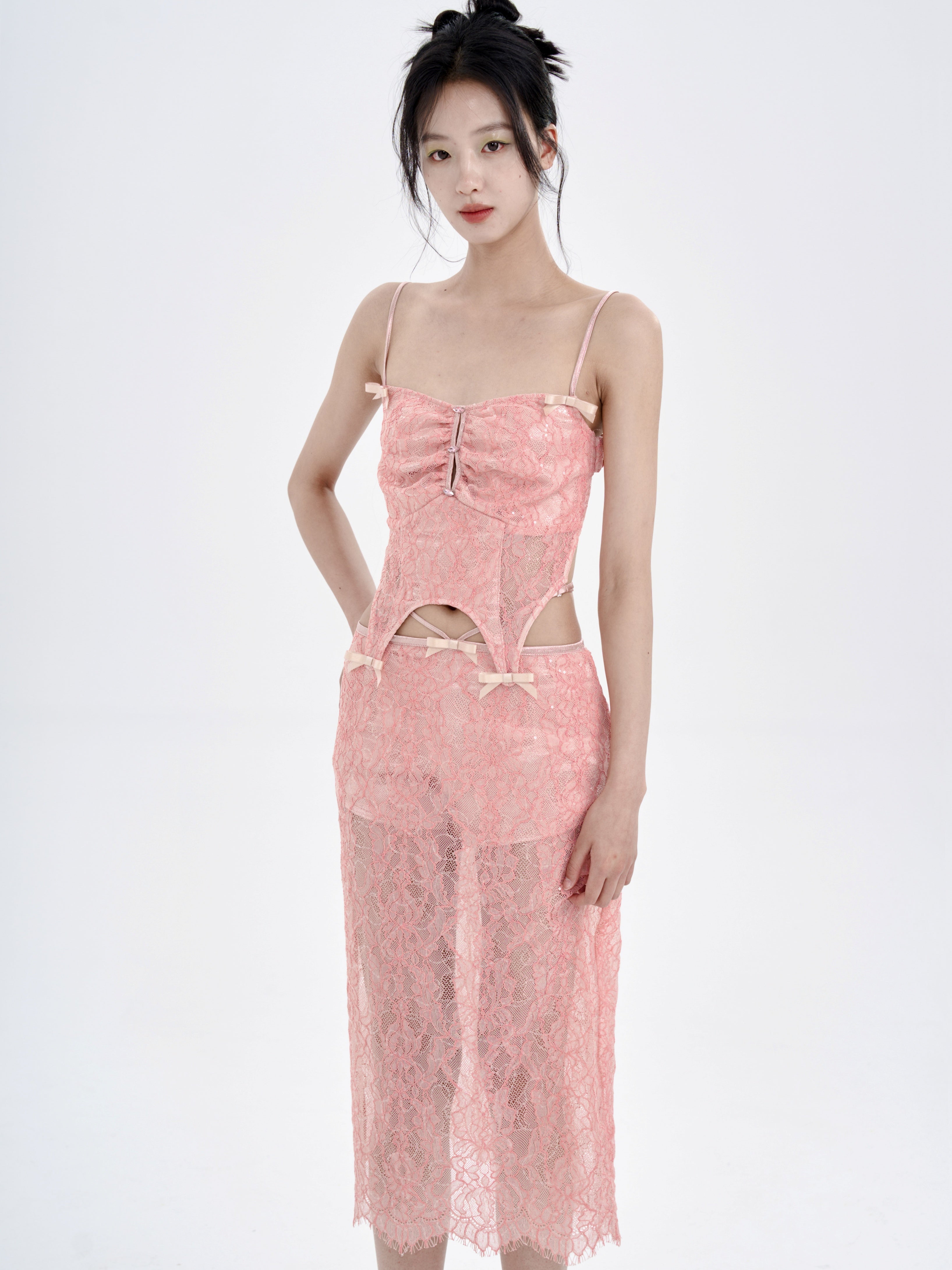 Lace Irregular Hem Camisole & Low Waist Skirt