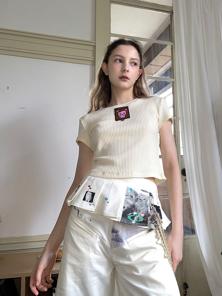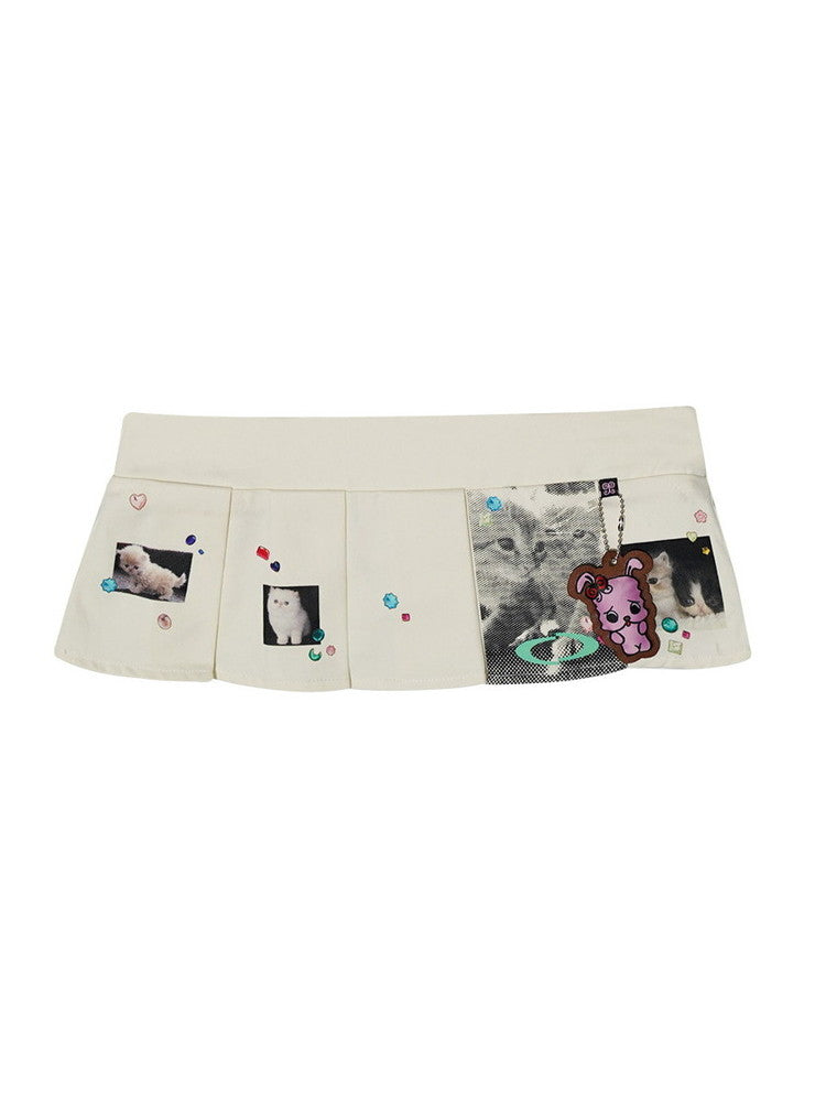 Layered Pleats Print Elastic-Waist Fancy Skirt
