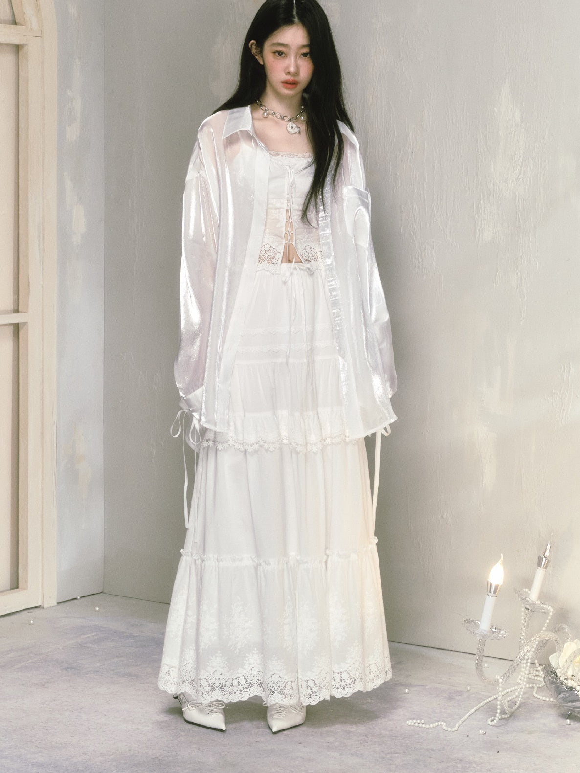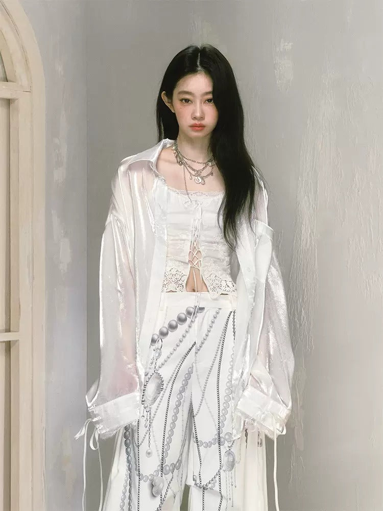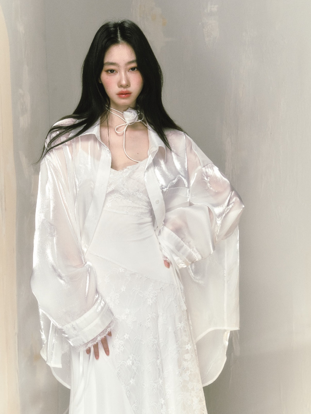 Micro-transparent Shiny Loose Long Sun Protection Shirt
