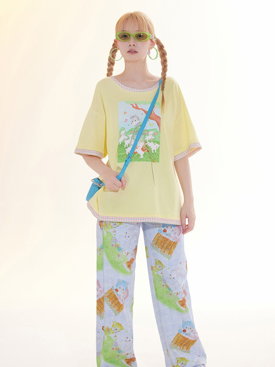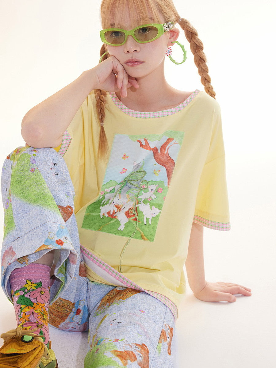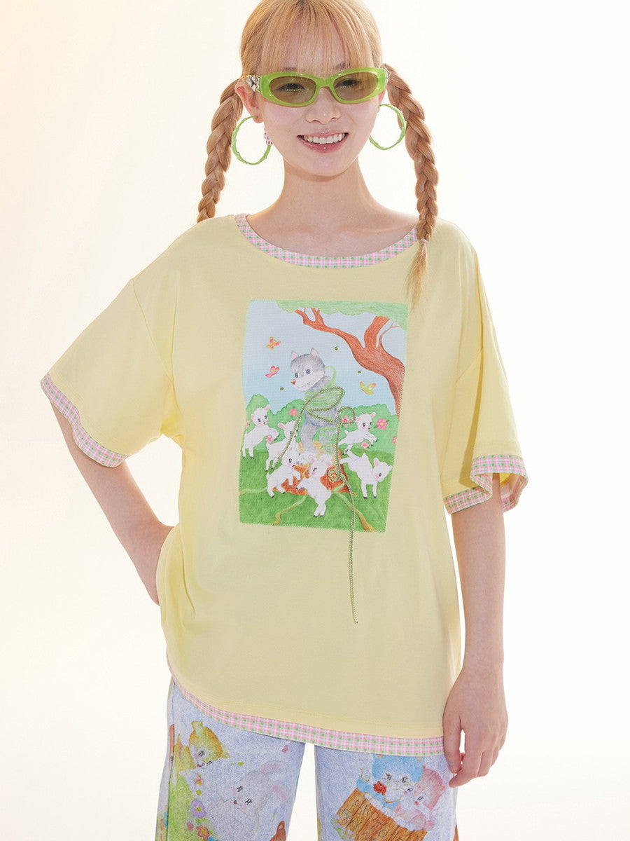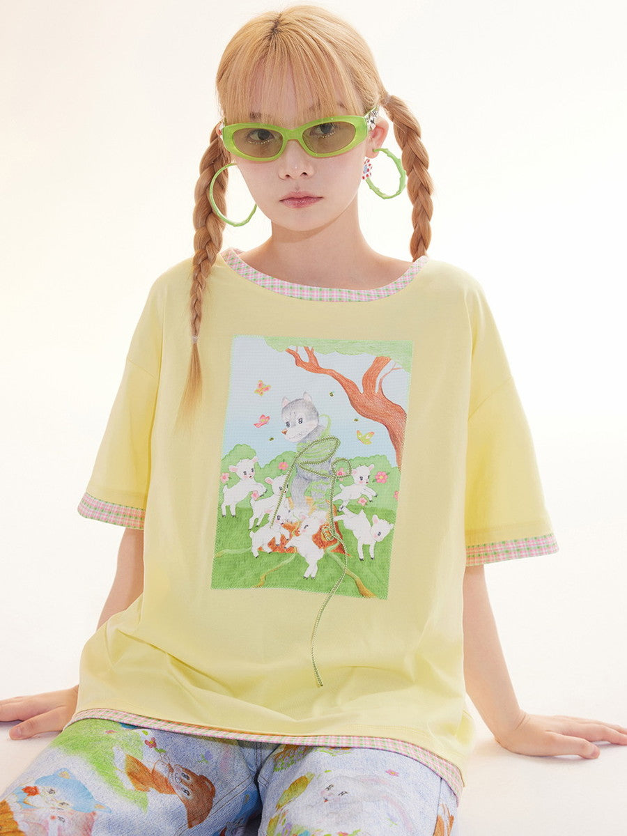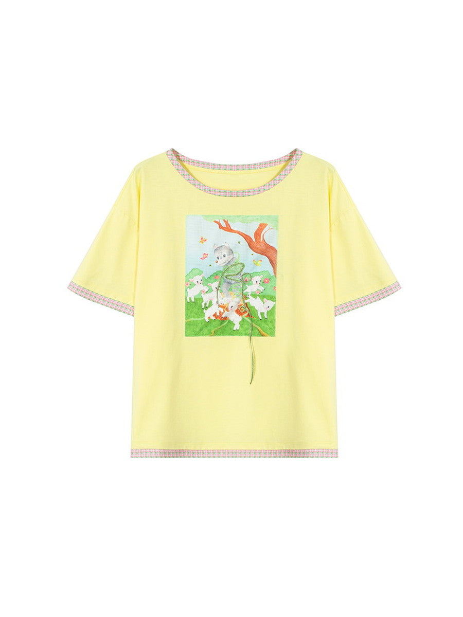 Print Casual Crew-Neck Animal Fancy T-Shirt