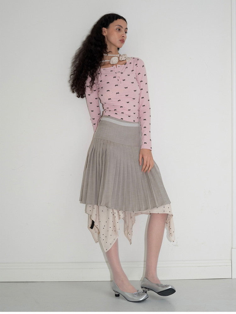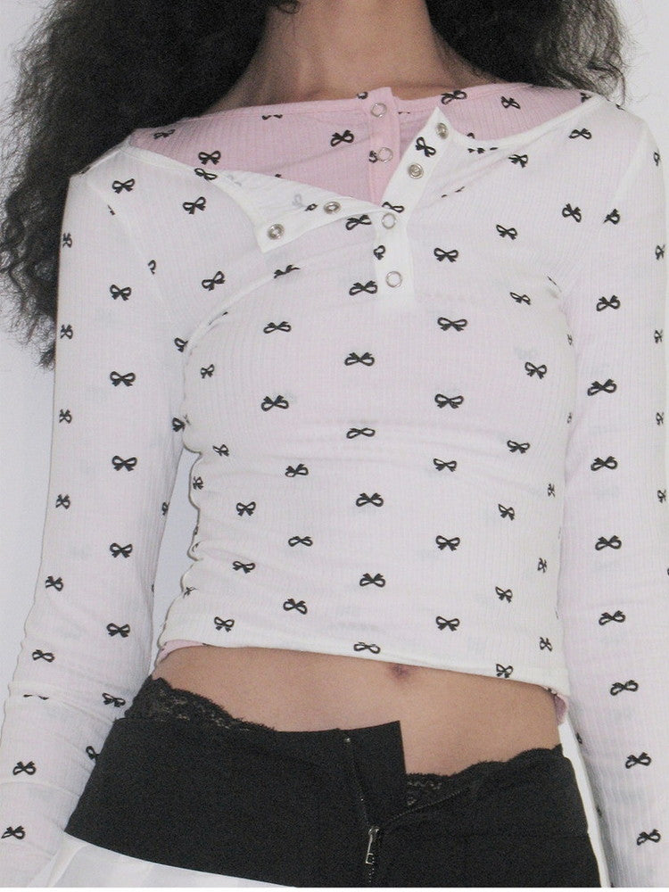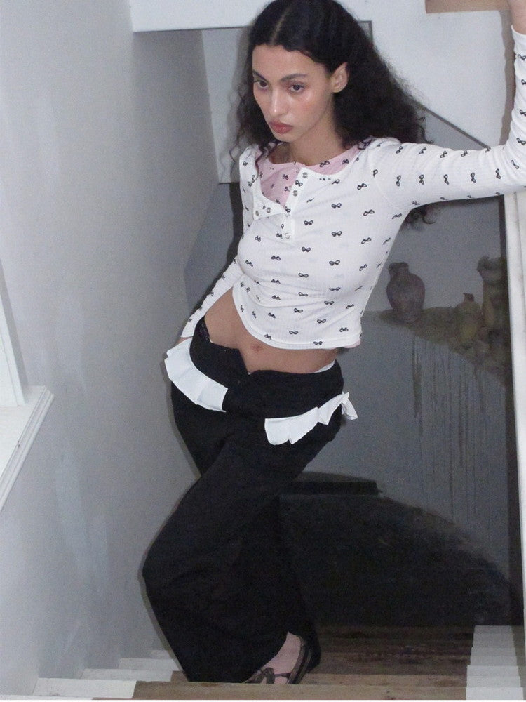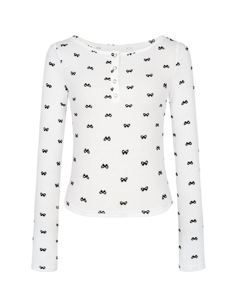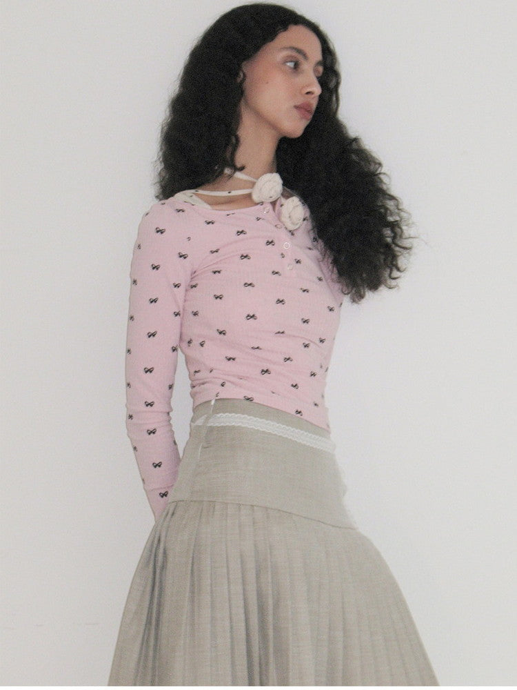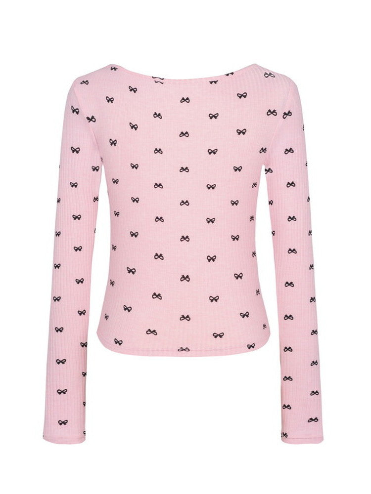 Ribbon Slim Thin Boat-Neck Cute Cutsew