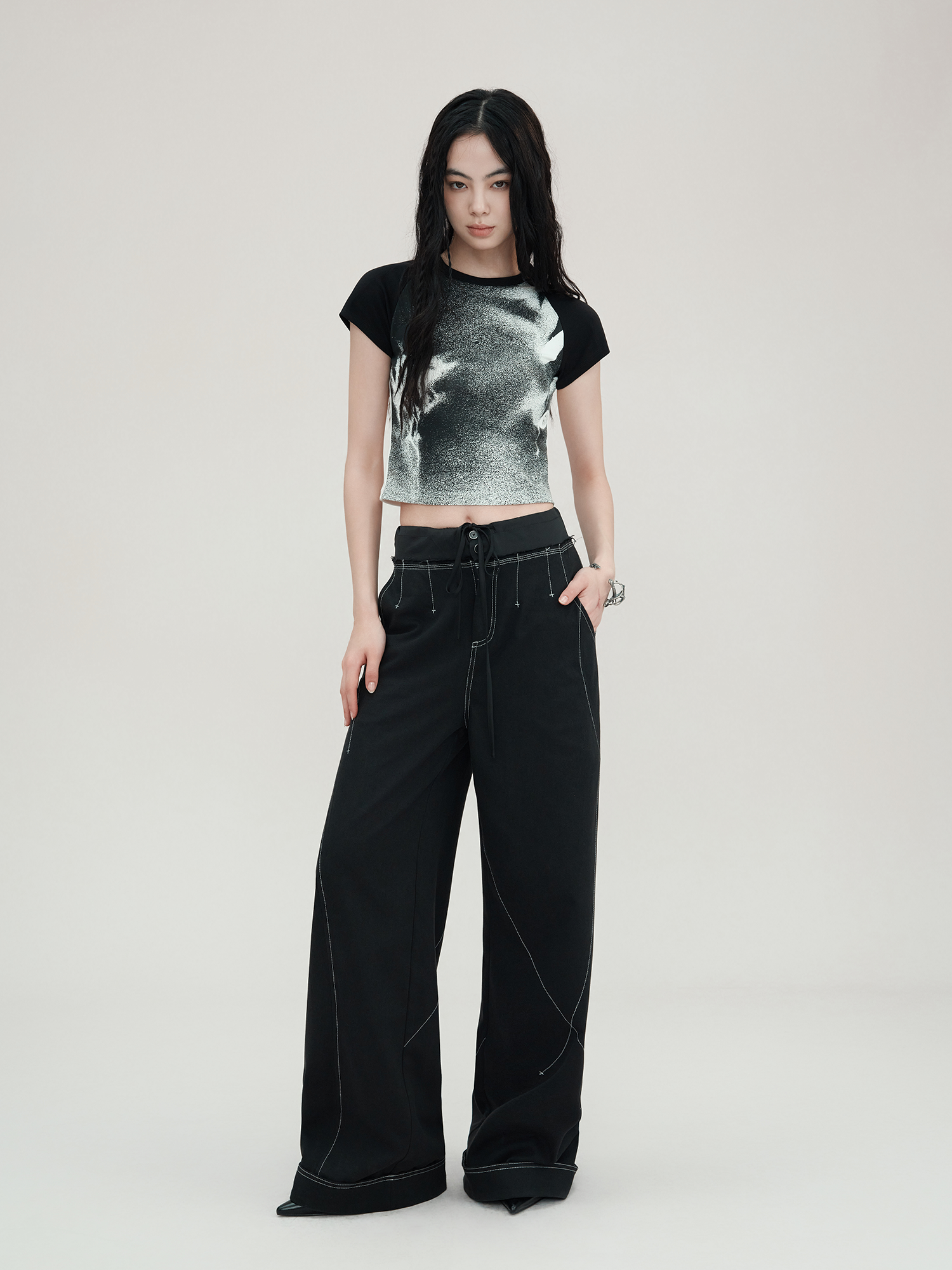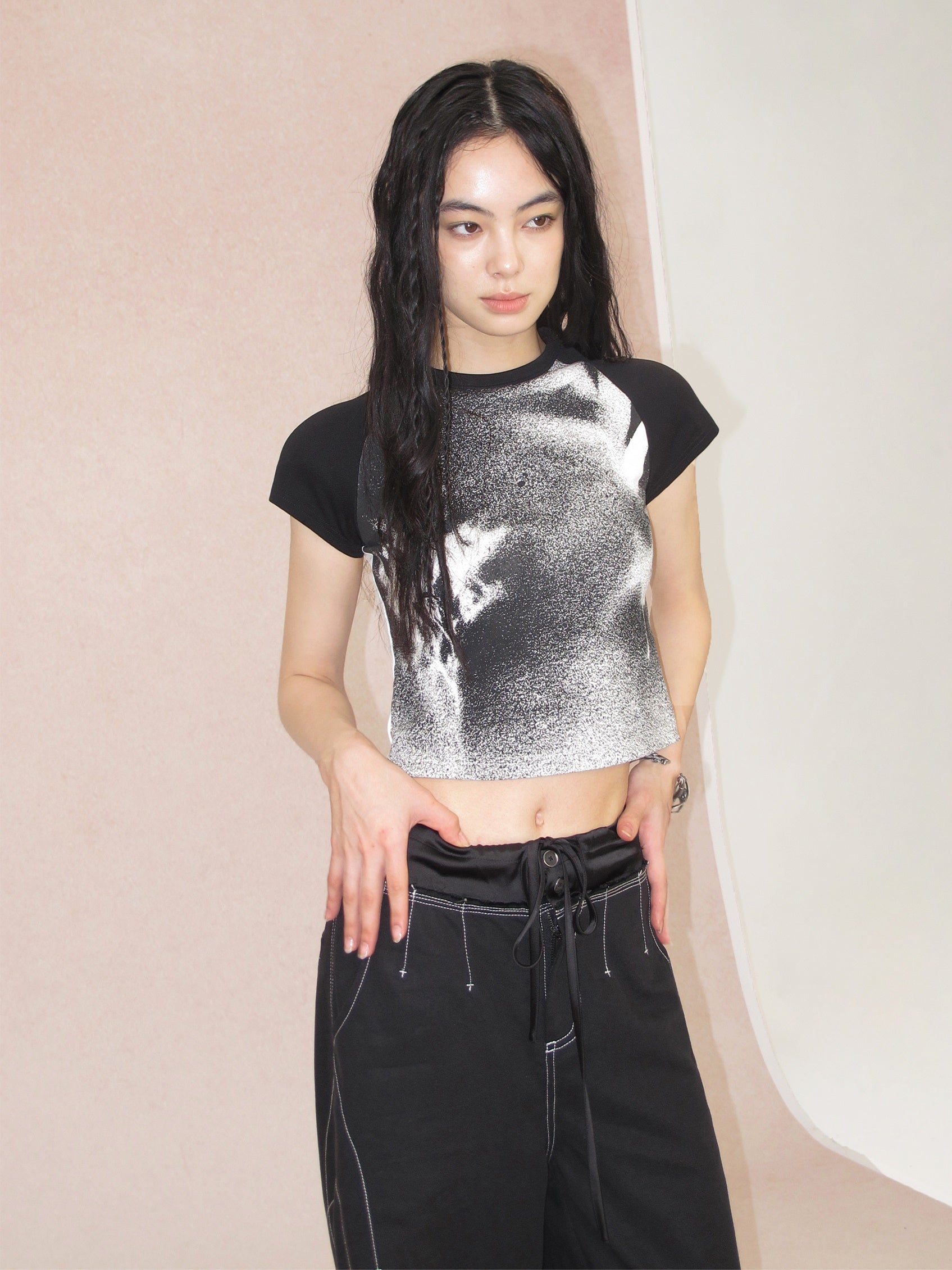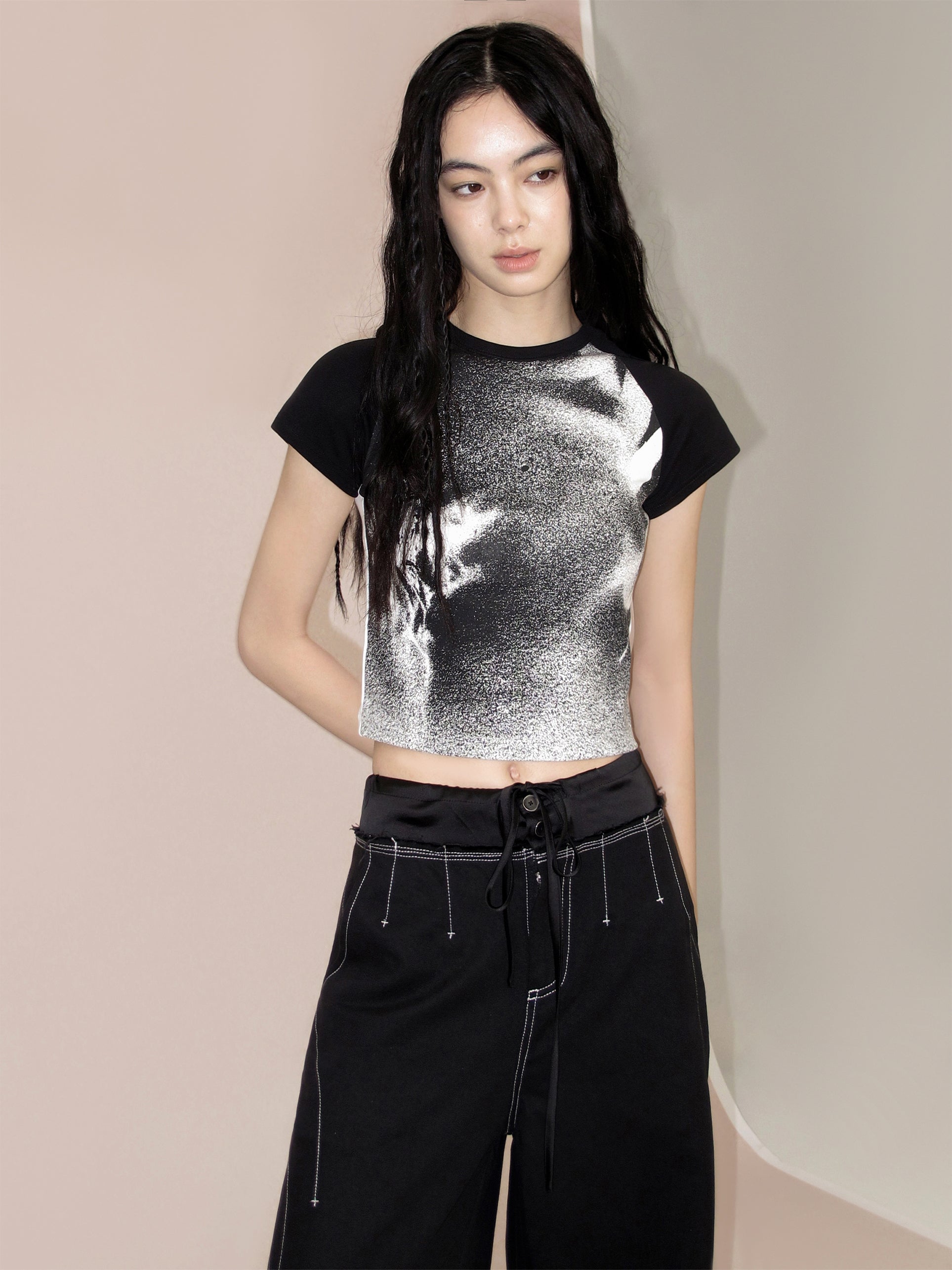 Shadow Flower Print Gradient T-shirt
