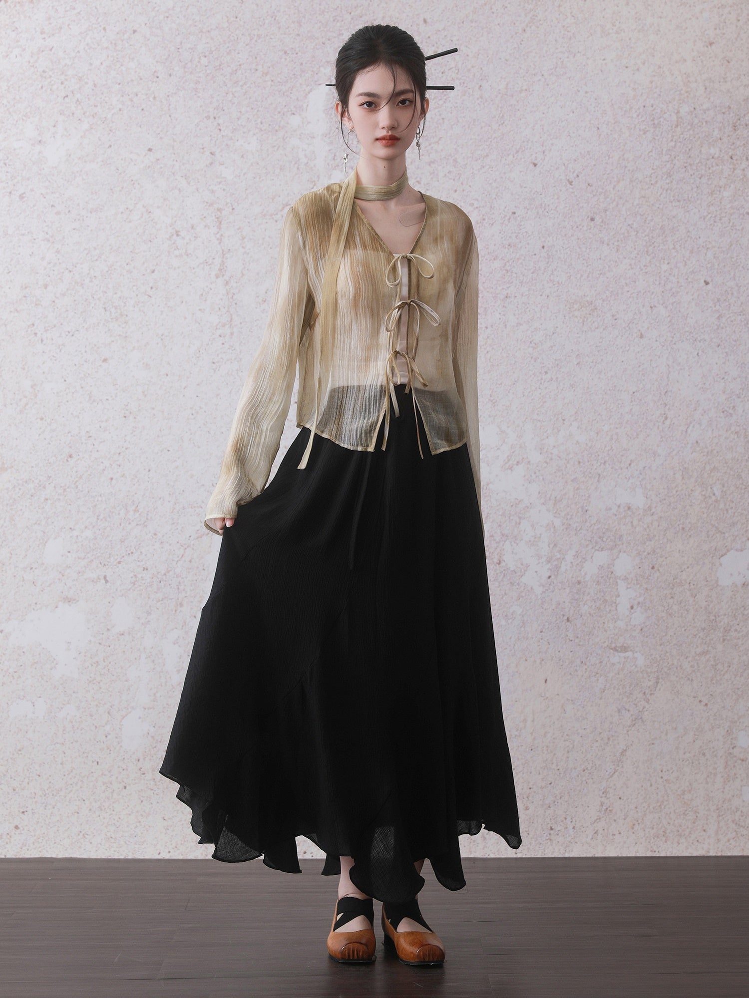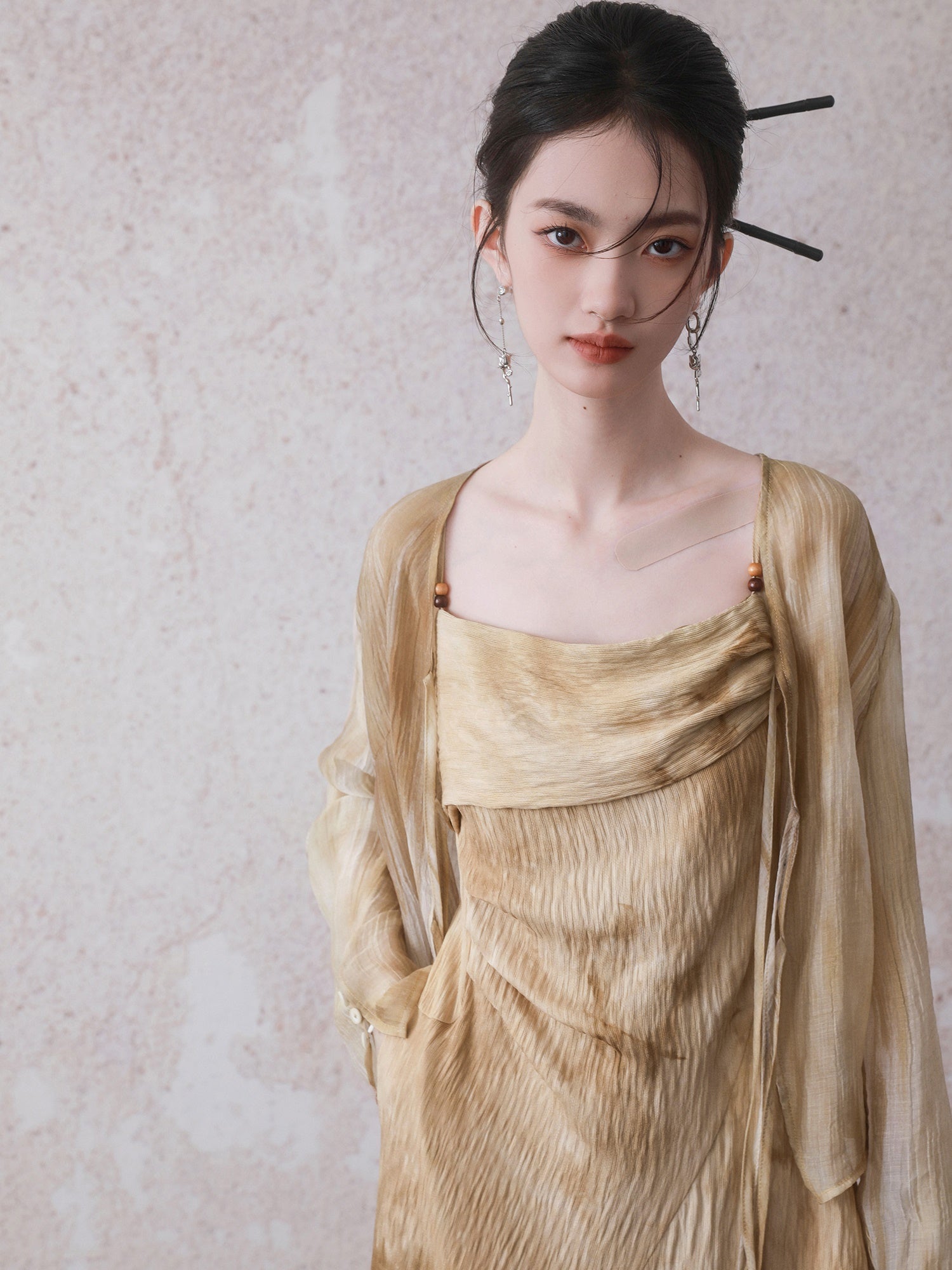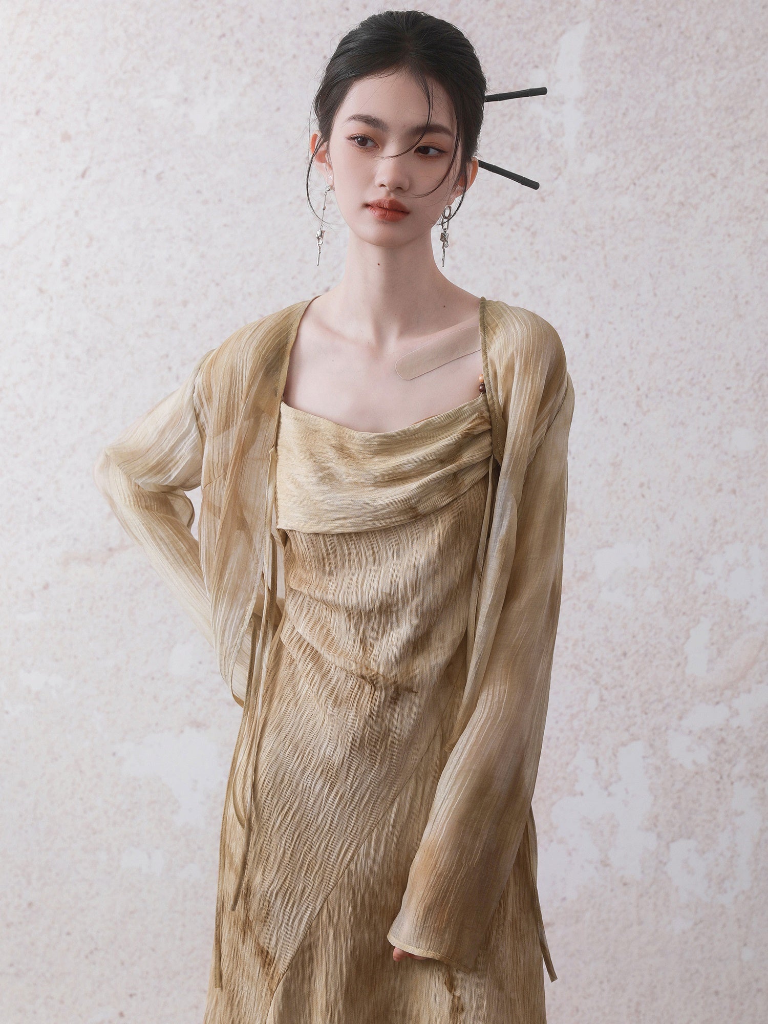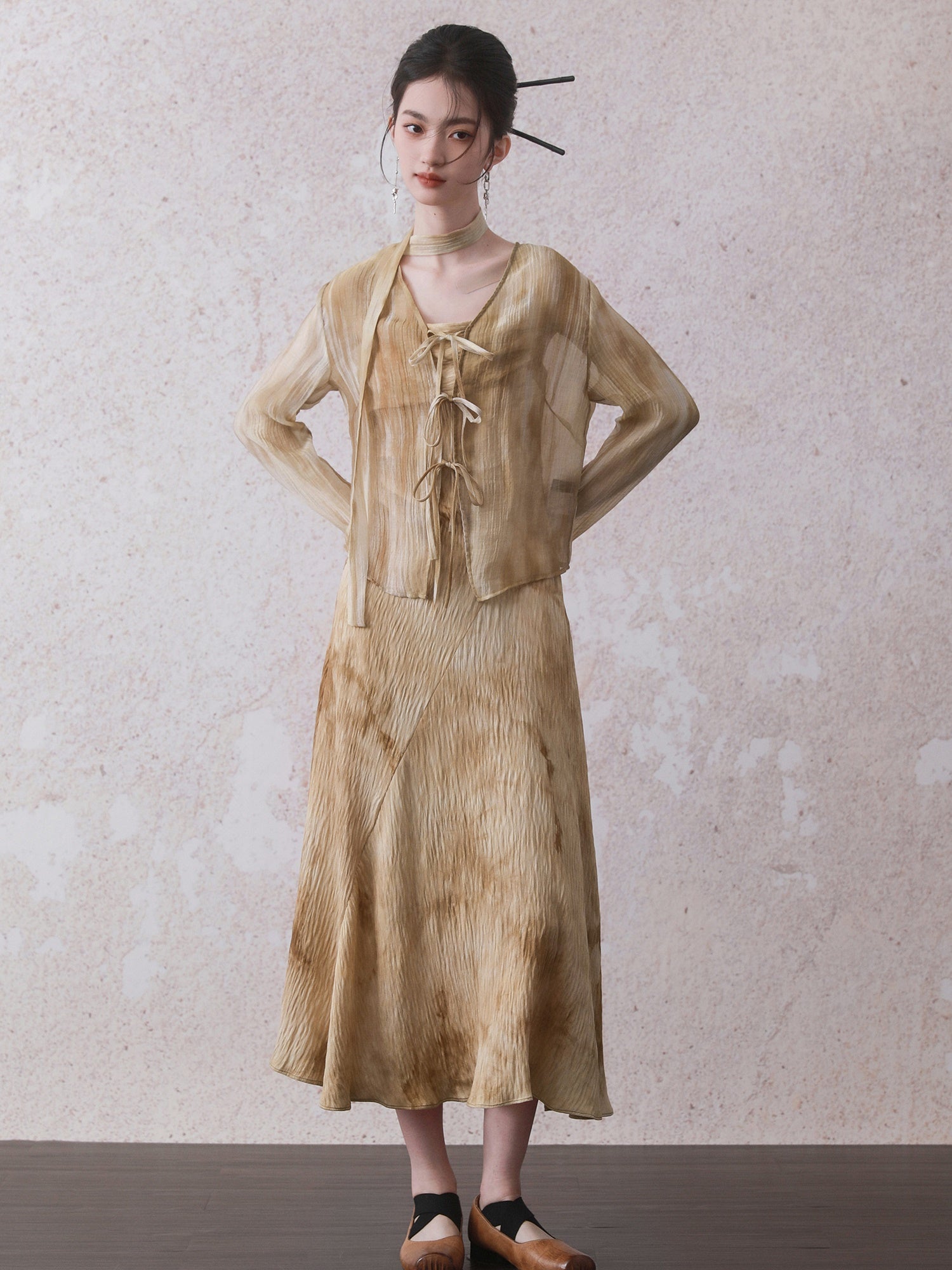 Tie-Dye Chinese Style Tulle Jacket & Slip Long Dress