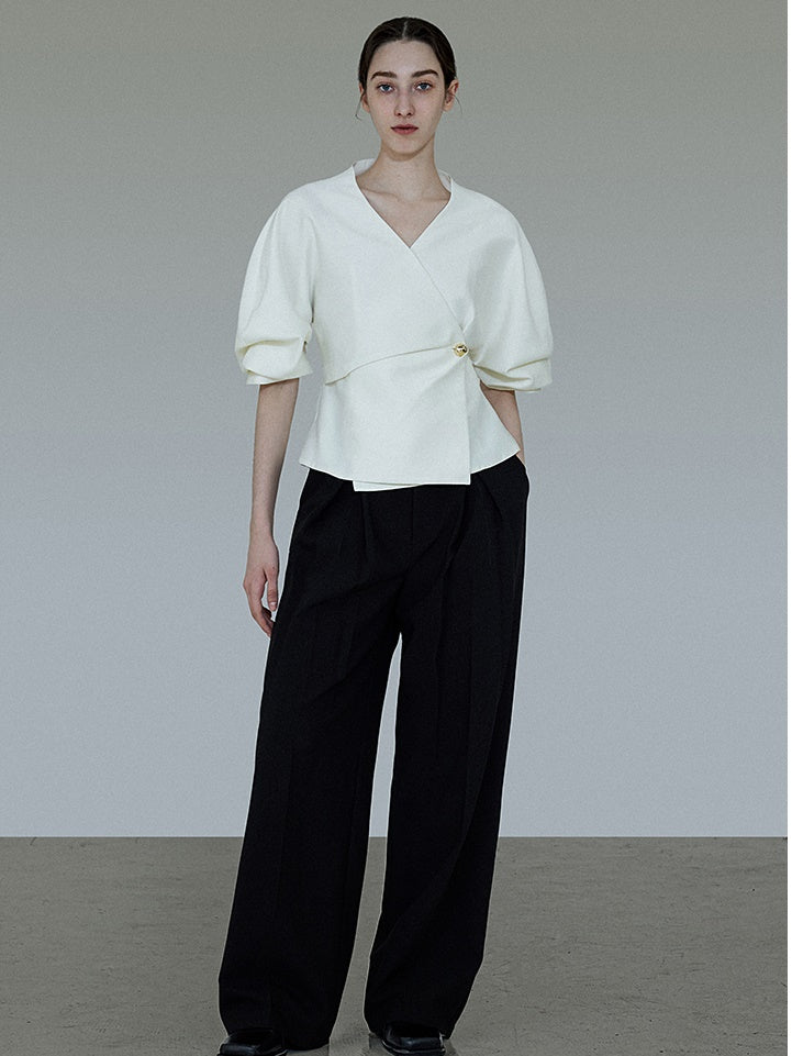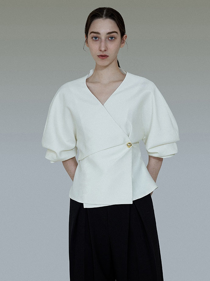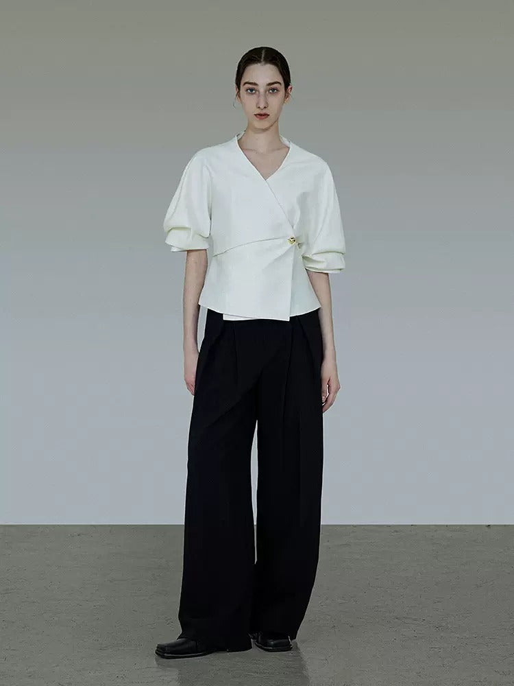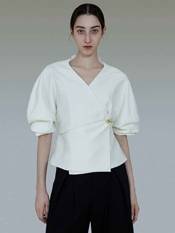 V-neck Five-point Sleeves Cachecoeur Shirt