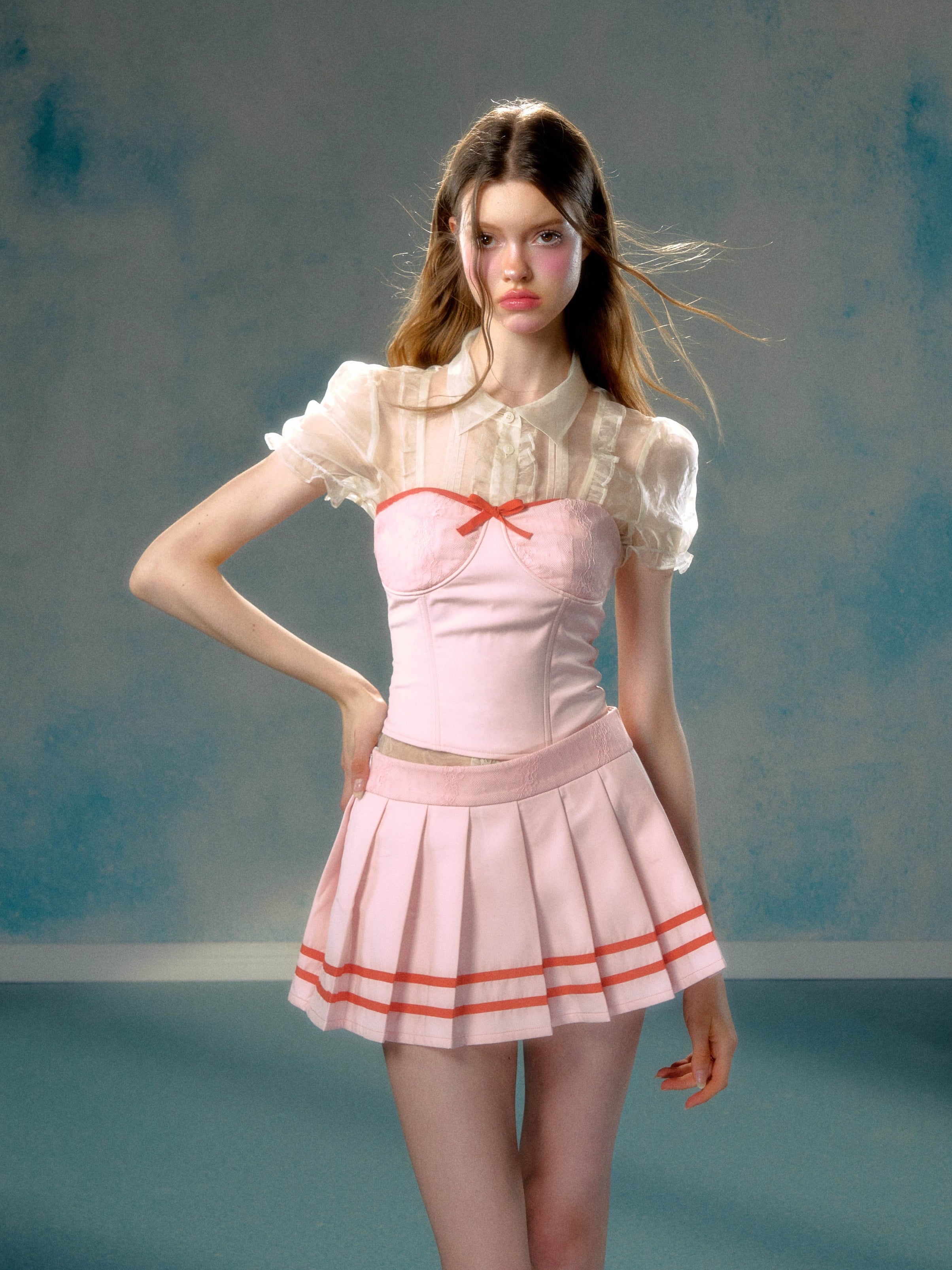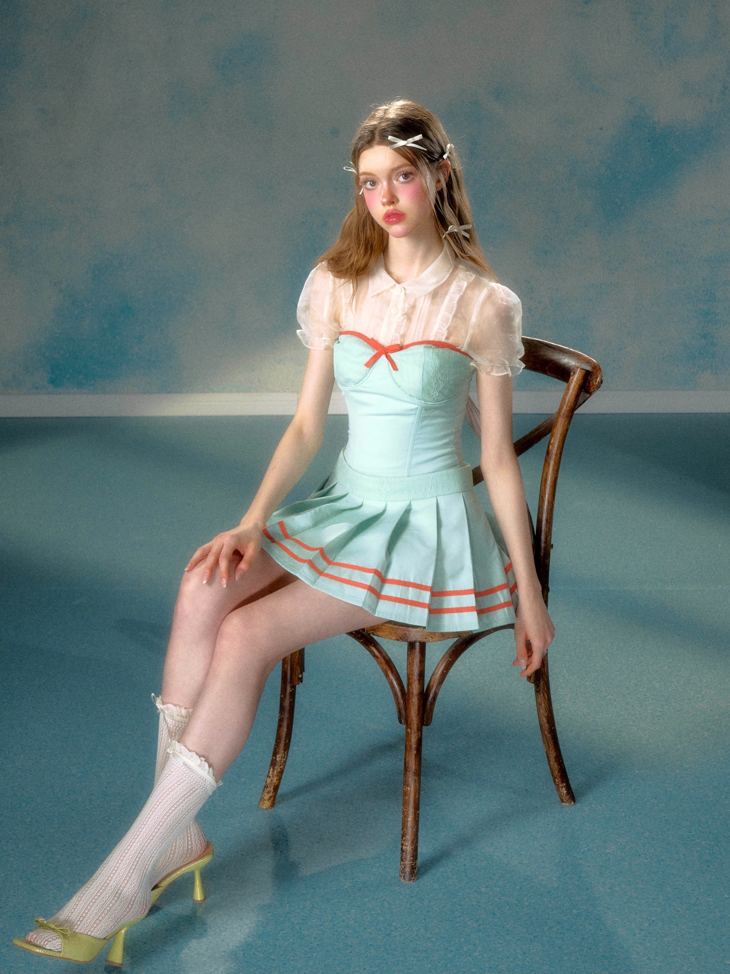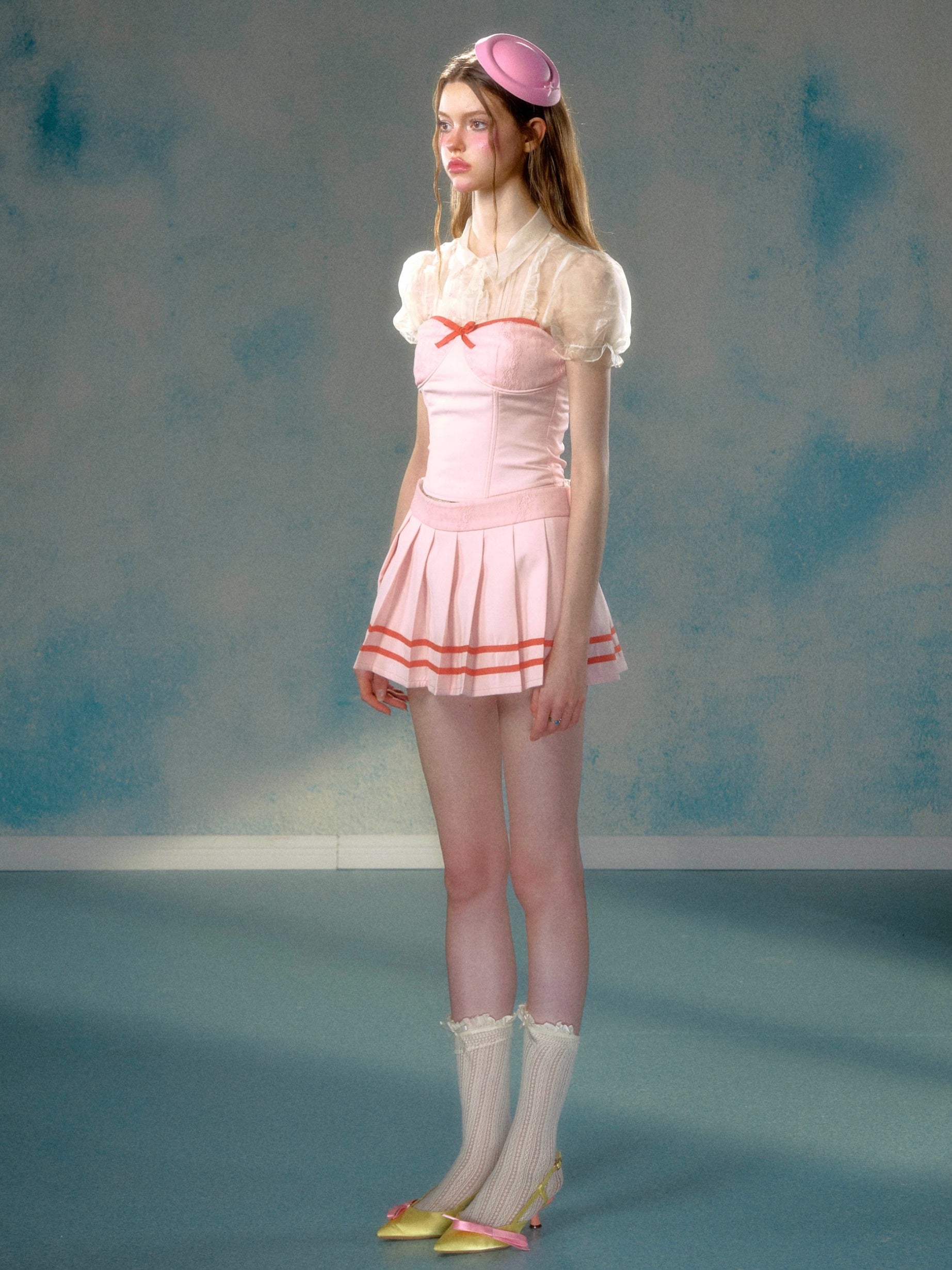 Vintage Contrasting Lace Panel Slim Fit Bare-top & Pleated Skirt